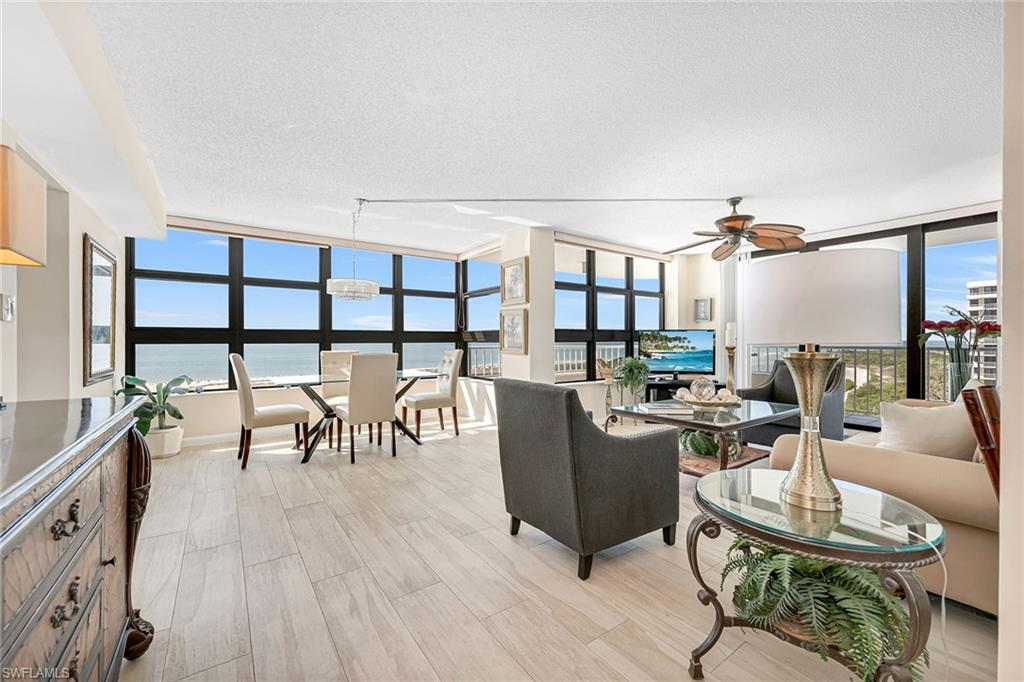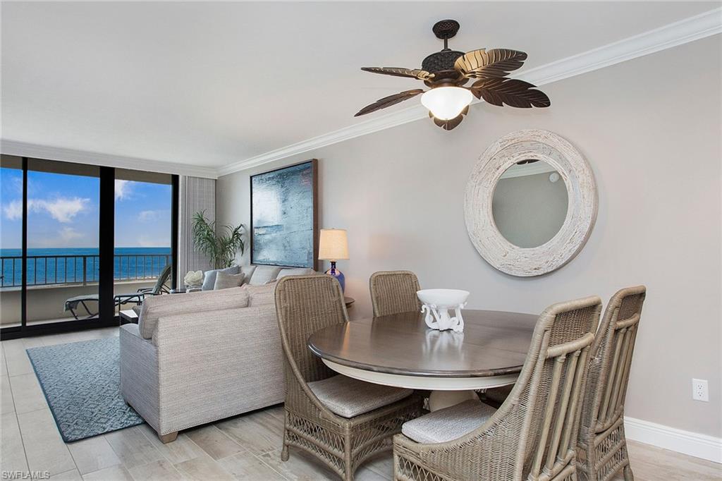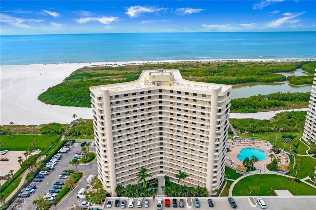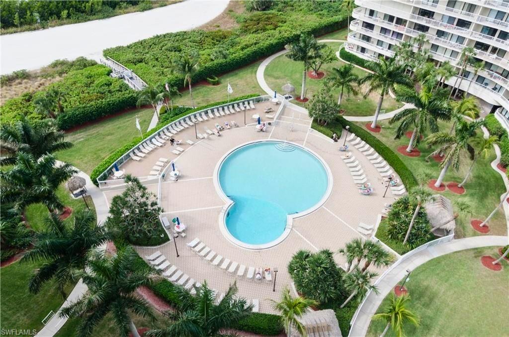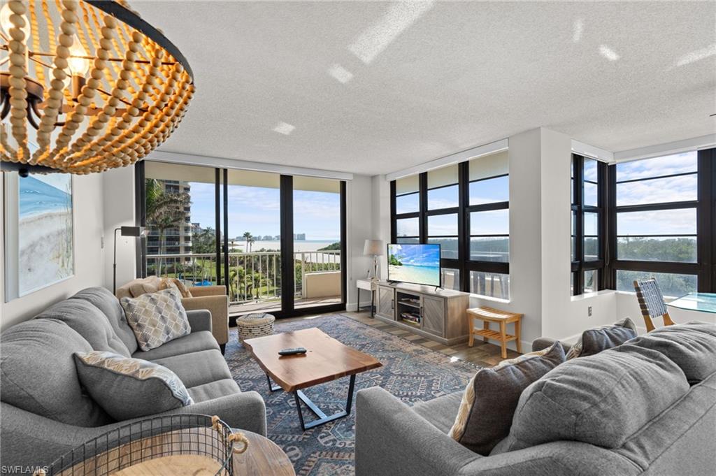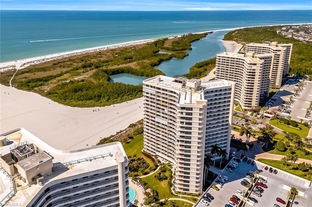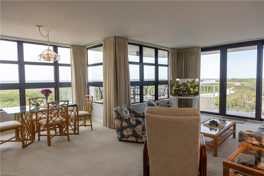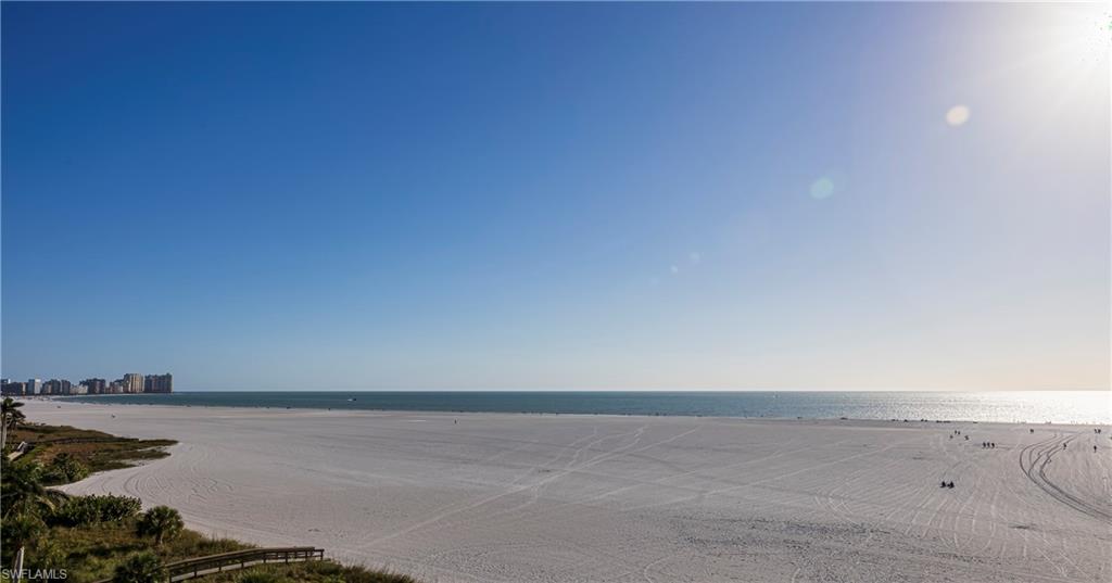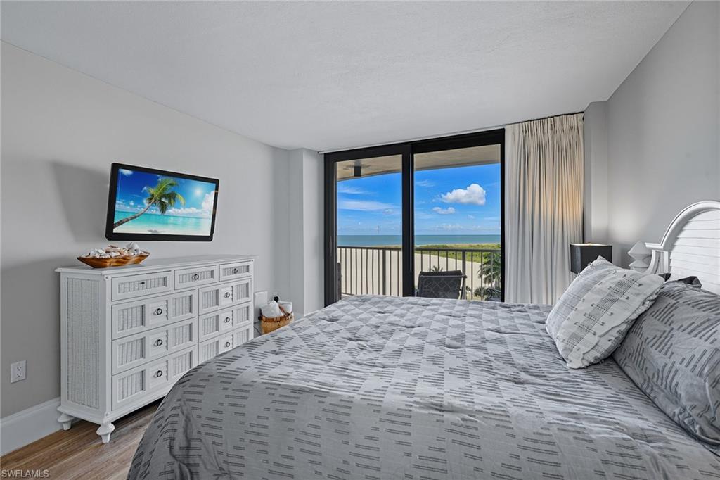 Sweeping views of beach and island all the way to Naples. End wraparound unit with balconies looking over island and Gulf. Updated unit, ready to move in, turnkey furnished. Electric sunshades throughout for privacy and beachfront darkening during turtle nesting season. Weekly rentals allowed. Common boat docks, tennis, pickleball, shuffleboard, bocce courts and large pool. Private beach entrance. Gated community for security.