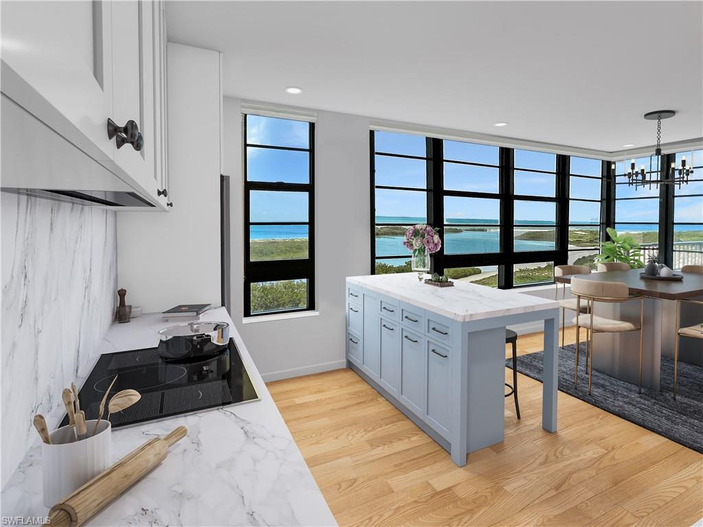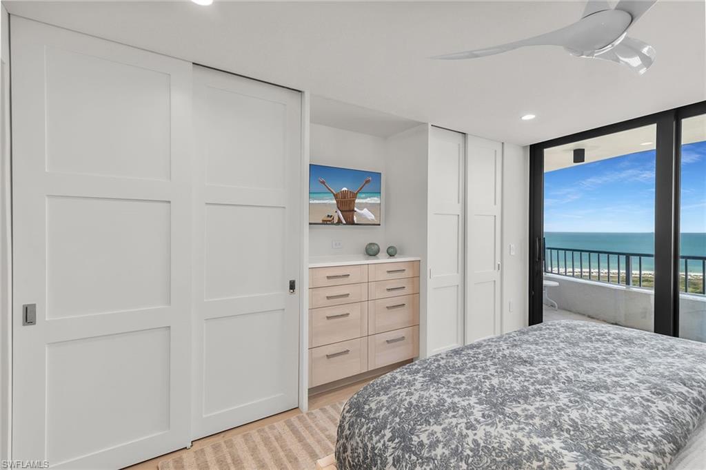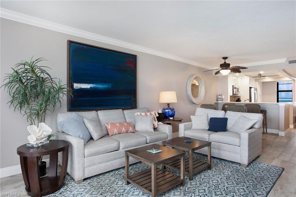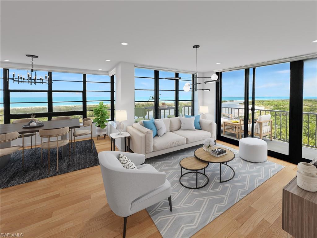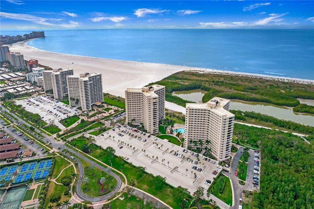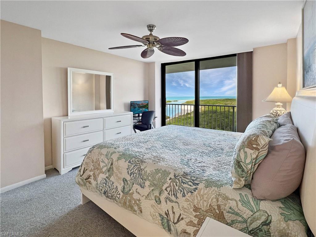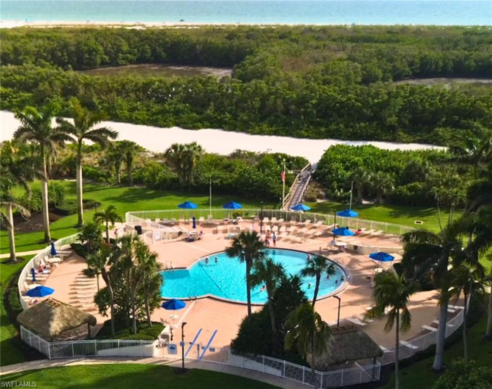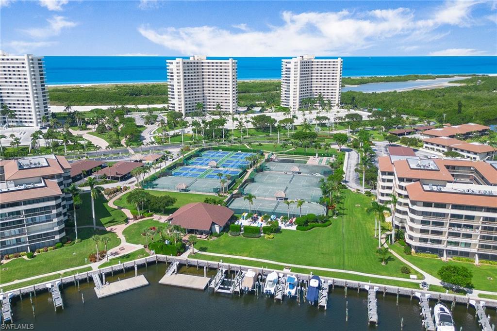 Sweeping views of beach and island all the way to Naples. End wraparound unit with balconies looking over island and Gulf. Updated unit, ready to move in, turnkey furnished. Electric sunshades throughout for privacy and beachfront darkening during turtle nesting season. Weekly rentals allowed. Common boat docks, tennis, pickleball, shuffleboard, bocce courts and large pool. Private beach entrance. Gated community for security.