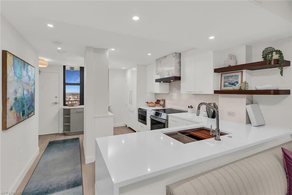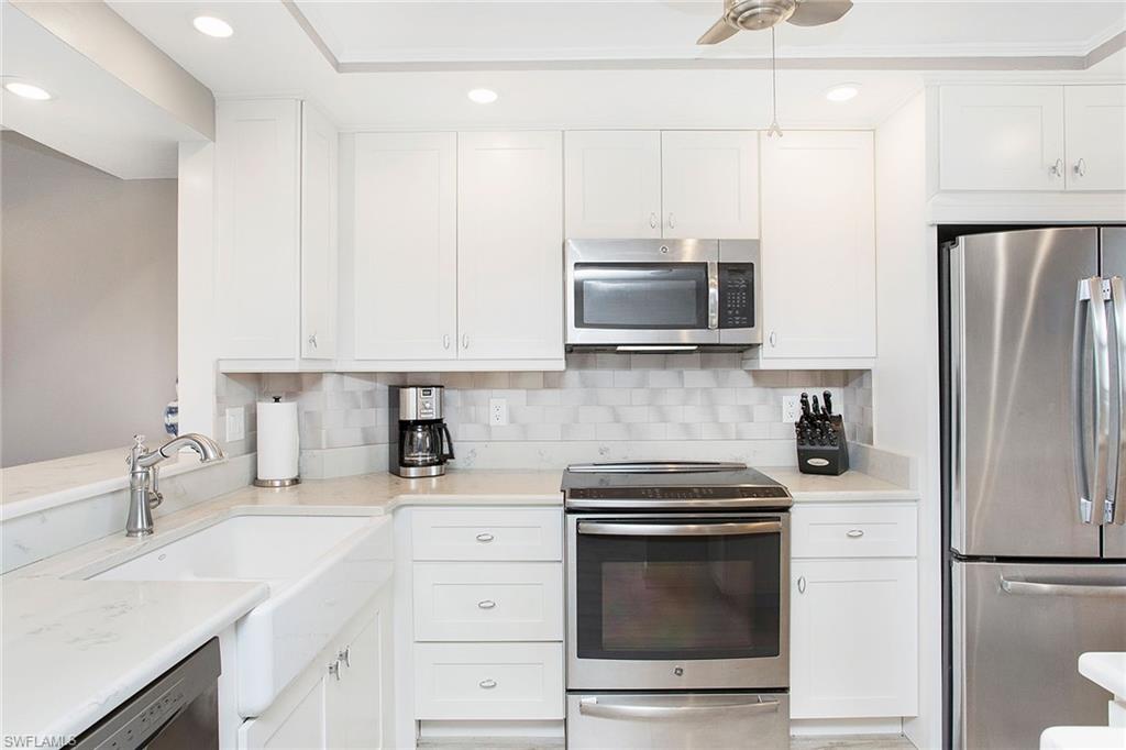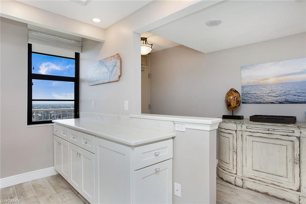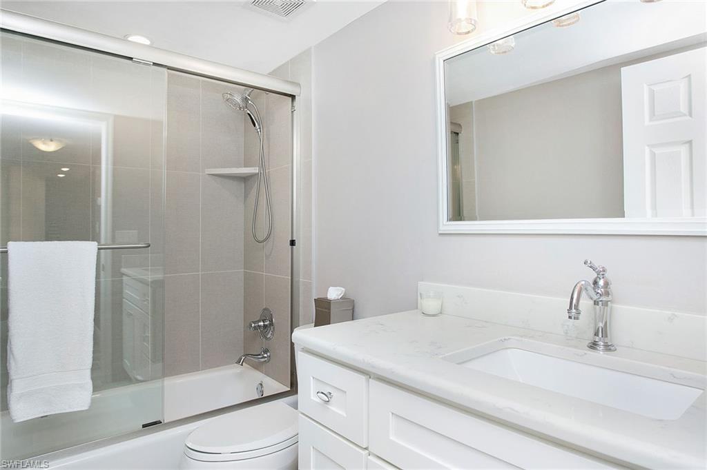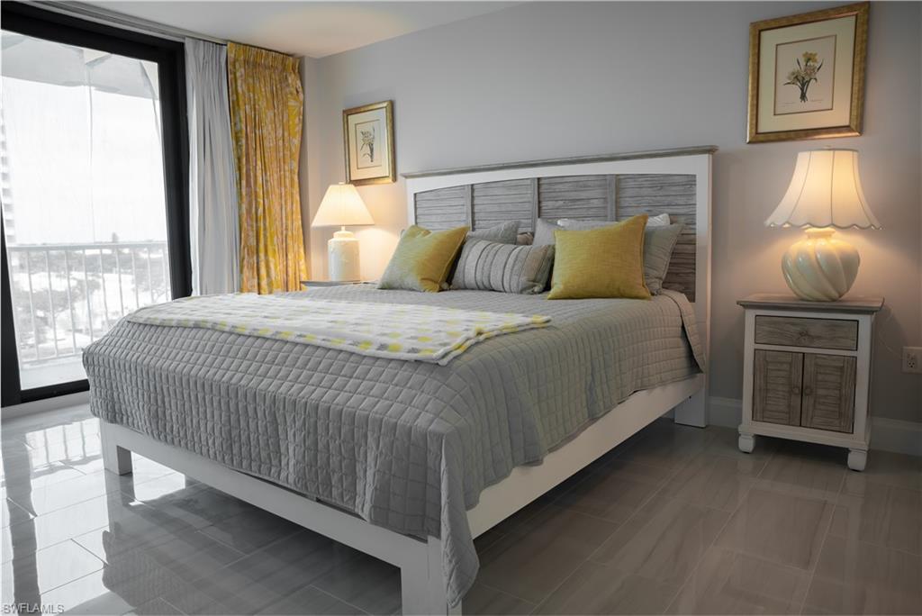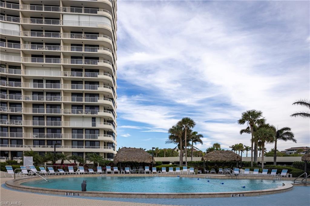 One of the nicest condominiums in South Seas Tower 3 offered for sale. Completely renovated in 2016 down to the studs with an elegant flair is this two-bedroom, two-bath unit along the shores of Tigertail Beach on beautiful Marco Island. This top-floor condominium has panoramic views of the island, beach, pool and Gulf. Interior features include quartz countertops, all wood Amish-made cabinetry, GE Monogram stainless steel appliances, Kohler plumbing fixtures and a large porcelain sink. Furnished with Ethan Allen furniture, hurricane-impact windows and sliders, and plank tile flooring throughout. Attention to detail is seen everywhere in this condominium. The hallways and common areas have also been recently remodeled throughout the building. Comfort and elegance await in this spacious floor plan, accompanied by a welcoming dining area and counter-height breakfast bar. South Seas Towers exterior features include a lot of amenities to accommodate the Marco Island lifestyle. Guarded/gated entry, beachside heated resort-style pool, beach access, pickleball and tennis courts, bocce ball, putting green, shuffleboard, outdoor grilling area, well-appointed exercise room, kayak and bicycle storage, plus boat slips can be leased. This condominium has additional same floor extra storage and common laundry room. Great rental income possibilities. Being sold furnished and ready to move-in condition.