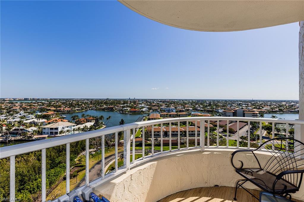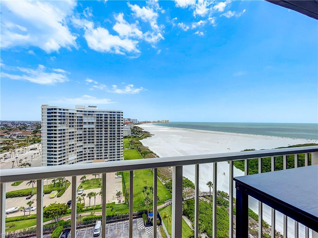 Experience unparalleled coastal living in this rarely available front-facing two-bedroom, two-bath condominium on the 15th floor of the newly remodeled second tower of South Seas. This residence boasts a wraparound balcony that offers wide, unobstructed views of Marco Island's pristine beaches and Gulf of Mexico, including the picturesque Tigertail Beach. Enjoy the sight of pelicans gliding by at eye level as you relax on your expansive patio. Inside, the unit has been meticulously updated to feature elegant tile flooring throughout, a modern kitchen adorned with high-end quartz countertops, contemporary cabinetry and top-tier appliances. Both baths have been tastefully remodeled with sophisticated tilework, and ample closet space is available to accommodate you and your guests. Impact-resistant glass doors and windows throughout the unit provide enhanced safety and tranquility. As a resident of the South Seas community, you'll have exclusive access to a private beach, pickleball and tennis courts, available boat slips, a new state-of-the-art fitness center and a golf practice putting green. Additional conveniences include covered parking and a dedicated storage locker. Seize this rare opportunity to own a stunning waterfront retreat that ideally blends luxury with nature's beauty.
