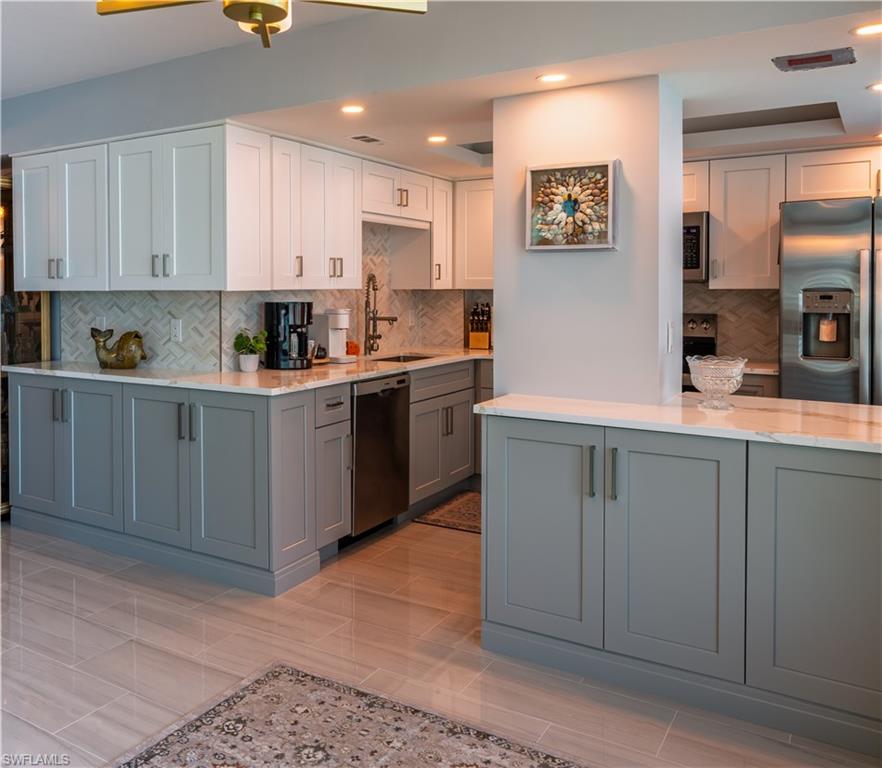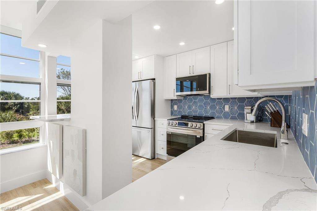 If you're looking for your perfect Marco Island Escape you've found it! This hard to find, Freshly Remodeled 2/2 End / Front Unit in South Seas West features a New Opened Kitchen with Additional Cabinets & Counter Space, New Baths, and Beautiful New Tile Flooring. The old popcorn ceiling has been removed and resurfaced as well, giving this condo a complete fresh new look. The unit also features New Impact Windows and Sliders leading to an Awesome Wrap-Around Balcony where you can enjoy your Gorgeous Gulf Beach Views and take in the Amazing Sunsets Marco Island is famous for. There’s also Plenty of Closet Space, and an Extra Storage Locker down the hall. The AC system was replaced in 2022, and the Water Heater in 2025. South Seas West features a host of Resort Amenities, like a Community Pool, Tiki Huts, Private Beach Access, Tennis / Pickleball Courts, Boat Docks (available for lease), and a Newly Renovated Lobby, Updated Elevators, Workout Room, and Community Room, and 24 Hour Gated Security. South Seas is located in the Heart of Marco Island, in close proximity to some of the Finest Eateries, and Shopping is just a Short Distance Away. Come and see why so many visitors Fall in Love with Marco Island!