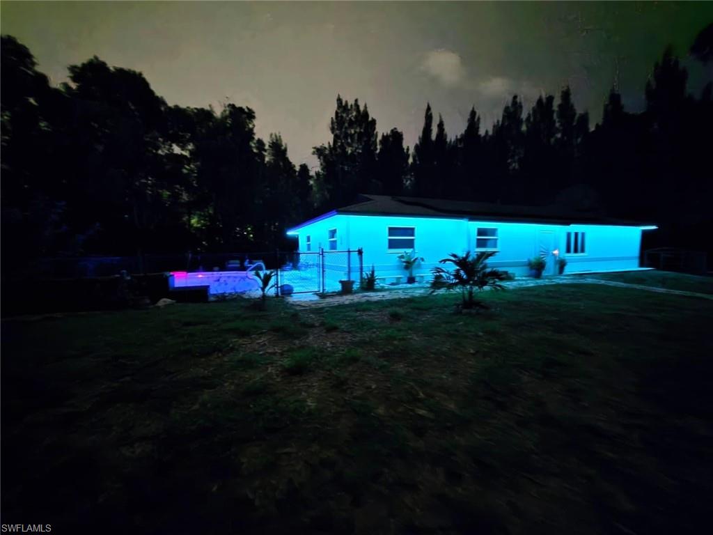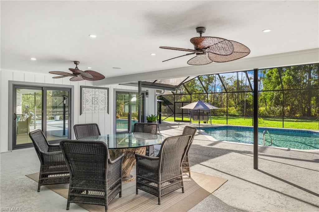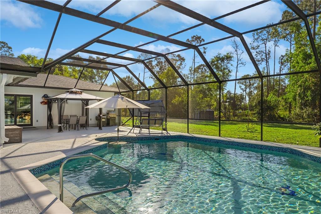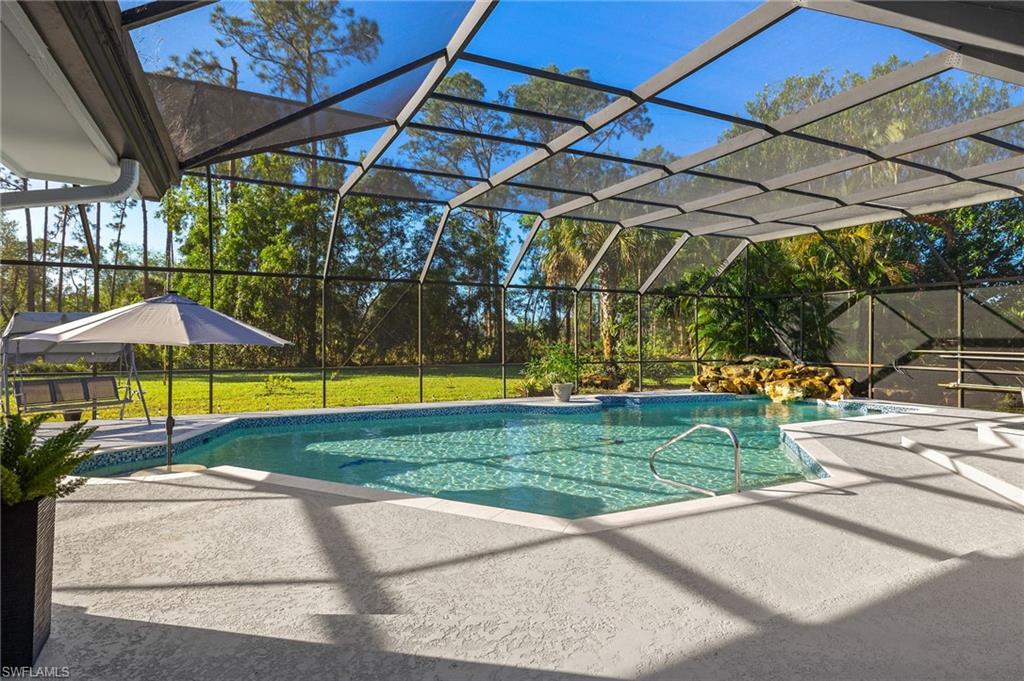 Welcome to a very private, serene, and meticulously maintained single-family home offering 3 bedrooms, 2.5 bathrooms, and 2,449 square feet of comfortable living space on over 1 acre of fully fenced land. Inside, elegant porcelain tile flooring flows throughout the main living areas, complementing a chef’s kitchen with abundant cabinetry—perfect for cooking and entertaining. The living space is flooded with natural light from three skylights, creating a bright and welcoming atmosphere opening to a very large lanai. The home also features a versatile flex room, currently used as a sewing room, that can easily serve as an office, gym, playroom, or creative studio to fit your lifestyle. Abundant storage throughout the home ensures everything has its place, while a reverse osmosis water filtration system provides pure, clean water throughout. The interior seamlessly flows to the outdoor living spaces, where you can enjoy the beautiful Florida lifestyle with a large saltwater pool and an assortment of fruit trees, including lemon, lime, avocado, and 3 mango trees. The oversized 2-car garage workshop in the back is ideal for any craftsmanship or hobby needs and offers ample space to store an RV or boat. Thoughtful updates include a new roof (2018), HVAC (2017), replaced septic drain field (2019), and complete repiping (2020). Zoned agricultural with no HOA, this property offers exceptional flexibility and privacy, all while being just 15 minutes from downtown Naples and the beaches. With its blend of modern upgrades, flexible spaces, and timeless charm, this isn’t just a house—it’s a home!