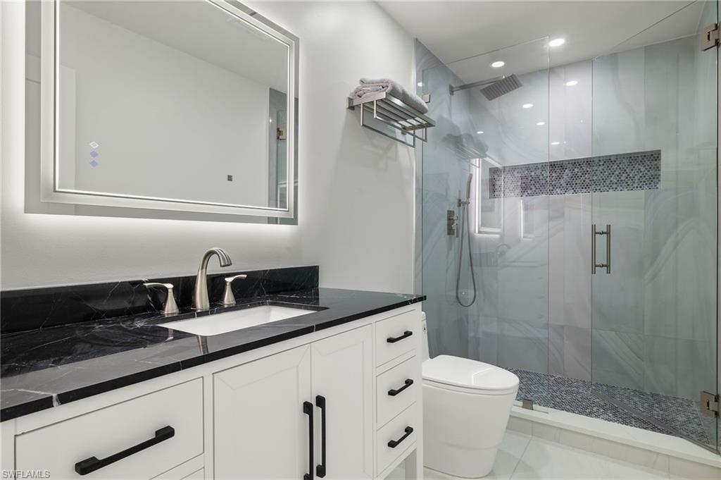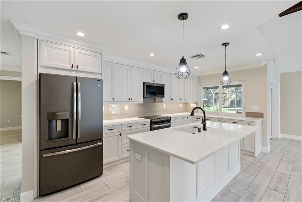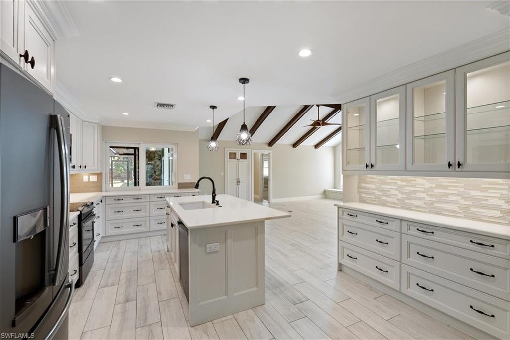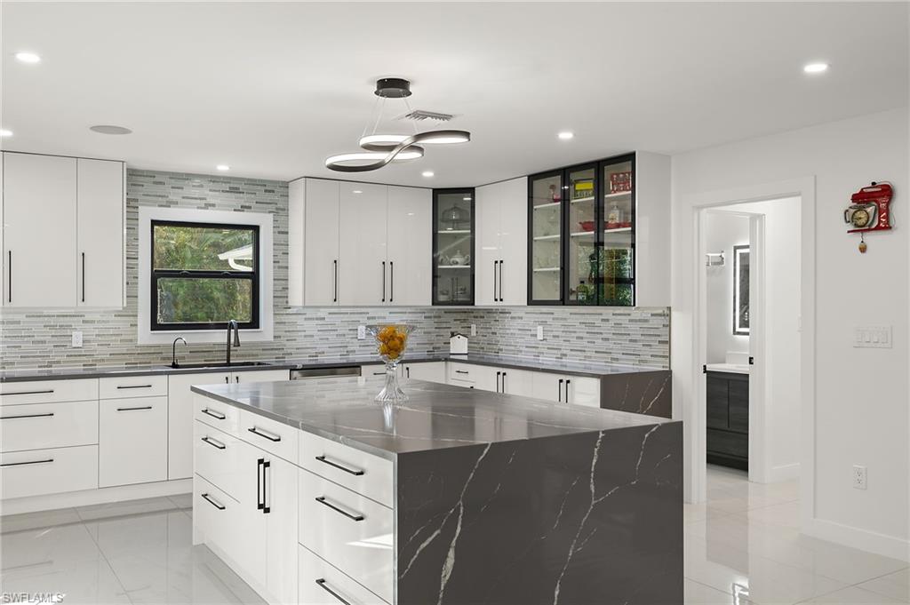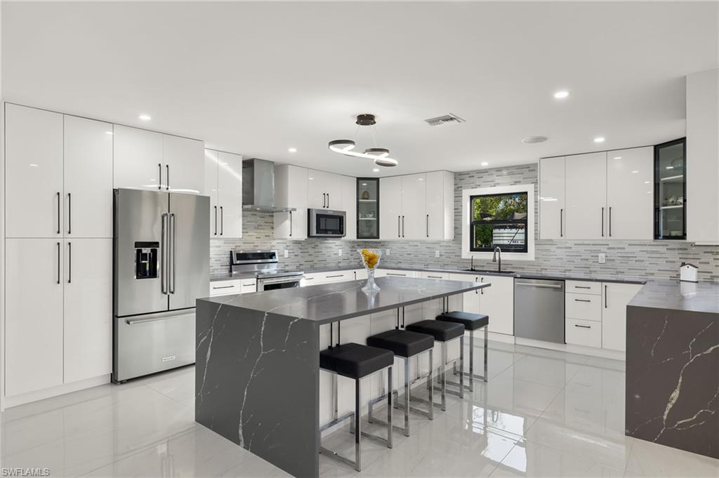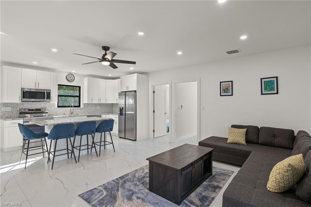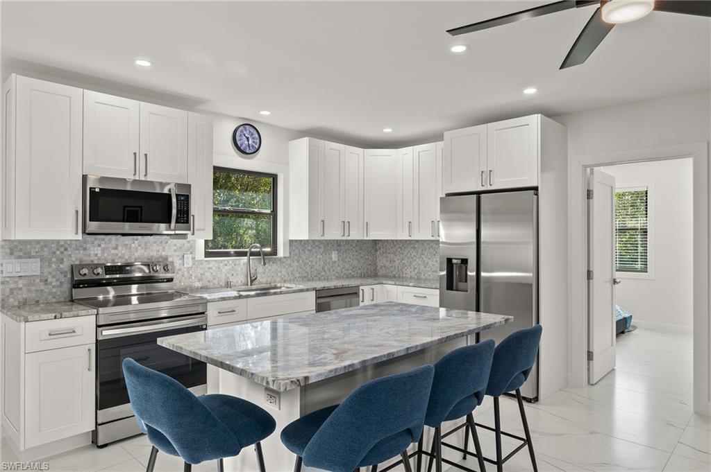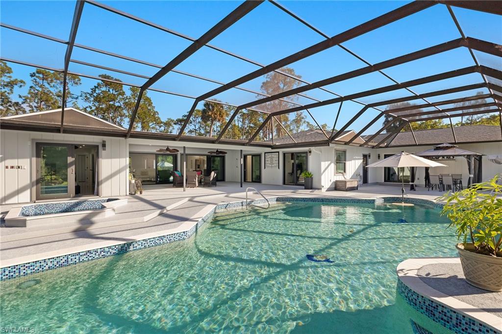 Introducing this newly renovated property on nearly an acre, located in one of Naples’ most desirable neighborhoods. This home offers a perfect blend of comfort, convenience, and Florida living. Upon entering, you are greeted by a bright and spacious floor plan boasting an open-concept design, ideal for modern living. This estate features 2,187 sqft, 3 bedrooms + a den, 3 full baths, including a spacious primary bedroom suite. The gourmet chef’s kitchen is thoughtfully appointed with a stainless-steel appliance package, quartz countertops, all flowing seamlessly into the living and dining areas. Stepping out back into your private oasis, this property comes complete with a fully screened-in lanai, pool, spa, and a variety of fruit trees and lush greenery. Continuing outside, the guest house provides an additional 700 sqft, 2 bedrooms, and a full bath. Perfect for entertaining, the outdoor space is a fantastic spot to unwind and bask in the beautiful Florida weather. This beautiful home showcases rolling natural light, which enhances the bright and wide-open feeling throughout. Located only a few short miles from Naples' world-famous beaches, shopping and dining. Easily accessible to I-75 for the commuters. No HOA! Nearby a highly regarded private school: Seacrest County Day School.