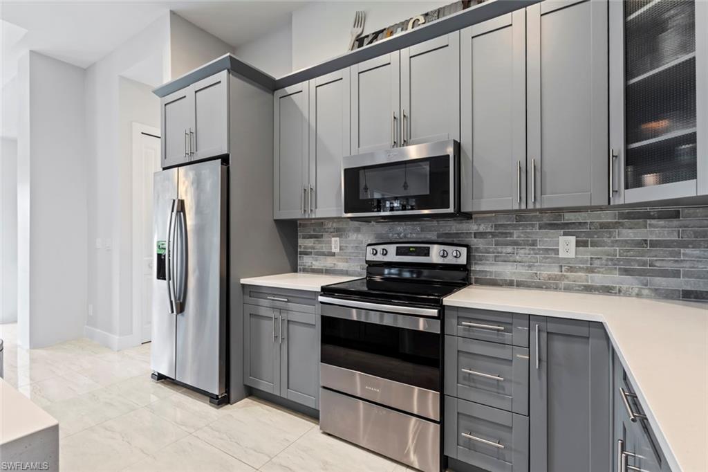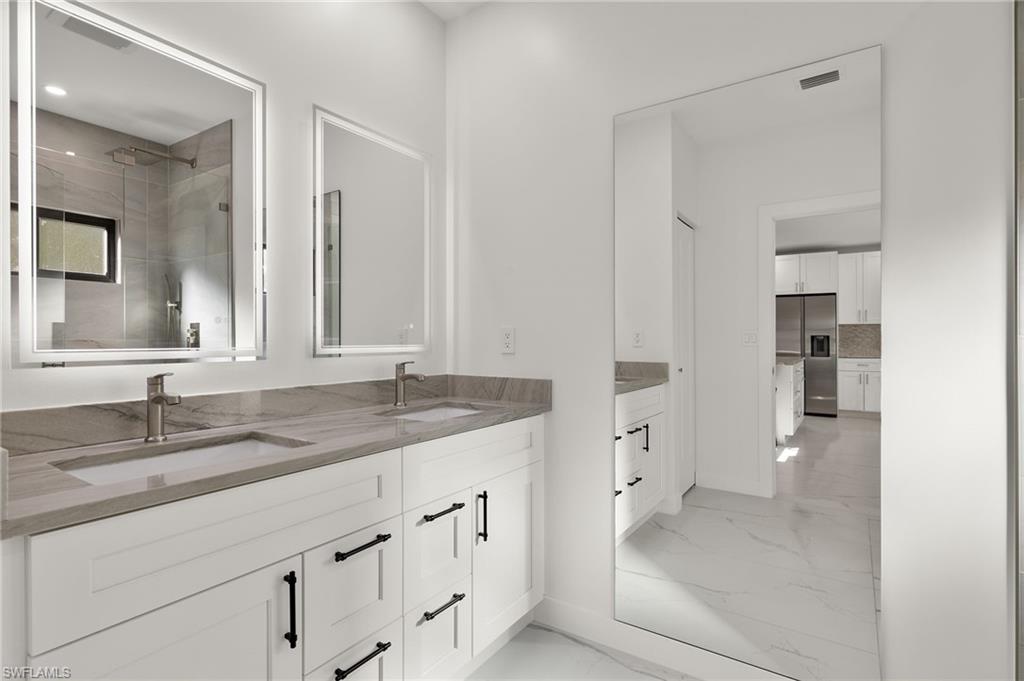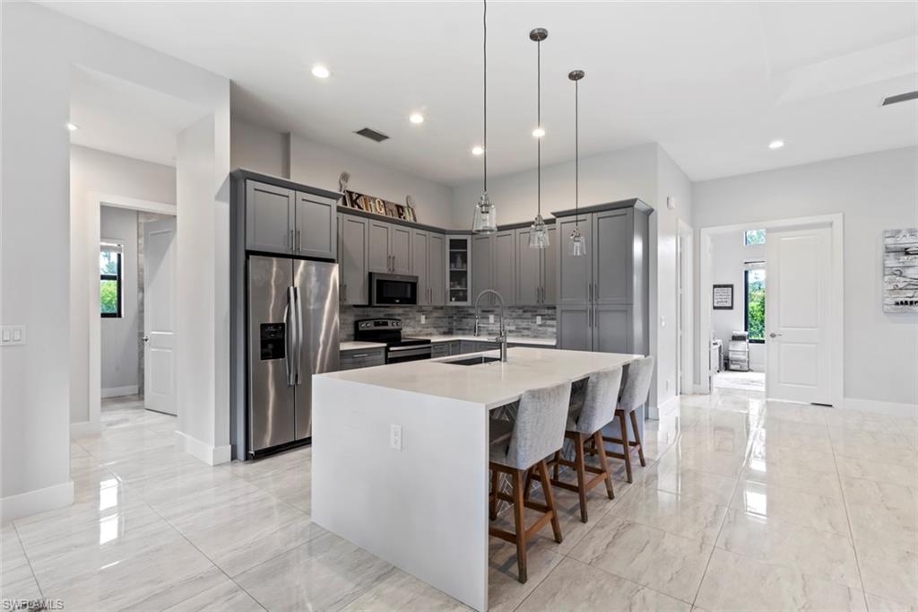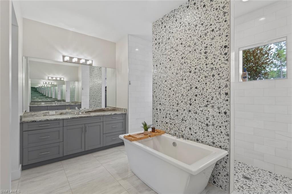 Brand-new luxury estate home in Naples, Florida, offering 5,115 square feet of living space combined on 1.26 acres. Designed and built by Caro Construction with interiors by Caro Design Group, this modern residence includes a full guest house, spacious open floor plan, and premium finishes throughout. The main home features wide-plank hardwood flooring, ceramic tile, and oversized doors that bring in abundant natural light. The chef’s kitchen is equipped with Wolf appliances, Quartz countertops, and a waterfall island ideal for entertaining. The owner’s suite includes a spa-style bathroom with soaking tub, large walk-in shower, and custom walk-in closet. The property’s outdoor living area is designed for a resort-style experience, with a custom pool, spa, and covered patio spaces for relaxation or gatherings. Located near Founders Square, Mercato, and top Naples golf courses, this new construction home offers convenience to fine dining, shopping, and beaches. Ideal for full-time residents, seasonal owners, or investors, this property blends modern luxury and privacy in one of Naples’ most desirable areas. Schedule a private showing today to experience this exceptional Naples Estate!