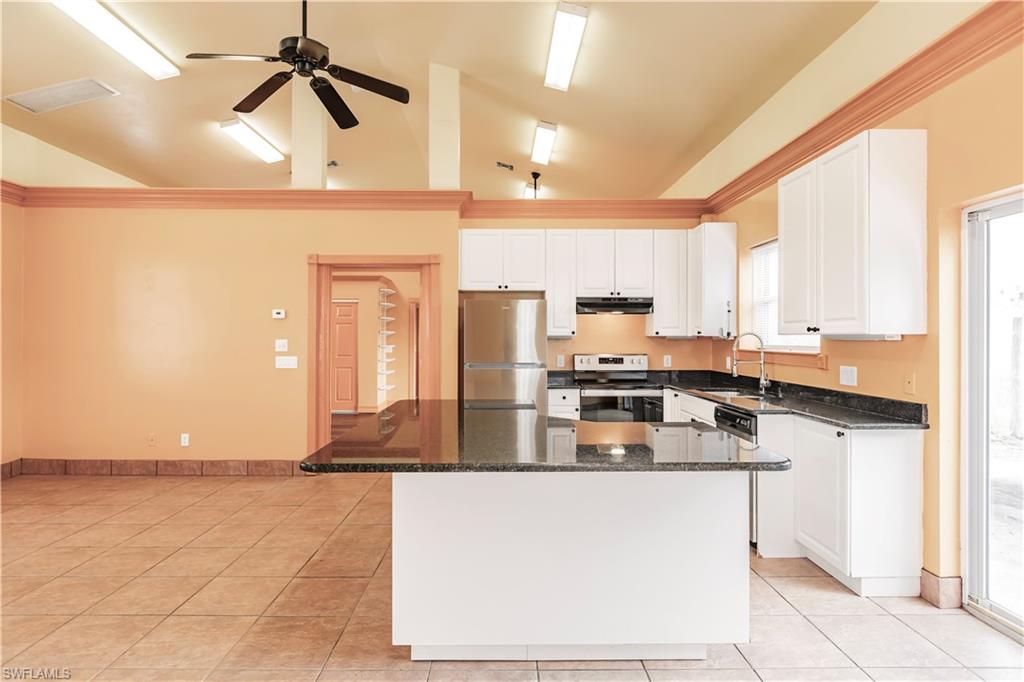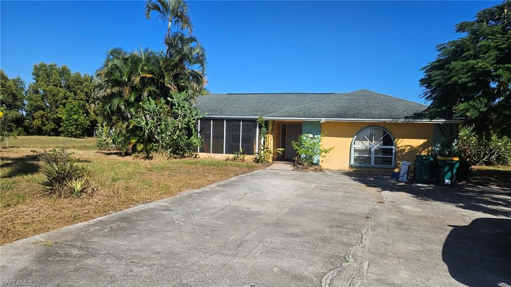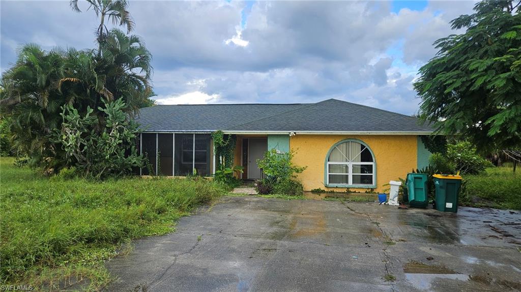 Great opportunity to own this close-in property on over a 1/2 acre fenced-in lot. The house features 3 bedrooms and 2 bathrooms with over 1,300sf, plus a large screened-in front porch to enjoy the huge yard and watch the beautiful Naples sunsets. There is a storage shed on the property as well, and the back of the property faces the preserve area for Esplanade G&CC, so lots of privacy on this dead-end road located near Gulf Coast H.S. Hard to find this size property so close-in with NO HOA!