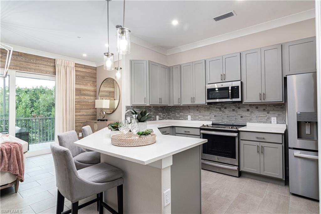 NEW CONSTRUCTION! MOVE IN READY!!...Antilles presents new Coach Homes just north of Fiddler's Creek and minutes from downtown Naples and Marco Island, featuring West Indies Island style architecture. This END UNIT Classic Coach Home's 2nd Floor TOBAGO floor plan offers 1509 air conditioned sq. ft. and INCLUDES the gorgeous finishes and furnishings that define luxury resort living 2025 in Southwest FL, including volume 10’ ceilings, solid wood cabinetry and doors, Kohler fixtures, stainless kitchen appliances, Quartz countertops, frameless glass shower enclosures, 12”x24” Porcelain tile, wide profile baseboards as well as Impact glass windows, Impact rated doors and solid CBS construction. Antilles offers a range of resort style amenities at the 5,000 sq.ft. Flamingo Club: 3500 sq. ft. resort pool and spa, sun and shade decks, Tiki Bar area, fire pit and lounge, bocce and pickle ball, putting green, fitness room, and multiple gathering spaces. Ahhh, Antilles…sun, serenity and Southern sweet tea. PHOTOS ARE OF THE FURNISHED TOBAGO MODEL this unit is offered unfurnished.