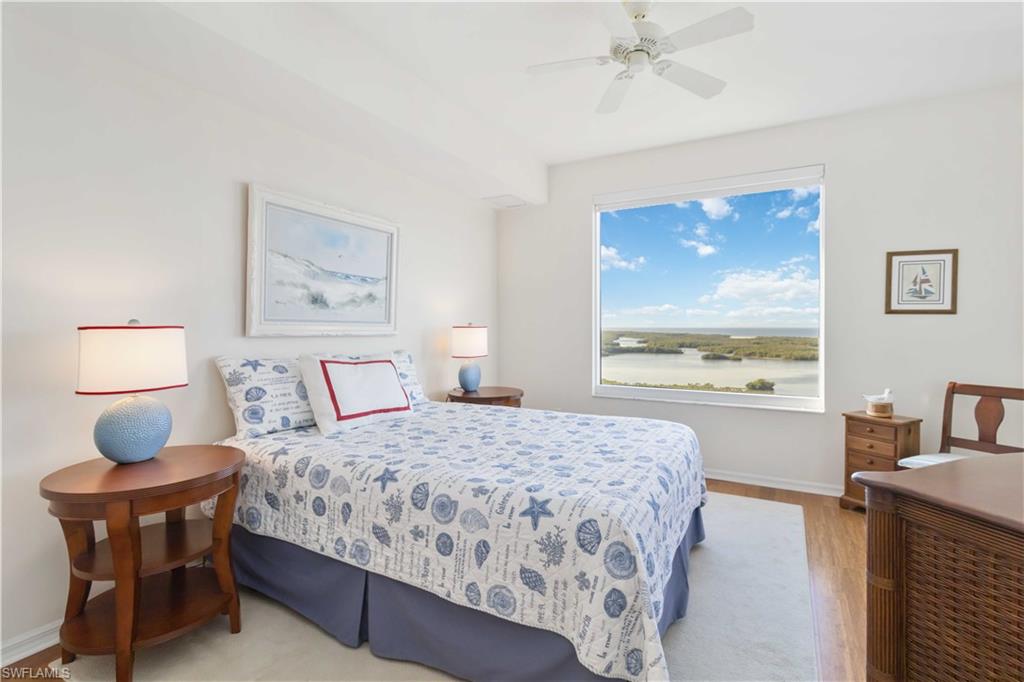 Breathtaking Gulf Views! This 12th-floor, 2-bedroom, 2-bath residence offers sweeping Gulf views and a serene retreat in the heart of North Naples. The open-concept layout is filled with natural light, showcasing stunning waterfront scenery from every angle. The spacious primary suite features direct balcony access, tranquil Gulf vistas, and a spa-inspired bath with dual vanities and a walk-in shower. A private guest bedroom provides comfort and versatility—perfect for visitors or a home office. Step out onto your private balcony to enjoy unforgettable sunsets over the Gulf. Arbor Trace is a resident-owned 55+ community offering deeded condominium ownership with 100% equity and no financial or medical requirements. Residents enjoy resort-style amenities including a heated pool, fitness center, tennis and pickleball, bocce, putting green, two libraries, clubhouse dining, and a calendar of social events. Support services include 24-hour medical monitoring, transportation to appointments, shopping, and group outings. An on-site continuum of care ensures peace of mind for the future. One car garage included. Milestone inspection complete.