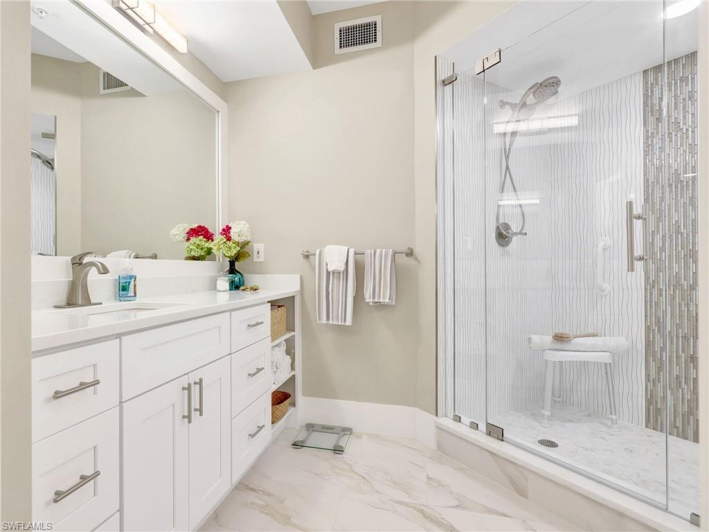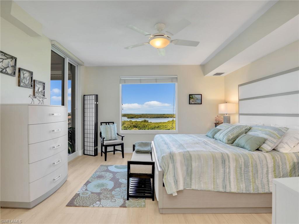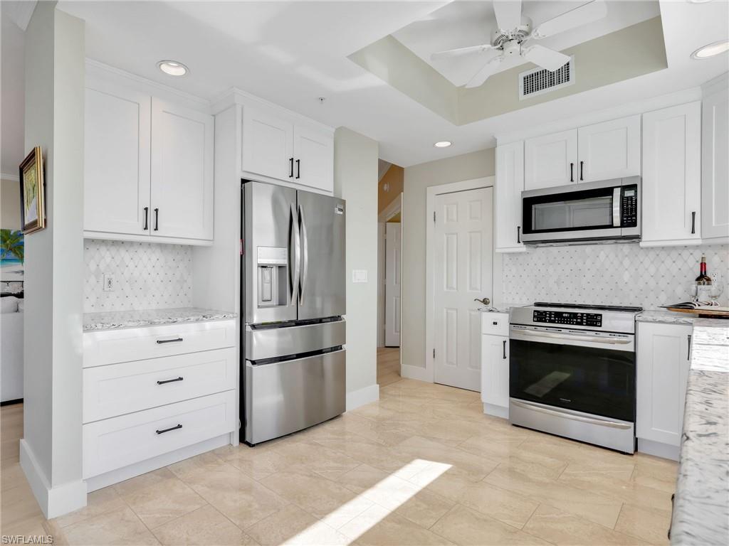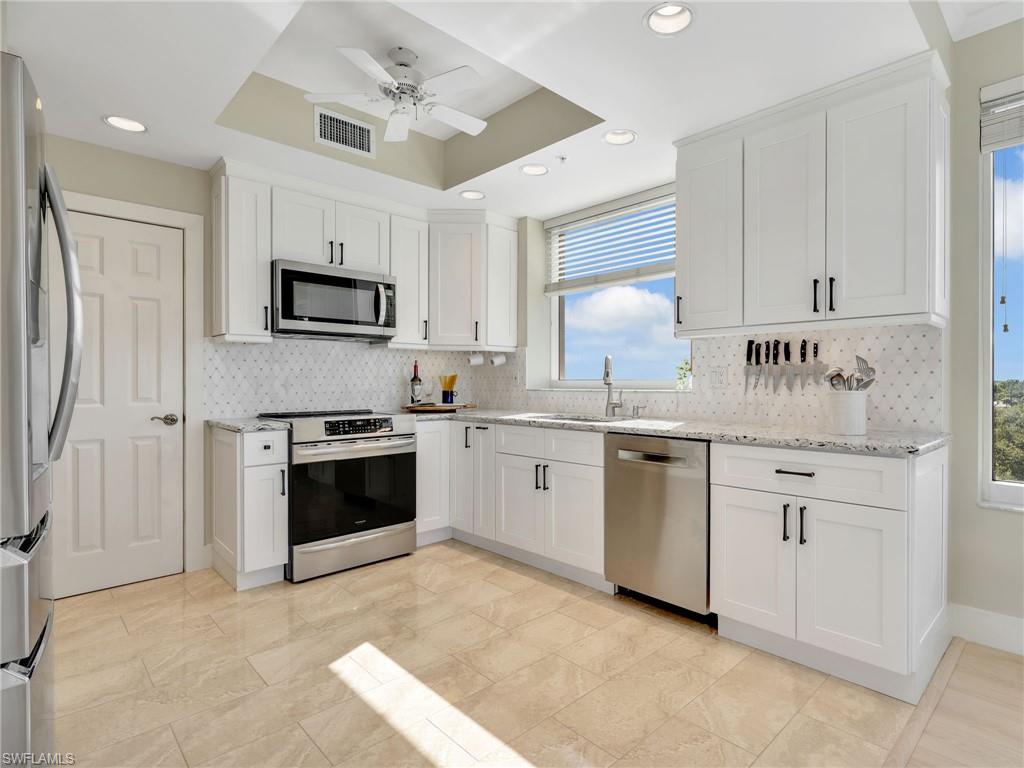 Experience refined coastal living in this impeccably updated 3-bedroom, 2.5-bath residence in Arbor Trace—one of Naples’ premier 55+ communities. The expansive open-concept layout is filled with natural light, seamlessly blending indoor elegance with outdoor serenity. Designed to live like a single-family home, the residence offers an inviting balance of space and comfort. A private balcony showcases sweeping Gulf vistas and world-famous sunsets, with desirable east, south, and west exposure that keeps the home sunny and bright throughout the day. Perfectly perched to enjoy passing boats and soaring seabirds, this home offers a daily connection to nature. The gourmet kitchen is a chef’s delight, featuring sleek cabinetry, stainless-steel appliances, and expansive quartz countertops. The primary suite is a serene retreat with stunning views, dual vanities, and a spa-inspired walk-in shower. A conveniently located garage space adds to the home’s ease of living. Residents of Arbor Trace enjoy a vibrant, maintenance-free lifestyle with resort-style amenities including fitness facilities, on-site fine dining, and complimentary transportation to shopping and medical appointments. With fee-simple, deeded ownership and no financial or medical requirements, Arbor Trace offers the perfect blend of independence, security, and peace of mind—all just minutes from Naples’ beaches, shopping, and dining.