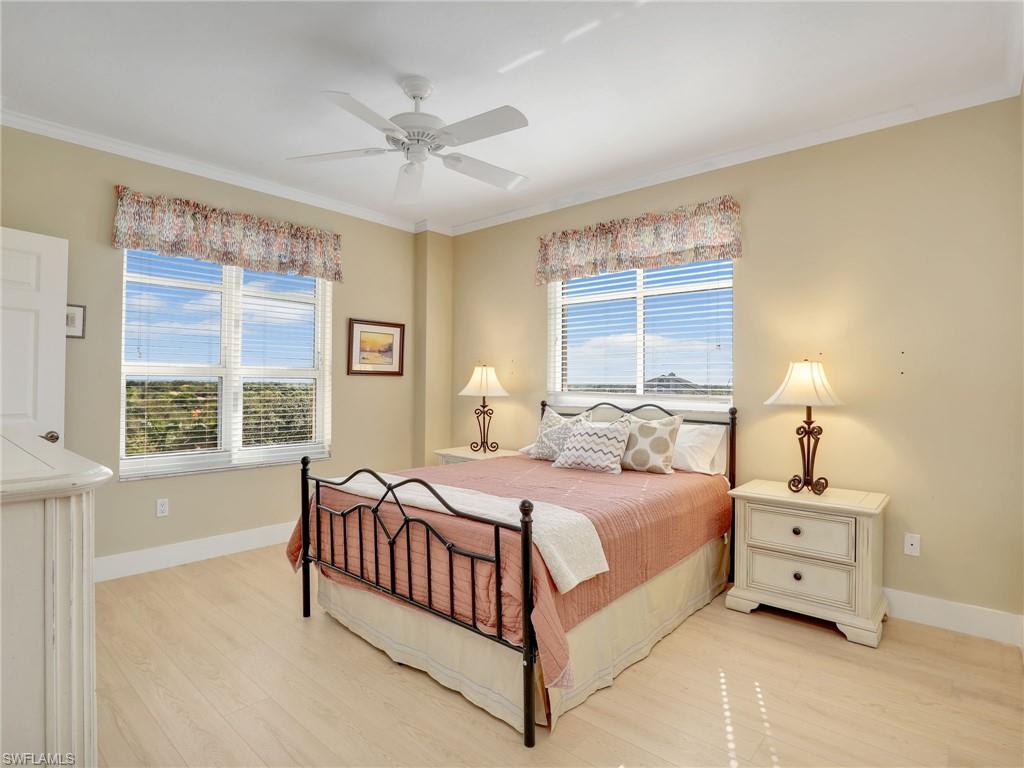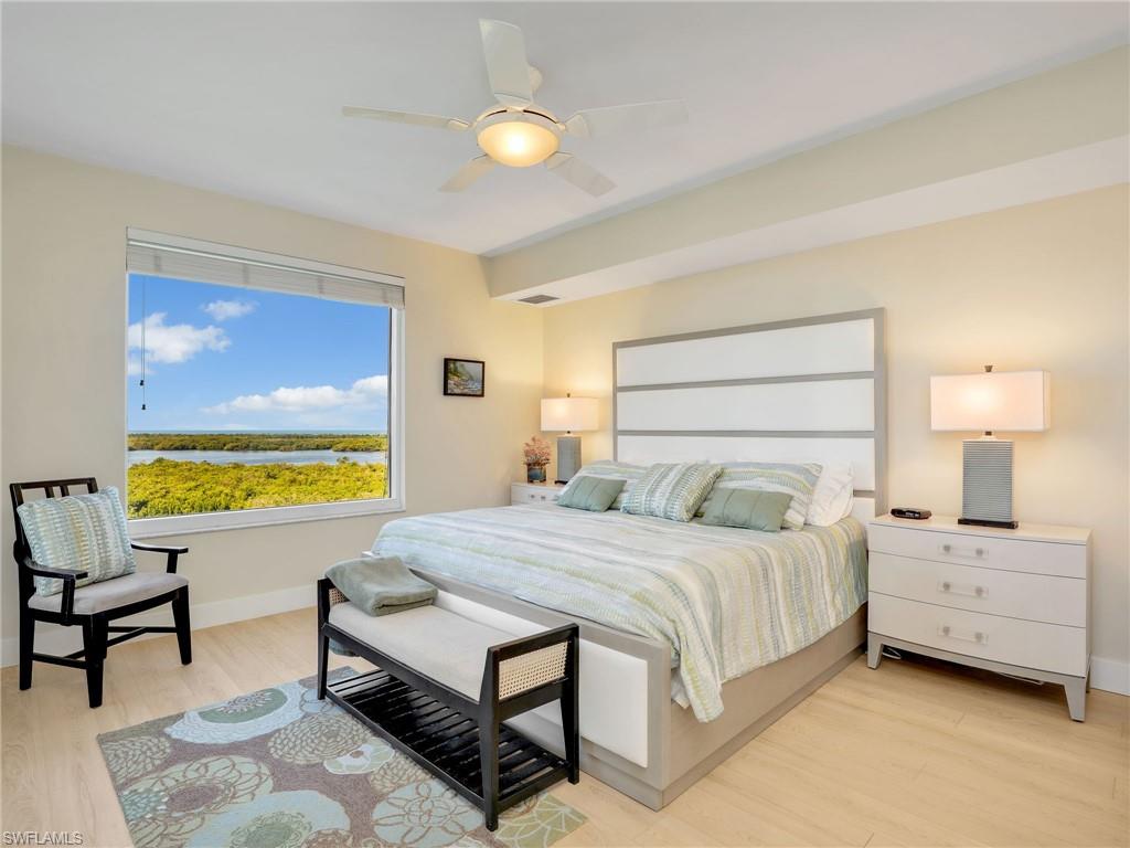 Presenting #608 in Tower Pointe in the amenity-rich 55+ Active Senior Community of Arbor Trace. This beautifully-updated three bedroom, 2.5 bath end unit located in the coveted '08 stack with west exposure, features panoramic, unobstructed vistas of Little Hickory Bay and the Gulf of America. Tastefully updated kitchen and baths with recently installed new wood flooring in bedrooms and all new paint. Unit comes with extra air-conditioned storage and electric storm shutters. Arbor Trace is a pet-friendly 55+ active independent adult living community. Feel as though you are on vacation very day with wonderful amenities that include heated pool/spa, fitness center, card room, library, billiards room, bocce ball, pickleball, active social calendar, hair salon, two guest suites, movie nights, 17th floor sky club as well as 36,000 sq/ ft. clubhouse with on-site fine dining. Additional services include local transportation, housekeeping, and 24-hour in-residence emergency monitoring for peace of mind. This tasteful residence is one you'll feel proud to own. Also be sure to inquire about the future option to move to the adjacent, on-campus Assisted Living Property at Arbor Glen if future planning requires. Active, independent adult living never looked so great!