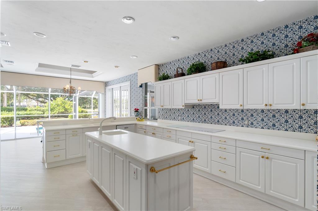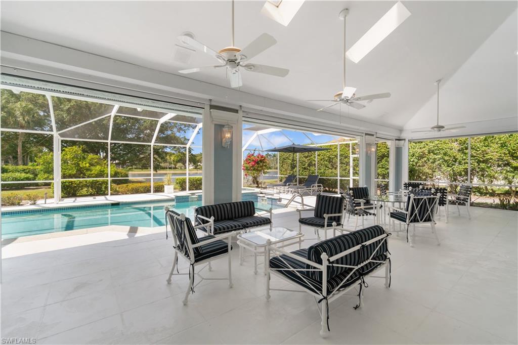 Beautifully renovated estate with stunning lake views in the prestigious Audubon Golf & Country Club in North Naples. Offers highly sought-after WESTERN exposure for breathtaking sunsets and optimal sun over the pool. This beautiful residence offers 3,204 sq ft of luxurious living space with 3 bedrooms, a den, a 2nd den/sitting room off the primary suite, 3 bathrooms, wood-look tile flooring, and custom wood detailing throughout. Additional highlights include hurricane impact windows/sliders and a new roof (2015). Step outside into your private backyard retreat—complete with a pool, spa, fire pit, outdoor shower, and a picture-frame screen enclosure providing unobstructed lake views. Inside, you’ll find the beautiful chef’s kitchen boasting stunning quartz countertops, custom wood cabinetry, and high-end appliances. The primary suite is a tranquil retreat featuring private access to the lanai, a cozy sitting area, generous walk-in closets, and a spa-inspired bath with dual vanities, a large frameless glass shower, and a separate jetted soaking tub. Audubon’s prime location is just 5 minutes from Mercato and world-class beaches, and the community offers a gated/guarded entrance, an 18-hole championship golf course, tennis, pickleball, a Bayside boardwalk, and a newly renovated clubhouse with dining and a second beautiful poolside club and café.