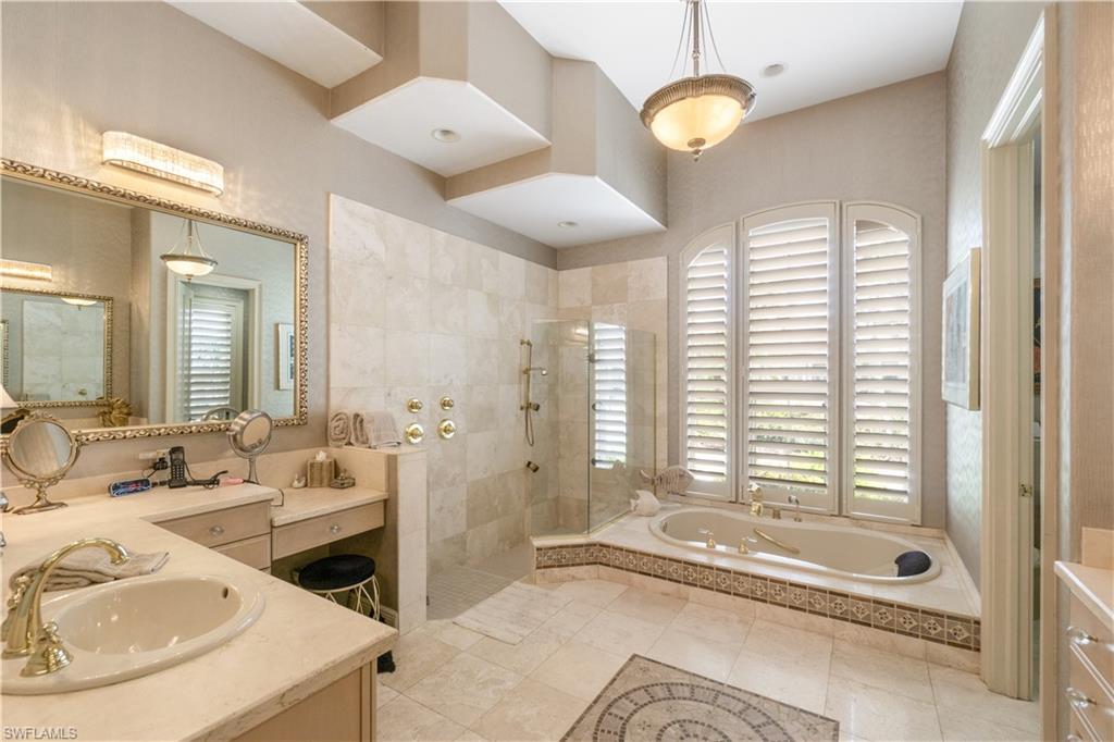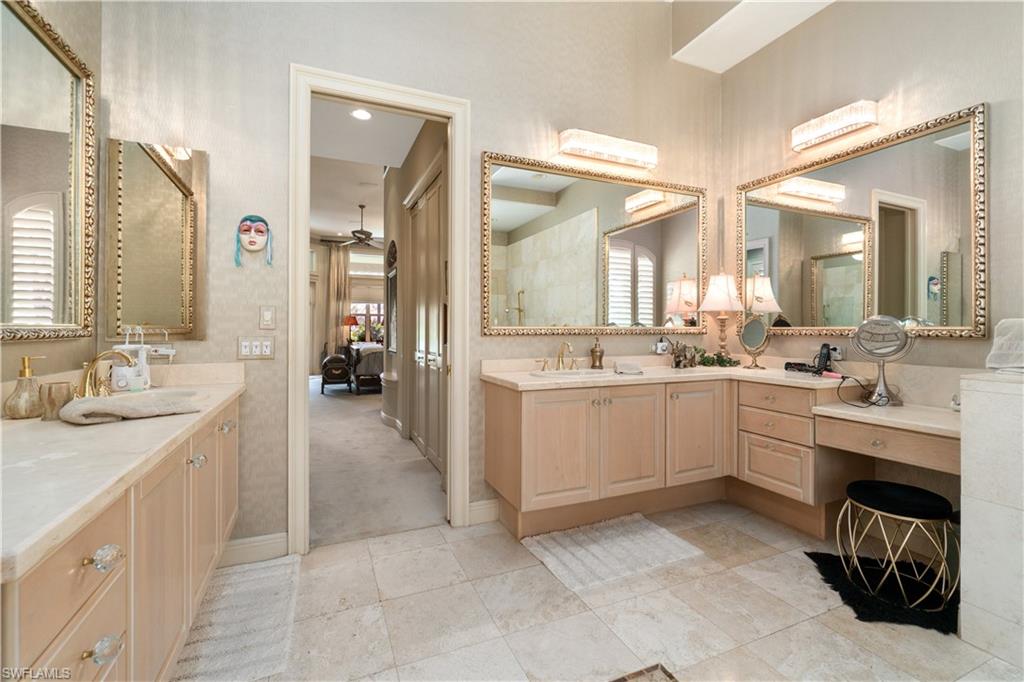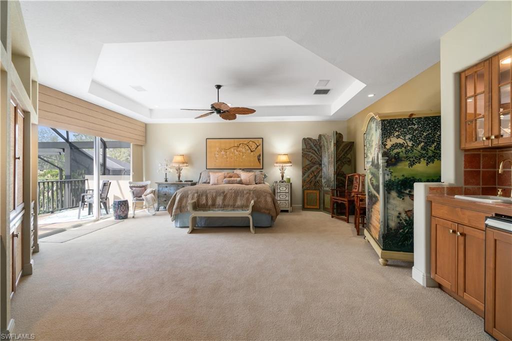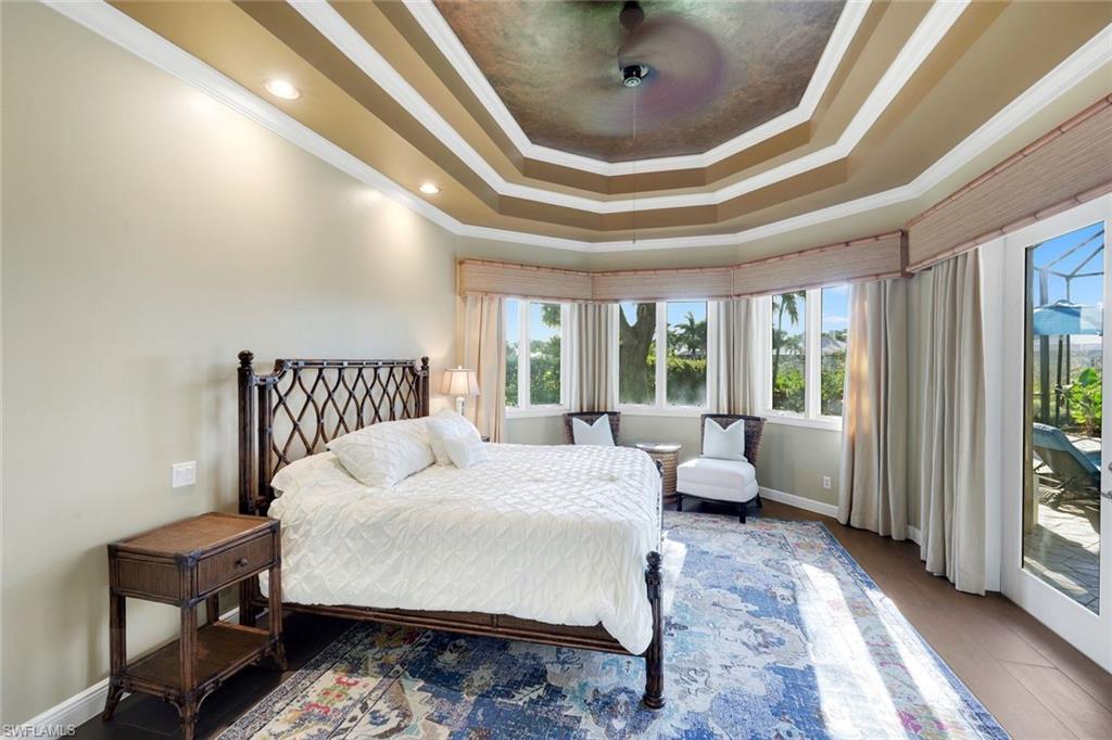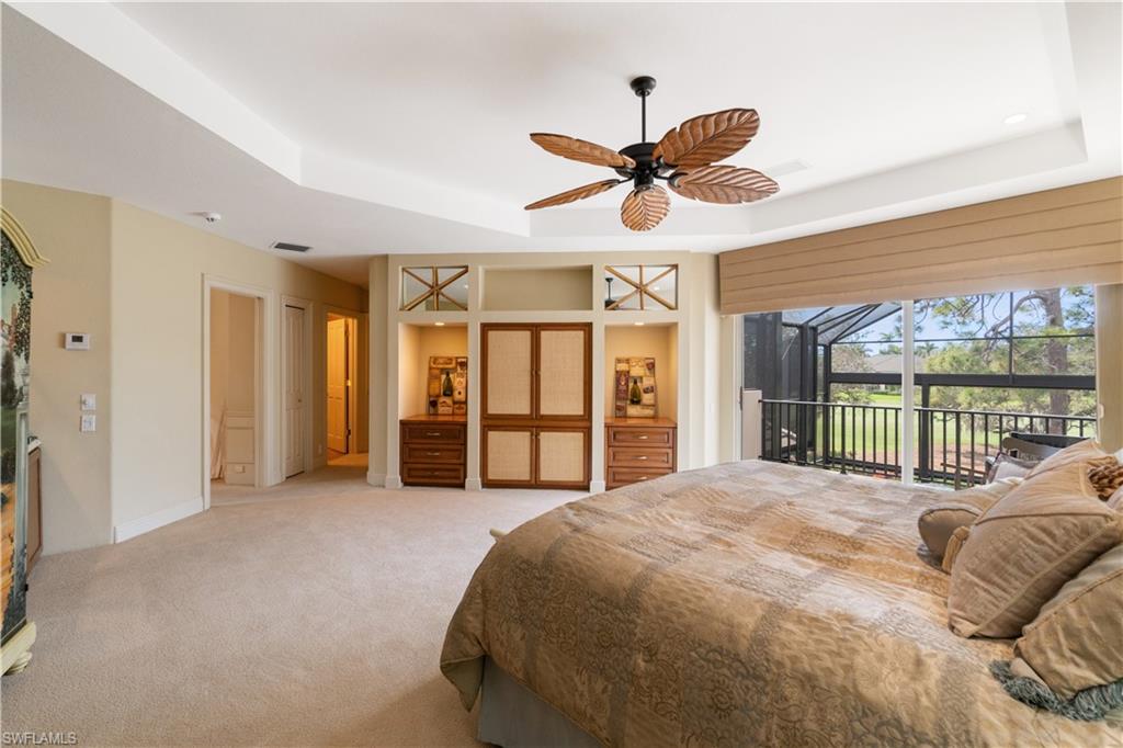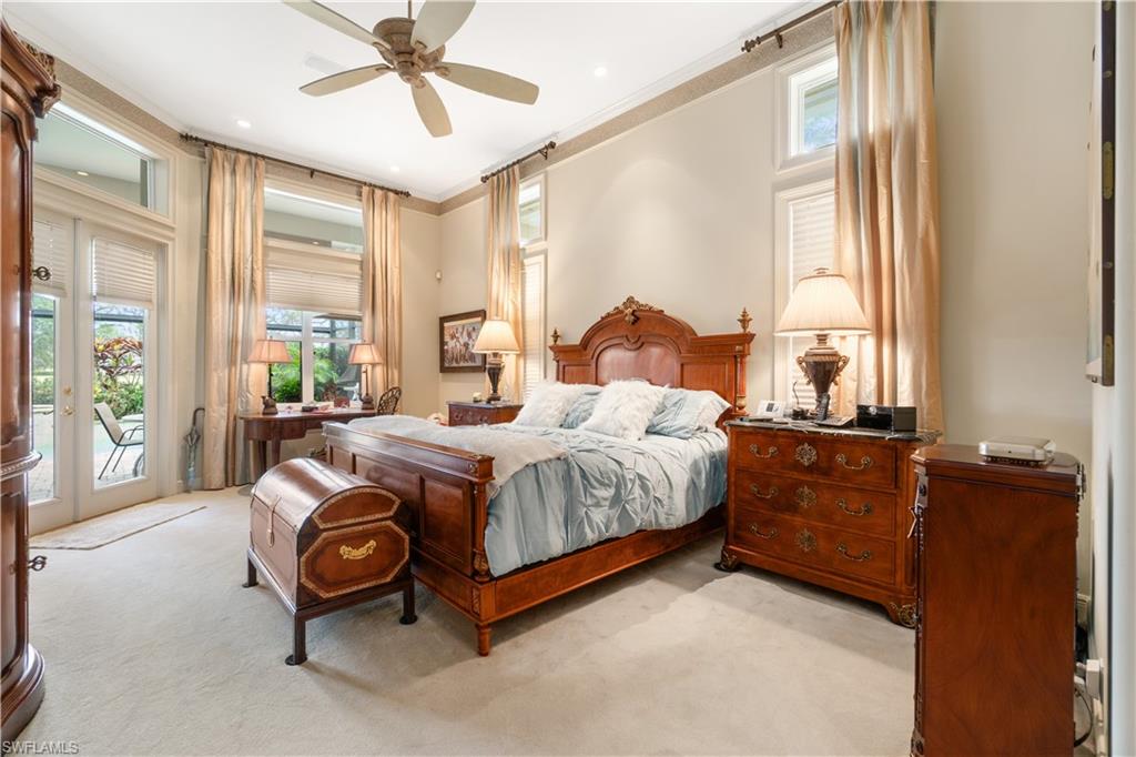 Exceptional estate situated on a rare corner lot with breathtaking lake views in the prestigious Audubon Golf & Country Club in North Naples. Offers highly sought-after SOUTHERN exposure for breathtaking sunsets and optimal sun over the pool. Originally built as one of Audubon’s model homes, this beautifully designed home offers 3,245 square feet under air with 4 spacious bedrooms, 4 full bathrooms, a 3-car garage, soaring high tray ceilings, and beautiful French doors, flooding the interior with natural light. Additional highlights include a 2014 roof, hurricane shutters, new hot water heater (2021), whole-house generator (2022), 500-gallon propane tank, and dual driveways for added convenience. The open-concept layout seamlessly blends indoor and outdoor living, with the lanai offering a serene retreat with a pool, spa, ample lounging space, and stunning lake views —perfect for relaxing or entertaining. Inside, you’ll find a spacious kitchen boasting white cabinetry, white countertops, and plenty of storage. The primary suite features private French doors to the lanai/pool deck, a large walk-in closet with custom built-ins, and an ensuite bathroom with dual vanities, a separate soaking tub, and spacious shower. Audubon’s prime location is just 5 minutes from Mercato and world-class beaches, and the community offers a gated/guarded entrance, an 18-hole championship golf course, tennis, pickleball, a Bayside boardwalk, and a newly renovated clubhouse with dining and a second beautiful poolside club and café.
