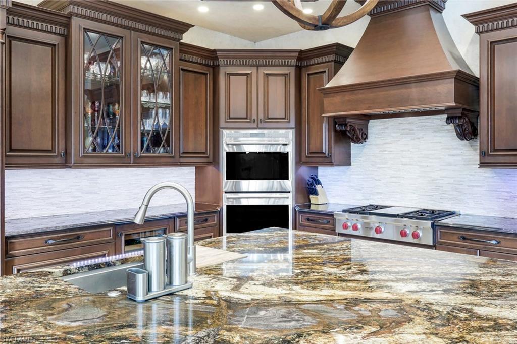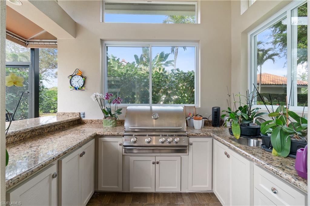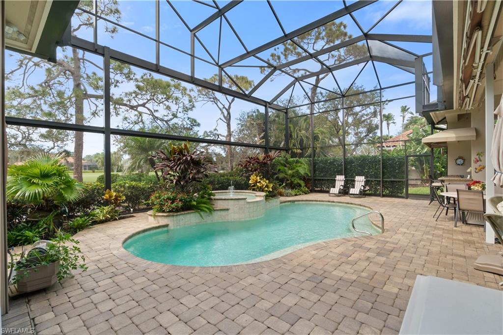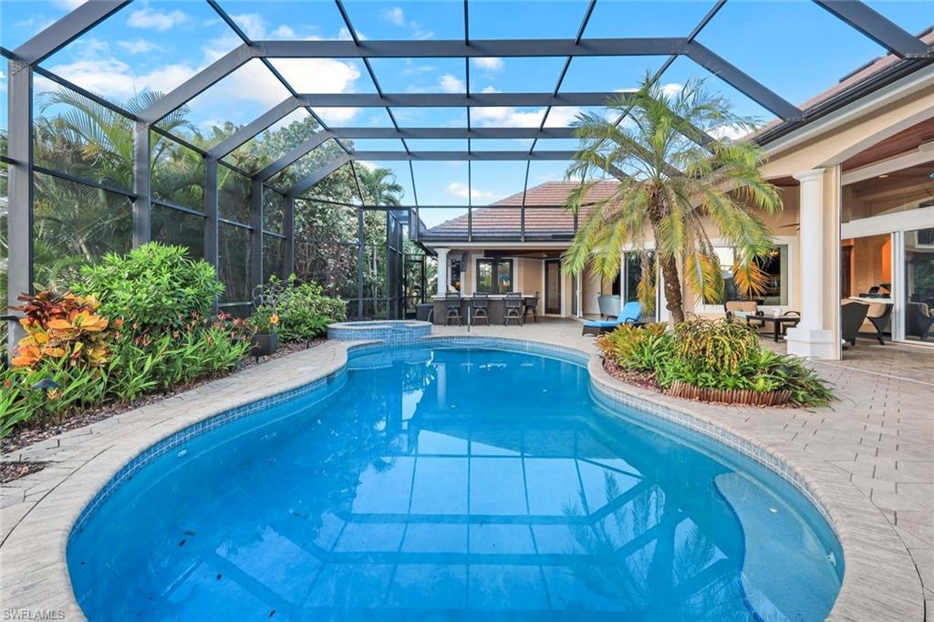Stunning estate with sweeping views of the golf course, nestled in the highly sought-after Audubon Golf & Country Club in North Naples. Spanning 3,952 square feet under air, this spacious home boasts 4 bedrooms, including dual primary suites, a den, 4 bathrooms, soaring high tray ceilings, and beautiful wood flooring. Additional features include a newer roof (2017) and a buried propane tank with a 22kw generator. Enjoy the coveted Southeast rear exposure, offering breathtaking sunsets right from the comfort of your own home. The expansive lanai is an entertainer's dream, complete with a heated pool, spa, summer kitchen, and stunning golf course views. The chef’s kitchen showcases sleek cabinetry, gorgeous granite countertops, top-of-the-line appliances, and a breakfast bar for casual dining. The generous primary suite offers private access to the lanai and a spa-like bath with dual vanities, a frameless glass shower, and a separate soaking tub. “Audubon Golf & Country Club” offers unparalleled amenities, including 24-hour gated security, an 18-hole championship golf course, tennis, pickleball, a scenic Bayside boardwalk, and a newly renovated clubhouse with dining options. Residents also enjoy access to a brand-new, spectacular poolside club and café. Just 5 minutes from Mercato and Southwest Florida’s world-renowned beaches, this home provides the perfect blend of luxurious living and ultimate convenience.