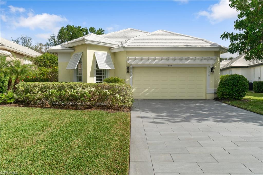 Beautifully maintained home with spectacular golf course & water views offered in North Naples’ coveted “Audubon Golf & Country Club!” Enjoy highly sought-after Southwest exposure—perfect for soaking in breathtaking sunsets. This light and bright home has soaring ceilings, wood and tile flooring, a convenient wet bar. The expansive outdoor living area is an entertainer’s dream, featuring a pool and spa, generous lounging space, and uninterrupted views of the lush golf course and Lake. Inside, the spacious kitchen offers granite countertops, stainless steel appliances, and a convenient breakfast bar for casual dining. Located in the Devon Green subdivision, the HOA services include landscaping, front lawn water irrigation, house painting and biannual roof cleaning for effortless maintenance. "Audubon Country Club" is perfectly located 5-min from Mercato & SWFL's world-class beaches, with gated/guarded entry, an 18-hole championship Golf Course, tennis, pickleball, Bayside boardwalk, fabulous fitness facilities, clubhouse with dining & 2nd spectacular poolside club/café.