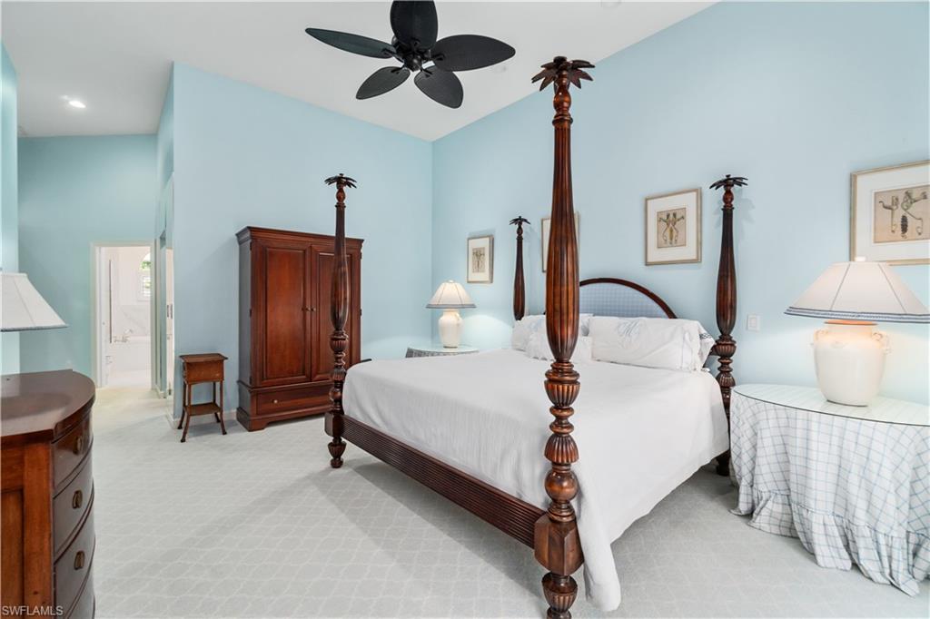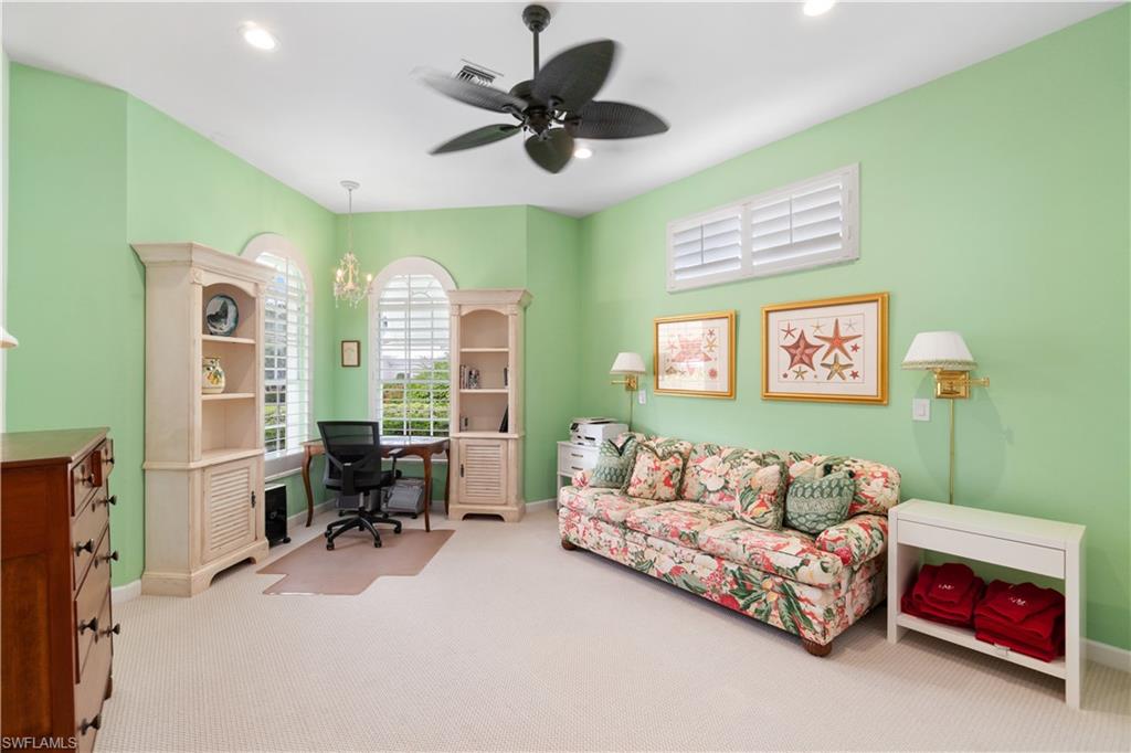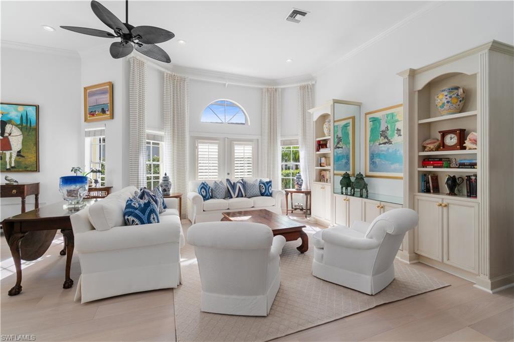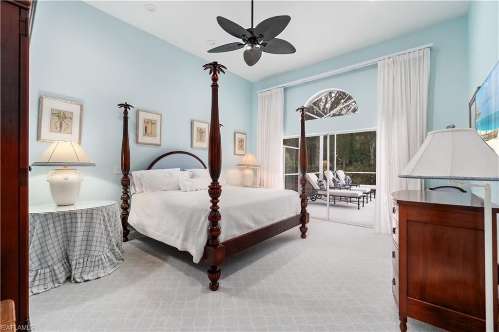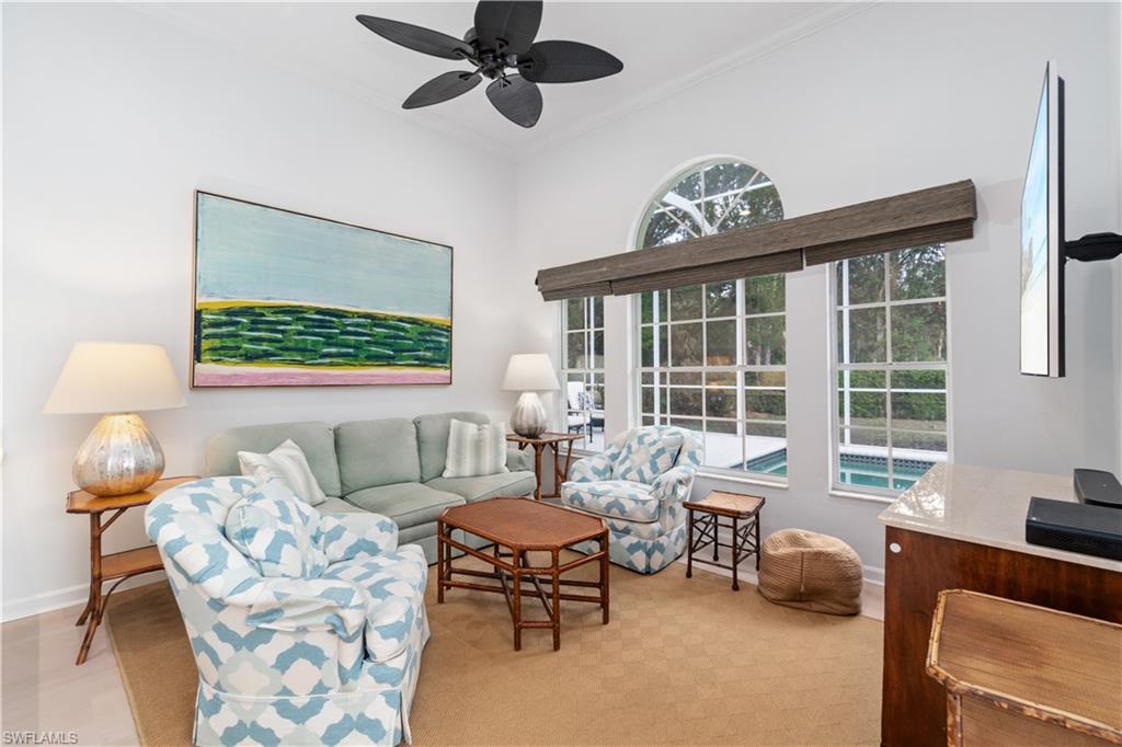 This stunning 2006-built estate, located in North Naples’ coveted “Audubon Golf & Country Club”, offers breathtaking golf course views. The home spans 3,429 sq ft under air and includes 4 bedrooms, a den, 3.5 baths, a guest cabana, hurricane impact windows/sliders, 3 HVAC units, and a whole-house generator. With desirable Western rear exposure, you can enjoy breathtaking sunsets right from your home, while the Southern exposure ensures perfect sunlight over the pool. The expansive lanai serves as a perfect outdoor retreat with a pool, spa, summer kitchen with a wet bar, grill, and refrigerator, as well as a separate beverage bar with a fridge, sink, and new ice maker (2022)—ideal for both relaxation and entertaining. The outdoor space has been upgraded with a new pool screen (2020), pool pump (2021), landscape lighting, and 3 new lanai fans. A separate back patio offers the perfect vantage point to watch golfers pass by. Inside, you'll find elegant tile flooring throughout, soaring ceilings with custom tray and coffered details, smart home automated lighting, and a full Sonos audio system for both indoor and outdoor enjoyment. The cozy living room features a fireplace and an expansive built-in wet bar, complete with a beverage fridge and ample storage. The chef’s kitchen showcases beautiful mahogany cabinetry, granite countertops, and a breakfast bar for casual dining. The spacious primary bedroom offers stunning golf course views, dual walk-in closets, and a spa-like bathroom with dual vanities, a frameless glass walk-in shower, and private access to the lanai. The guest cabana is an entertainer’s dream with a private entrance to the lanai, 2 bedrooms, 1 bath, and a second-floor balcony overlooking the pool. Additional features include a well pump (which lowers water bills), 3 internet-controlled thermostats, a built-in safe, a Ring security system with 4 cameras, an epoxy-coated garage floor, and a golf cart with charger. Audubon’s prime location is just 5 minutes from Mercato and world-class beaches, and the community offers a gated/guarded entrance, an 18-hole championship golf course, tennis, pickleball, a Bayside boardwalk, and a newly renovated clubhouse with dining and a second beautiful poolside club and café.