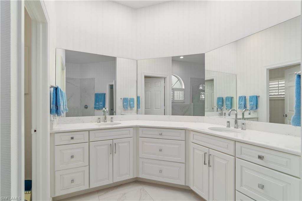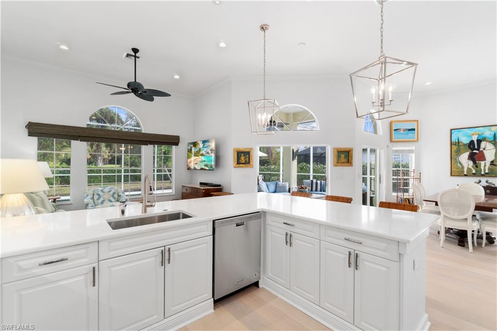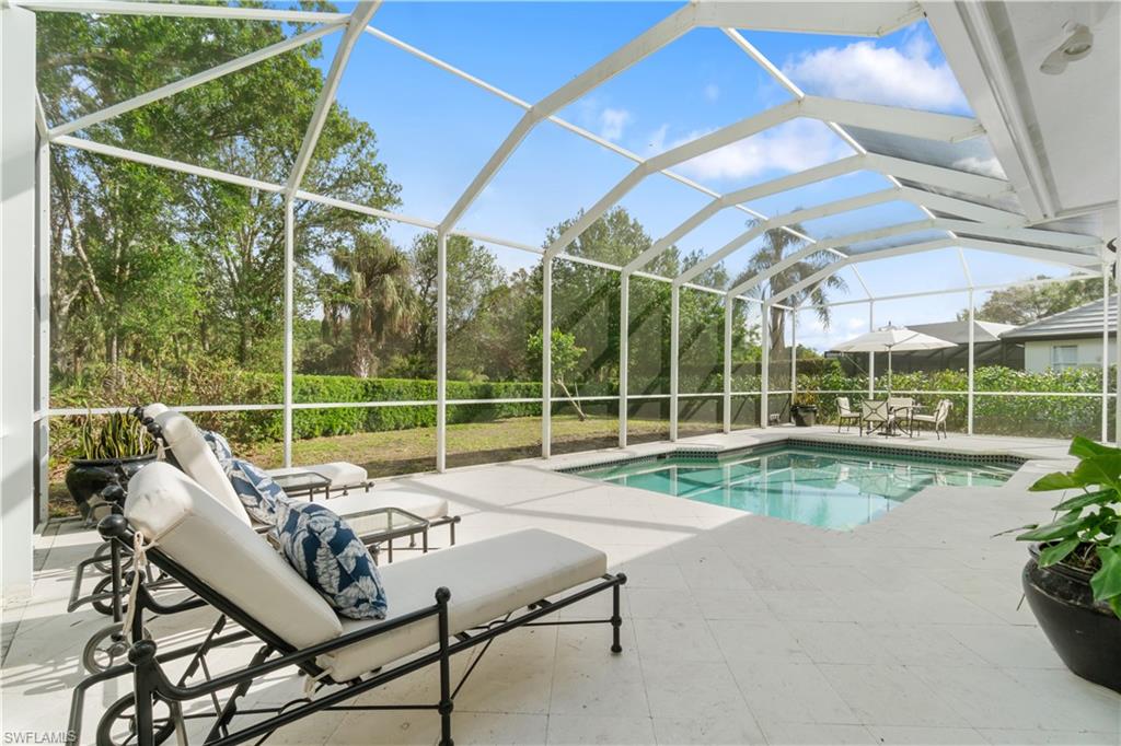 This beautifully renovated home, situated along the golf course in the prestigious “Audubon Golf & Country Club” in North Naples, offers an exceptional living experience. With a bright and airy open floor plan, it features 3 bedrooms, 3 baths, soaring ceilings, stylish wood-look tile flooring, and a brand-new roof (2024). Relax in privacy on your screened-in lanai, complete with a pool, newly installed pool deck pavers (2024), and ample space for lounging, all surrounded by lush landscaping. The chef’s kitchen has been beautifully remodeled with pristine white quartz countertops, elegant white and glass-enclosed cabinetry, stainless steel appliances, including an electric range and wine refrigerator, and a convenient breakfast bar. The spacious primary suite features private lanai access and a luxurious, updated bathroom with dual vanities, a large walk-in shower, and separate soaking tub. Additional upgrades include new pavers on the driveway and walkway (2024), fresh interior and exterior paint, and a remodeled guest bath. “Audubon Golf & Country Club” offers unparalleled amenities, including 24-hour gated security, an 18-hole championship golf course, tennis, pickleball, a scenic Bayside boardwalk, and a newly renovated clubhouse with dining options. Residents also enjoy access to a brand-new, spectacular poolside club and café. Just 5 minutes from Mercato and Southwest Florida’s world-renowned beaches, this home is ideally located for the ultimate in convenience and luxury living.