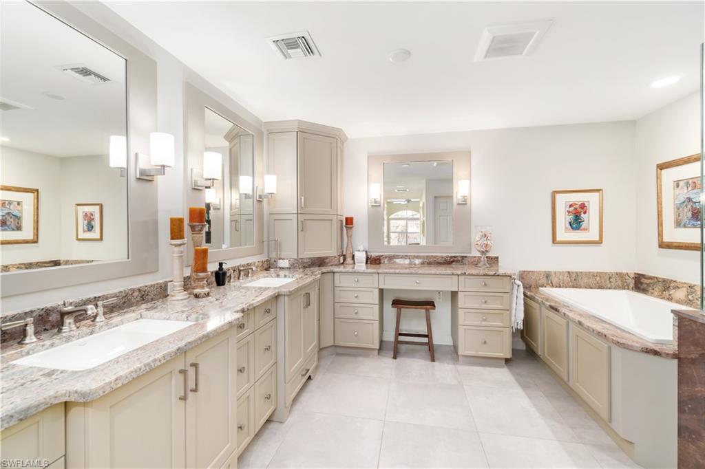 Beautiful condo with spectacular golf & lake views in North Naples’ coveted “Audubon Golf & Country Club!” All the prime amenities offered in Audubon are only steps away, including an 18-hole championship golf course, tennis, pickleball, Bayside boardwalk, brand-new spectacular poolside club & café. Relax and unwind on your expansive screened-in lanai with breathtaking panoramic golf course and lake views. This light, bright & airy home boasts an open floor plan with 3 beds + den/3.5 baths, private 2-car garage plus golf cart storage, tray ceilings, ample storage with built-in cabinets, formal dining space & built-in wet bar with wine fridge. Chef’s kitchen offers high-end custom white cabinetry, quartz counters, separate range hood vent for grilling if desired & an eat-in kitchen that can also be utilized as an extra living area or home office. Spacious primary suite offers magnificent golf course views, custom closets with abundant storage, separate jetted tub & dual vanities. North Naples' "Audubon Country Club" is perfectly located 5-min from Mercato & SWFL's world-class beaches, with gated/guarded entry.