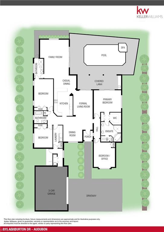 This exquisite three-bedroom, three-bathroom villa-style residence situated within the esteemed Audubon Country Club will capture your attention. Encompassing a 2025-renovated lanai featuring travertine tile and a resurfaced pool, this oasis offers a breathtaking panoramic view that frames a picturesque southwestern vista of a pond and fairway. It presents an unparalleled experience that should not be missed. This villa-style home boasts an updated kitchen equipped with state-of-the-art appliances (2024), two newly renovated bathrooms (2019/2024), a new roof (2019), updated flooring (2017), a new HVAC system, pool mechanicals, and landscaping (2023). Devon Green has its own homeowners’ association, which is responsible for maintaining the landscaping, irrigation, and other amenities .