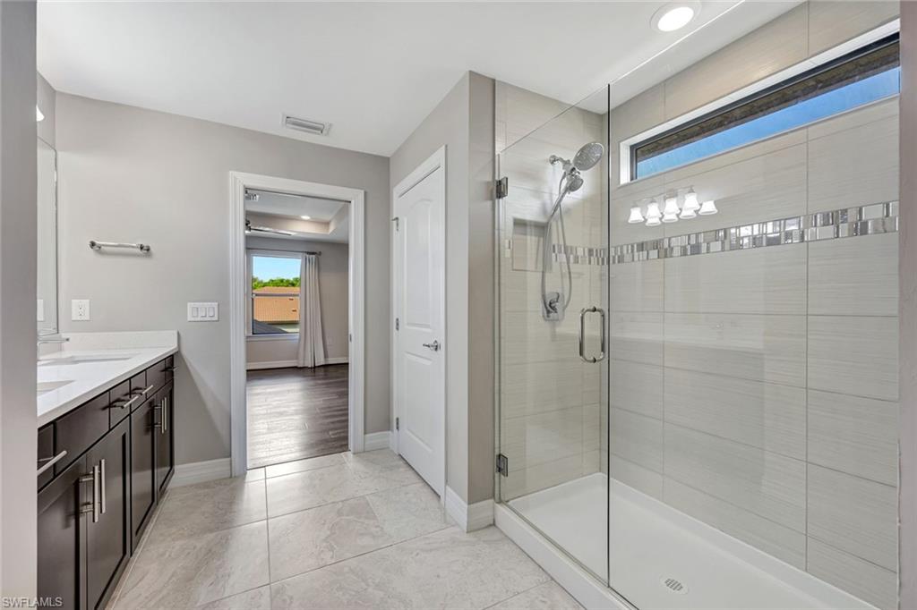 Exquisite custom home in Avery Square, 7111 Barnsbury Lane. Experience refined living in this exceptional custom-designed home, in the heart of Naples, just minutes from beaches, Mercato and 5th Avenue S, and in Collier County's best school zones. Thoughtfully upgraded throughout, this residence offers high-end finishes, quality craftsmanship, and a seamless blend of style and function beyond what every other home in this neighborhood has. The open-concept great room and kitchen are designed for everyday living and entertaining, featuring a spacious island with custom millwork, thick slab quartz countertops, and self-closing rollout cabinetry. A five-burner Miele gas cooktop, double oven, built-in microwave and a walk-in pantry with built-in shelving provide beauty and performance. The built-in dry bar, complete with a beverage refrigerator, wine rack and shiplap accent wall, adds an elegant touch. Custom details continue throughout the home, including floor-to-ceiling glass doors opening to a versatile office or formal dining room. Designer lighting, sconce accents, plantation shutters and transom windows enhance the sophisticated ambiance. The primary suite is spacious, featuring a spa-like bath with a beautiful freestanding tub ideal for long soaks and an oversized walk-in closet. The second-floor loft provides additional living space, while the expansive laundry room is equipped with two front-load washers and dryers, plus additional plumbing hookups. This well-thought-out floor plan includes a bedroom and full bath on the first floor, ideal for guests who prefer to avoid stairs. Step outside to a private outdoor retreat featuring a luxurious pool and spa with breathtaking long lake views. A TV has been installed on the lanai near the spa to maximize outdoor enjoyment. On a cul-de-sac with an oversized driveway and an epoxy-finished garage floor, this home offers privacy and convenience. Avery Square is a charming, highly desired, gated, low-density neighborhood with only 82 homes.