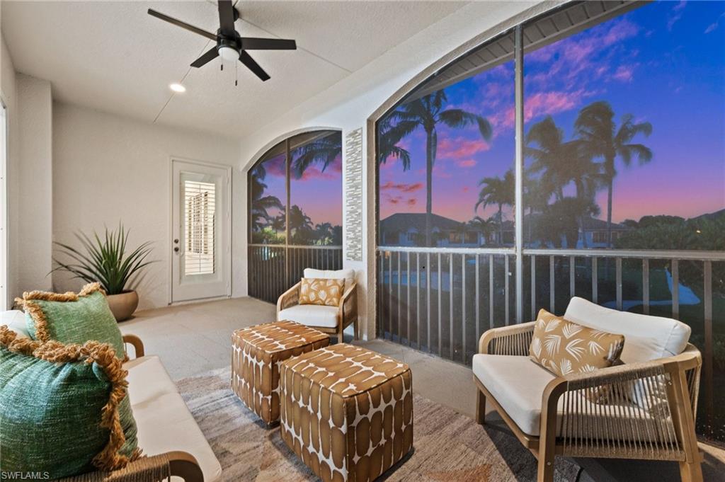 Beautifully Appointed Coach Home in The Reserve II at Banyan Woods Outstanding value for this spacious second-floor coach home, the largest floor plan in The Reserve II, offering 3 bedrooms plus an office, bonus/family room, and 3 full baths, perfectly blending comfort, function, and style. The inviting foyer greets you with a grand staircase and elegant wood flooring, while the private elevator provides effortless access to the main living area above. The open-concept layout features 10-foot ceilings that enhance the sense of space and light. The kitchen includes granite countertops, stainless-steel appliances, a wall oven, and a charming breakfast nook overlooking the lake. Recently painted throughout, the residence is move-in ready. The oversized screened lanai offers one of the most premium views in The Reserve II—overlooking the tranquil lake, fountain, and natural wildlife—and features a built-in electric grill for outdoor entertaining. The office showcases rich wood built-ins, while the expansive family/bonus room includes custom cabinetry, a refrigerator, and a wine cooler, making it an ideal space for gathering or relaxation. Each of the three bedrooms is generously sized with ample closet space. Additional highlights include electric hurricane shutters, abundant storage throughout, and a two-car garage with built-ins. Residents of The Reserve II enjoy a maintenance-free lifestyle with exterior maintenance included in the association dues. The community has recently updated roofs and exterior paint, with no outstanding special assessments. Amenities at Banyan Woods include a resort-style pool and spa, clubhouse, fitness center, playground, basketball court, and even a lined pickleball court. Ideally located at the corner of Airport-Pulling and Pine Ridge Roads, Banyan Woods offers quick access to fine dining, shopping, entertainment, and the world-famous white-sand beaches of Naples.