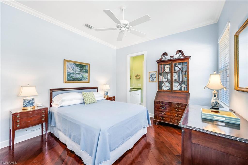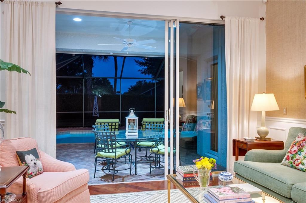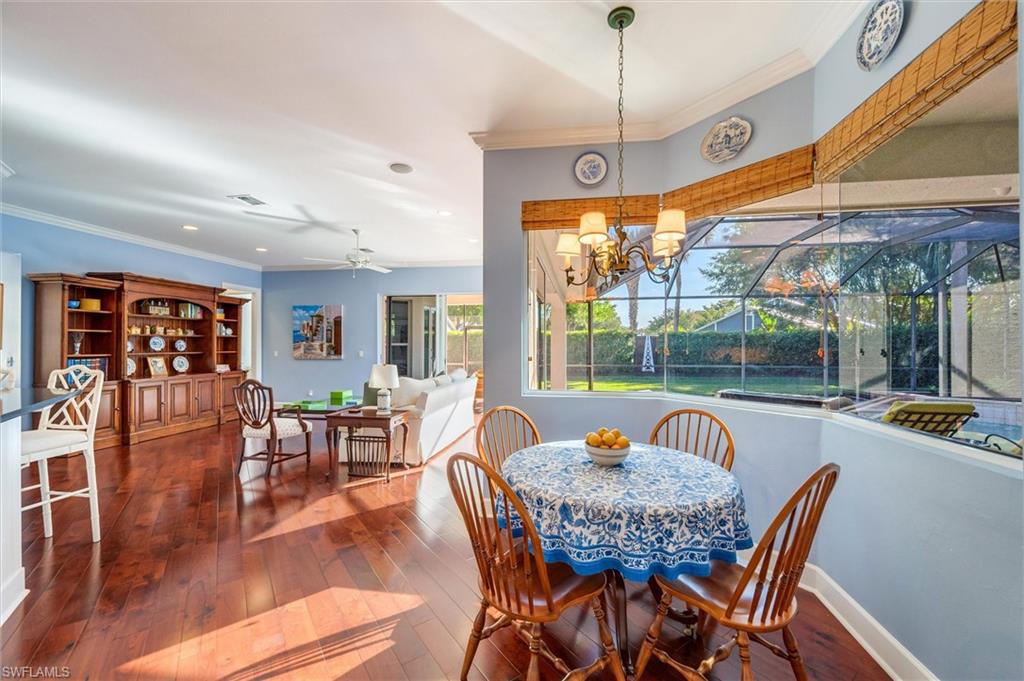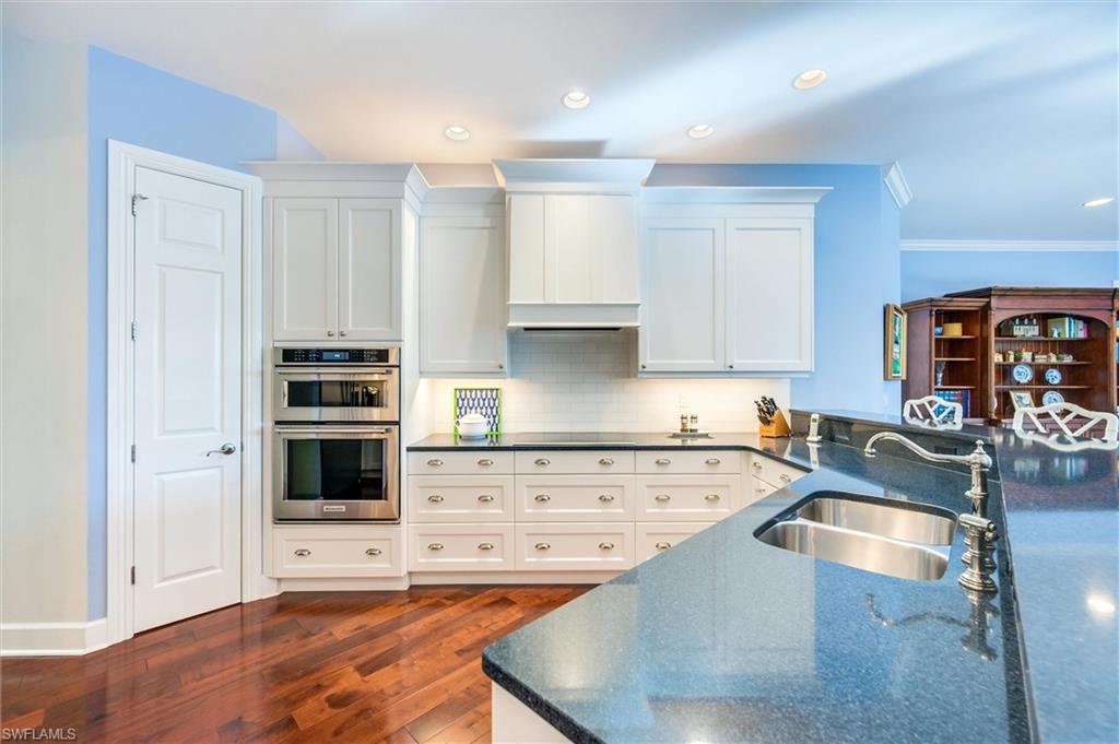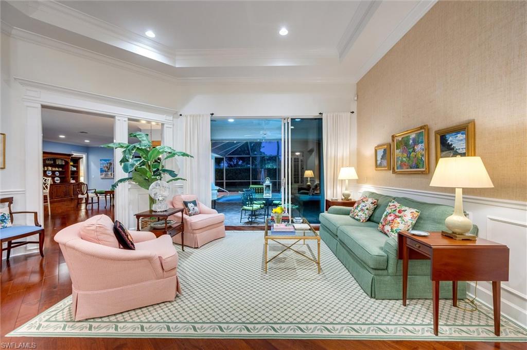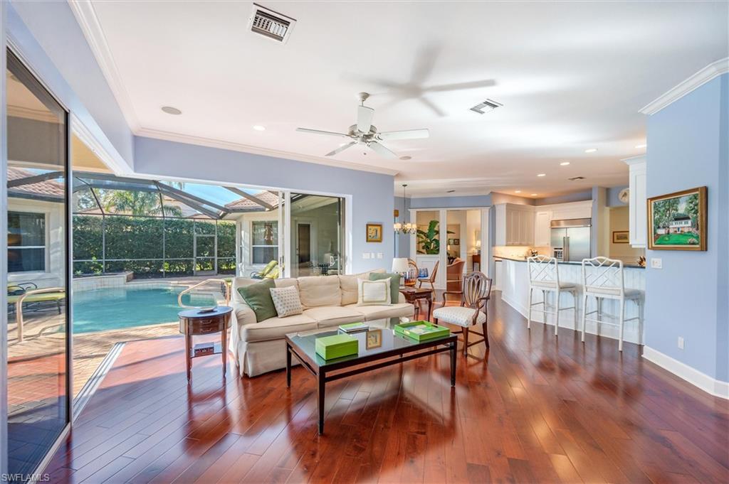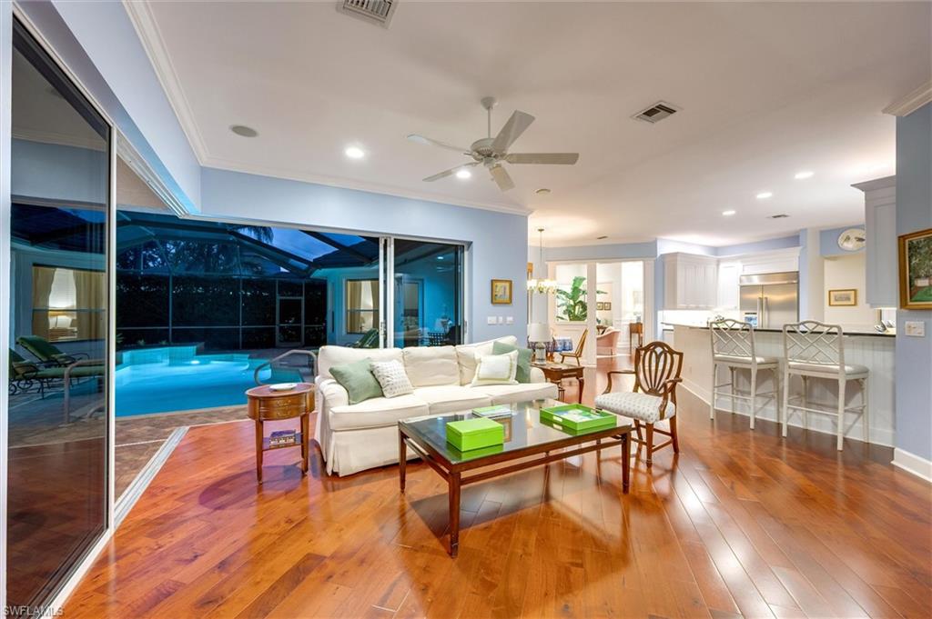 Banyan Woods, A Best-Kept Secret. Naples meets Palm Beach in Banyan Woods. Timeless sophistication. Impeccable details and design and quality craftsmanship. Centrally located within Naples. Fabulous curb appeal with attractive landscaping. An abundance of natural light flows into this 2945 under a/c SF home with a split open floor plan. Striking walnut hardwood flooring throughout, custom moldings, remodeled kitchen with custom white wood cabinetry and hood. The spacious kitchen is laid out perfectly and features quartz countertops with a marble backsplash, a 42” extra wide refrigerator and Kitchen Aid stainless steel appliances, large pantry, and plenty of space for a coffee bar and more. The floorplan offers 4 generous size bedrooms, study, 3 full baths, morning nook and great room, plus formal living, and dining areas. The ideal outdoor space with private south facing heated pool boasts a new pool heater (2025), large pool deck, two undercover patios, and a yard surrounded by lush hedges in an X Zone. It is a pleasure to show this pristine and well-maintained home with everything in top-notch working condition - two HVAC’s, water heater, irrigation system with new timers and rain gauges, updated ceiling fans, epoxy garage flooring, Hunter Douglas window treatments, and plantation shutters. Perfectly situated with views of the beautifully landscaped community, in a quiet location near the clubhouse with fitness center. Banyan Woods is a gated community with 100 lushly landscaped estate homes and 88 carriage homes. Located south of Pine Ridge Road just north of Grey Oaks Golf and Country Club and west of Kensington Country Club, and all the convenience shopping one could want is right outside the back gate. This desirable and convenient location is only minutes to downtown and Fifth Ave for world-class dining and shopping, THE MERCATO for nightlife, white sandy beaches, hospitals, public and private schools and more! You will want to see this gracious and lovely home for yourself so don't hesitate! Mrs. Clean owns this home...you CAN eat off the kitchen floor!
