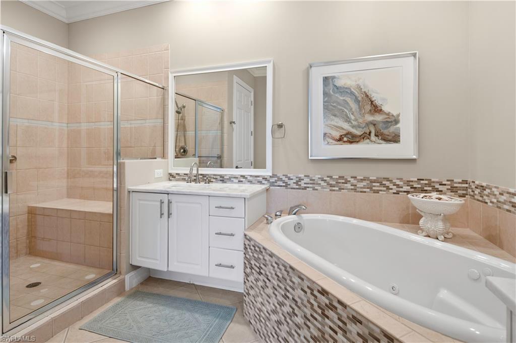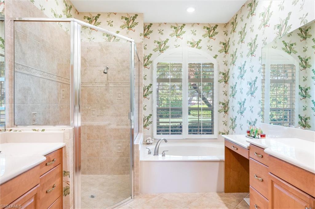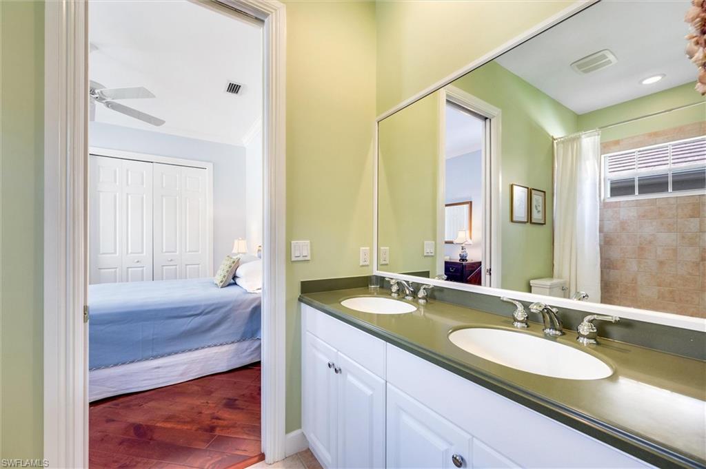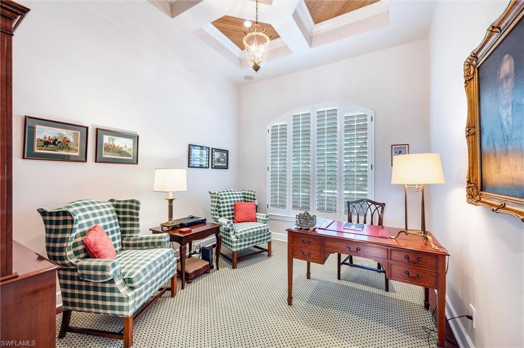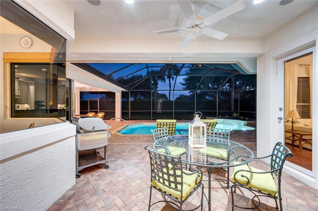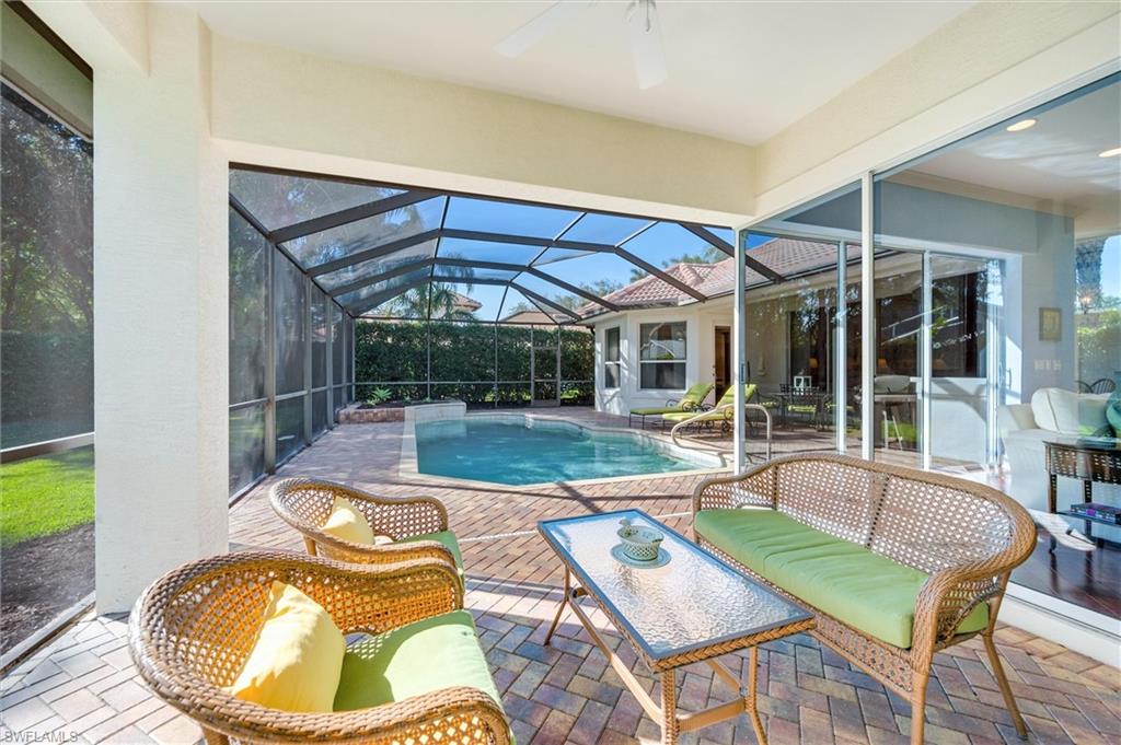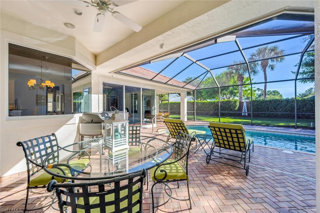 This meticulously maintained 4-bedroom/3.5 bath courtyard home in the upscale gated Banyan Woods Community in North Naples has over 3,100 sq. ft. under air. Banyan Woods HOA fees are low and its proximity to restaurants, shopping, 5th Ave, beaches, and Interstate 75, place it in a highly desirable location. This home features multiple upgrades such as blown-in foam attic insulation as well as all interior walls, new (2018) KitchenAid appliances, a gas fireplace, tile floors in the main living area, plantation shutters, custom Hunter Douglas remote control window shades, wood floors in the bedrooms and den, surround sound, private pool with fountains and hot tub/spa with waterfall feature, an outdoor kitchen with a Viking gas grill and wine cooler, a separate cabana guest house, central vacuum system, a whole-house 20 KW Kohler generator with a 250- gal propane tank, and a fenced backyard are a few. The roof and both air conditioners have recently been replaced. A complete list of upgrades is in the Supplements.