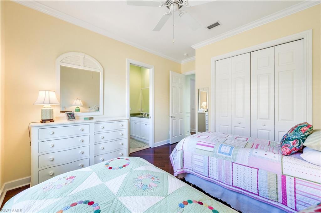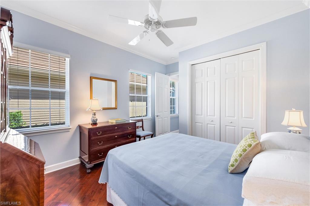 First floor coach home features 3 bedroom with 2 bathrooms, southern exposure, beautiful lake views and is just a short distance to the pool. Residence lives like a single family home with an abundance of windows allowing for plenty of natural light. 2 car attached garage. Many upgrades in the home including automated hurricane shutters on screened in patio, tile flooring in main living areas and bathrooms and hard wood flooring in main bedroom and guest bedroom, 3 rd bedroom is carpet. Enjoy cooking in your spacious upgraded kitchen with an eat-in bay window nook, granite countertops and newer appliances and custom cabinetry with built in pantry. Crown molding in main living and bedrooms as well as new fixtures and fans throughout. This home is a must see and great location. Spacious laundry room right off the garage offers a laundry sink and plenty of cabinets for storage. The building had new roofs installed 2 years ago. Banyan woods and their clubhouse offers a variety of recreational activities including a fitness center, various activity rooms, gazebo and heated pool and spa, community playground or basketball courts. Close to 5th Avenue shopping and dining, the Beaches of Naples, 3rd Street South, Coastland Center Mall and more, Banyan Woods has everything you need right out your front door.