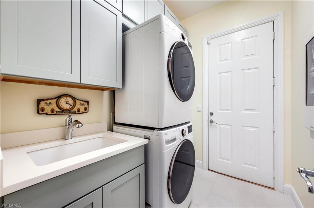 LOWEST PRICE FOR THE LARGEST FLOOR PLAN IN BANYAN WOODS!! This condo is in a prime location minutes to Clam Pass, Vanderbilt Beach, both Ritz Carlton's, downtown Naples and Mercato! Featuring the LARGEST floor plan in Banyan Woods with over 3,000 sq. ft. of living space, this brightly lit, 2nd floor home with soaring 10' ceilings features a spacious open living/dining area with tile flooring throughout and wood laminate in the bedrooms. The large sliders leading out to the screened lanai overlooking the large pool and the lake – making it an ideal spot to take in the sunsets. The large kitchen has plenty of counter space, S/S appliances, warm wood cabinetry, and a pass-through with breakfast bar. The incredibly large family room/MASSIVE media room is fitted with a large screen and projector for movie nights! Private owner's ensuite leads out to the lanai, 2-walk in closets with built-ins, ensuite bath with tub and separate shower, plus 2 separate sink vanities. The home has three additional large bedrooms - two sharing a full bath with shower, and 1 ensuite with a shower/tub combo. Enjoy the convenience of a separate laundry room with cabinetry and sink. A private two-car garage is on the ground floor leading into a private elevator access that can be converted and equipped with a fully operational elevator if desired, Agents a quote to install the elevator is available in the supplements. (Currently being used as storage). All exterior maintenance is covered in the association dues, along with cable, internet, water and sewer. A new roof was installed in 2020; AC was replaced in 2021. Banyan Woods offers a community pool & spa, fitness center, clubhouse, basketball courts, playground, plus an active social calendar. This is a buyer’s paradise!!!!