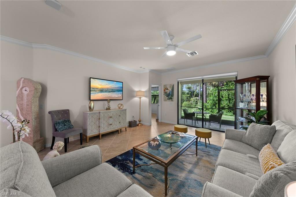 Welcome Home! A perfect piece of paradise on a private preserve lot. Whether you're seeking a retirement haven, a second home retreat, or a A+ top-tier school district for your family, Bent Creek offers it all! This lovely villa features 3 bedrooms, 2 bathrooms, & a 2-car garage w/ numerous upgrades. Step into a beautifully designed space featuring modern decor and tasteful finishes including tile flooring throughout, making it very light inside. The kitchen boasts stainless steel appliances, granite countertops, a custom backsplash and upgraded white cabinets. Enjoy the spacious master suite offering a serene retreat with a luxurious en-suite bathroom and large walk-in closet. Amazing amenities which include a resort style pool, spa, fitness center, bocce courts, lighted pickleball & tennis courts, firepit area, fitness center, clubhouse with billiards & catering kitchen. Low HOA and NO CDD! Located close to Founders Square for shopping and dining in North Naples.