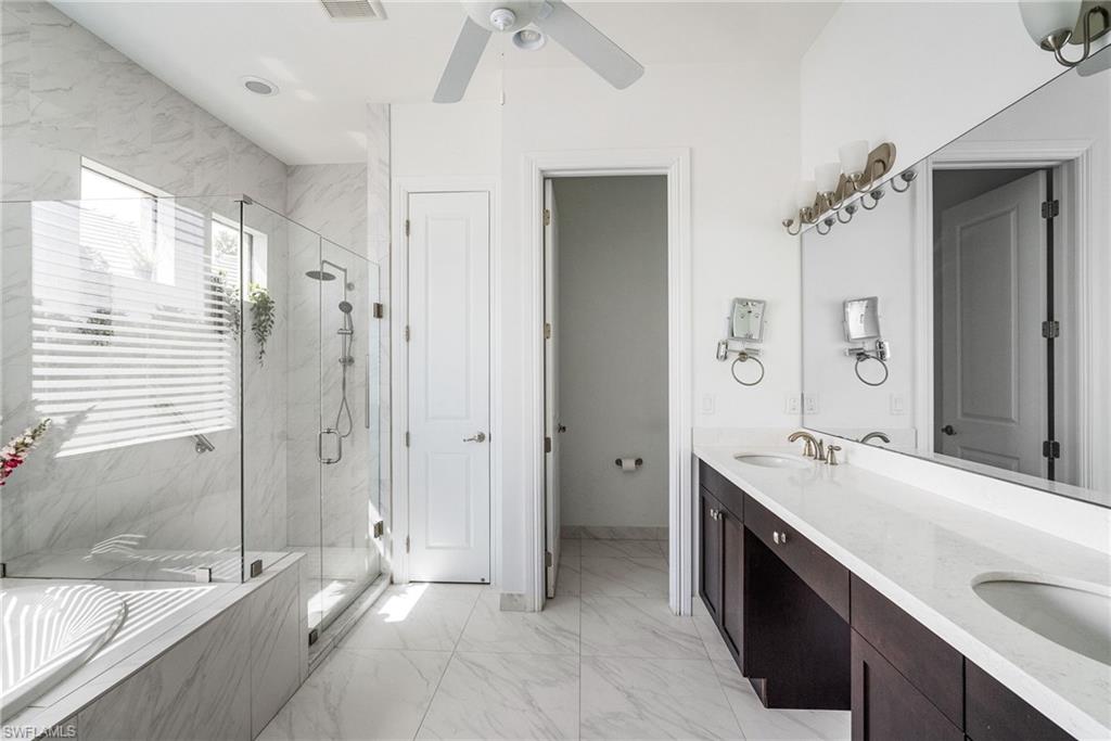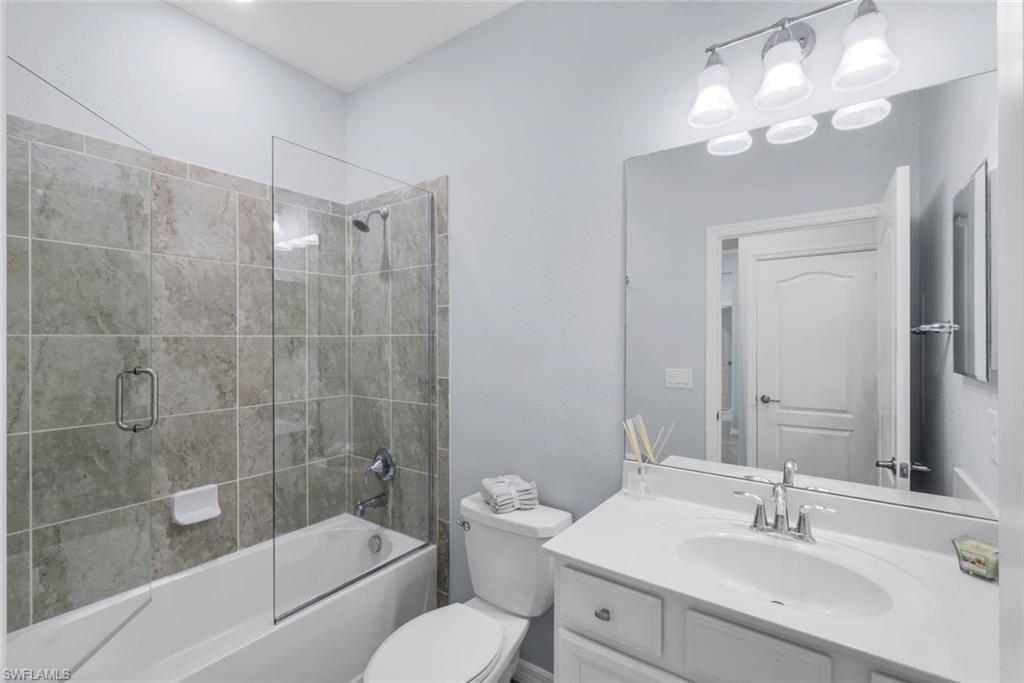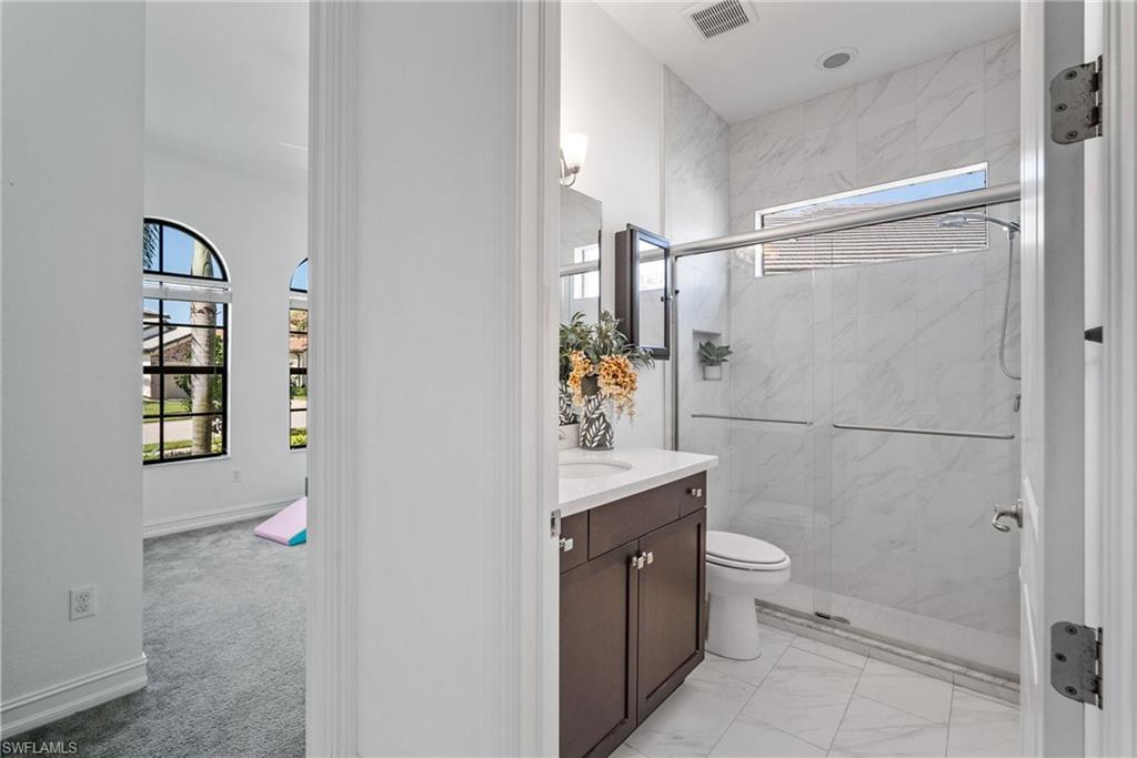 GLEAMING ABOUT GREENLEIGH!! WITH its rare, attached guest house, sparkling lake view, and custom pool and spa (with huge expanded covered lanai), 9442 Greenleigh Ct. will have you gleaming!! Highlights of the main home include popular open concept great room floor plan, crown moulding, large kitchen with stainless steel appliances and 4 person breakfast bar island, WHOLE HOUSE SOLAR POWER (already paid in full by seller with $0 remaining balance), IMPACT WINDOWS WITH ELECTRIC ROLL DOWN SHUTTERS FOR LANAI, tile floors throughout the ground level with carpet on 2nd level, HUGE BONUS ROOM/LIVING ROOM ON 2ND LEVEL, huge 2nd floor master suite with amazing walk-in-closet, large guest bedrooms, upgraded guest baths and more!! HIGHLIGHTS OF THE 1 BEDROOM GUEST HOUSE INCLUDE SEPARATE FRONT ENTRANCE AND PRIVATE GARAGE, SEPARATE LAUNDRY, solar power, tile floors with exception to the bedroom, crown moulding, spacious family room, FULLY EQIPPED KITCHEN with stainless steel appliances, UPGRADED BATHROOM WITH CUSTOM WALK IN SHOWER and more!! Outdoors you will be blown away by the amazing, fully custom outdoor living space, including huge, extended covered area with tall wood planked ceiling, outdoor kitchen, marble decking, modern sparkling SALTWATER pool, separate 6-person spa with spillover waterfall feature, BRAND NEW POOL HEATER, screened pool enclosure, lake views, pool bath, electric hurricane shutters for lanai and more!! This amazing home is located in Bent Creek Preserve, a gated, wonderful collection of upscale homes offering low fees and wonderful lakeside amenities! Amenities include fully equipped fitness center, steam room, resort style pool, tennis courts, pickleball courts, billiards, bocce ball, basketball, clubhouse and playground!! Also, ideally located offering direct, gated access to popular Founders Square (shopping and dining center) and close proximity to the area’s best shopping, dining, entertainment and all that SW Florida has to offer!! Also, FREE BEACH PARKING PASSES exclusive to Collier County Residents TO MULTIPLE BEACHES are available through the county!! Call for your private showing today!!