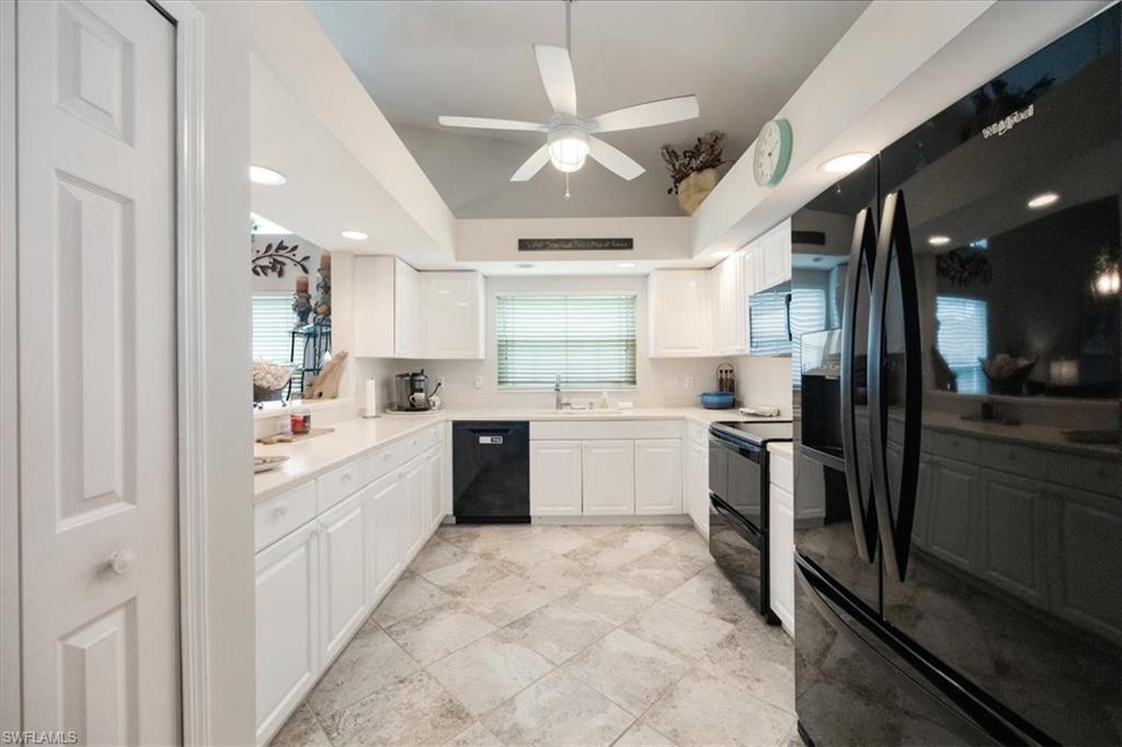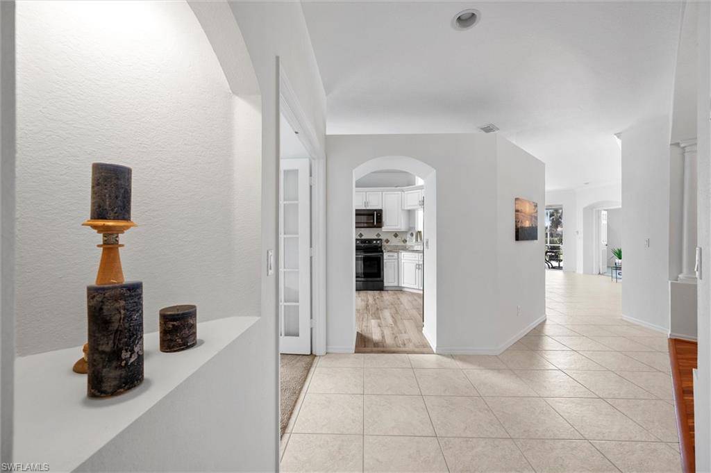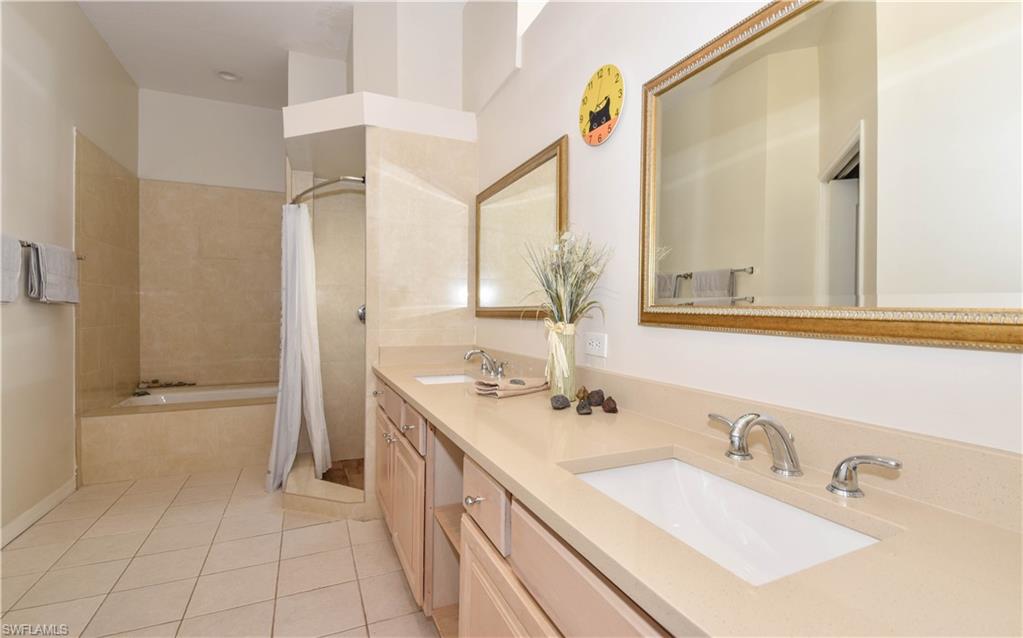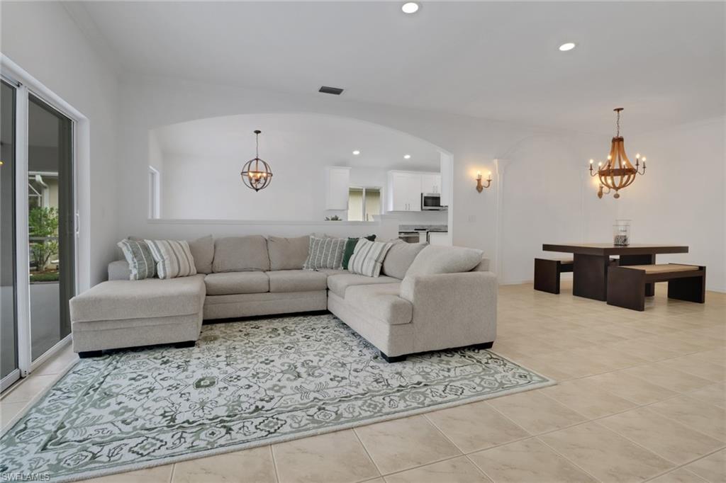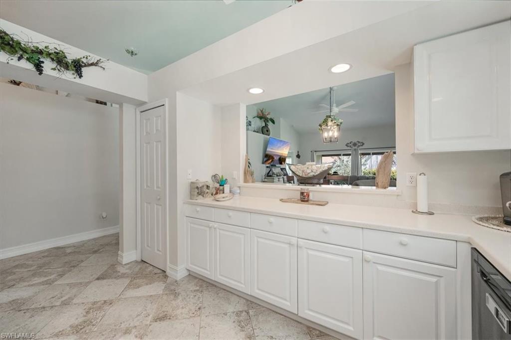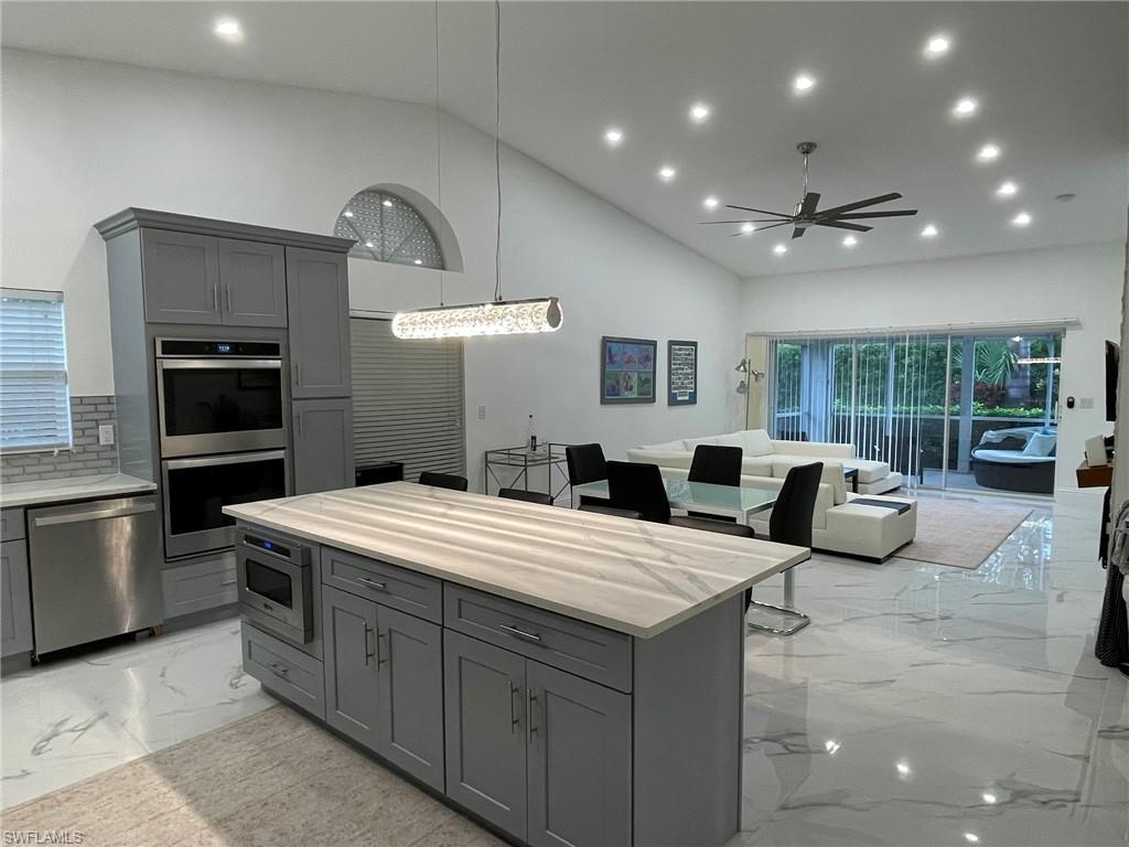 NEW NEW NEW! Enjoy countless upgrades in this home for a lasting low-maintenance lifestyle! Featuring a new tile roof, this spacious 3 bedroom home has great curb appeal with new landscaping and an oversized and expanded, freshly painted screened patio. Inside, discerning buyers will enjoy new paint throughout, a brand new, never used kitchen with white shaker cabinetry, attractive quartz countertops, and brand new stainless steel appliances. Offering a popular eat-in kitchen plan, this home has ample room for entertaining and abundant light from two oversized sliders in the great room and dining area leading out to the patio. The spacious master suite features volume ceilings and a large custom window, along with 2 walk-in closets and a spa bathroom with dual sinks, large soaker tub and separate tiled shower. The 2 guest bedrooms can easily support king beds and share a spacious guest bathroom with updated vanity. Interior laundry offers additional storage and a wash sink. The 2 car garage was also freshly painted and features a brand new AC system and newer hot water tank. This gated community offers boutique amenities including a community pool, clubhouse, playground, tennis and pickleball courts and two convenient entrances/exits. Premiere location close to Publix, shops and restaurants, and is just 6 miles to beautiful downtown Naples/5th Ave, famous beaches, and the best of what Naples has to offer.
