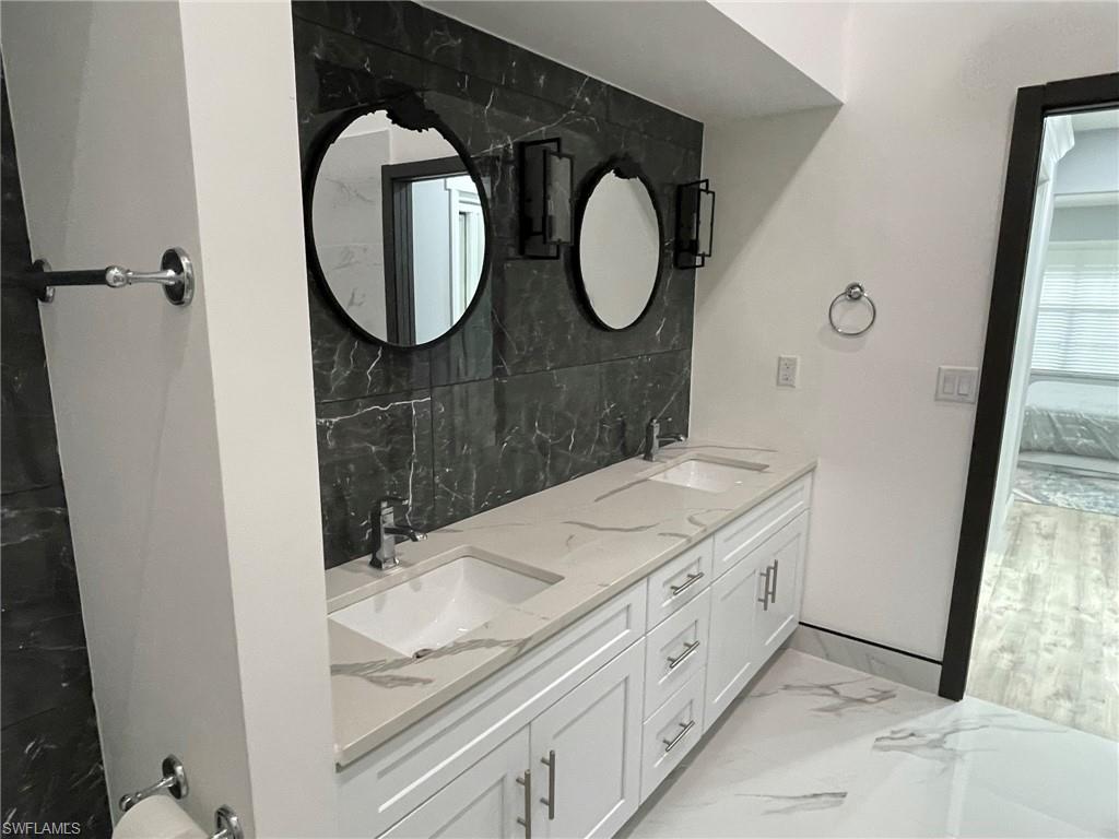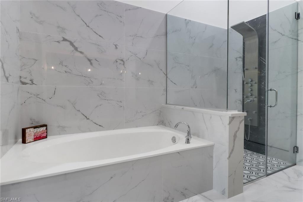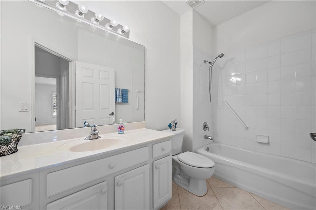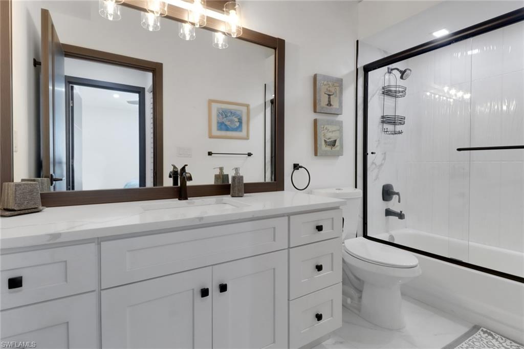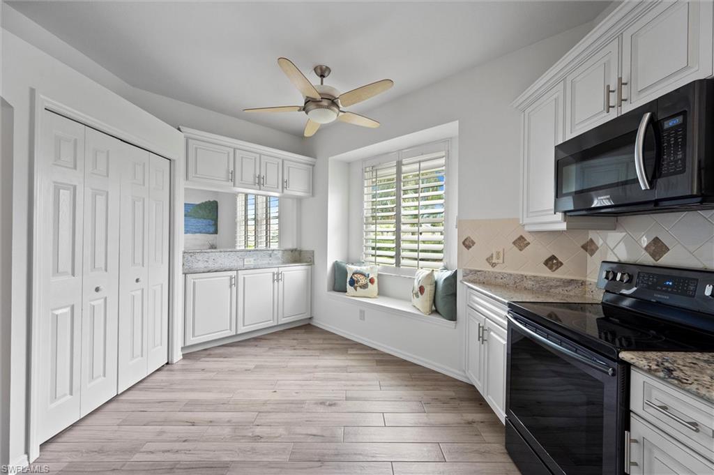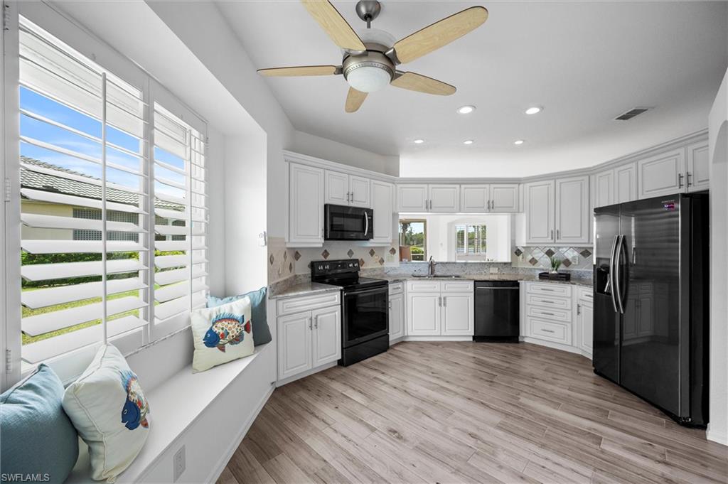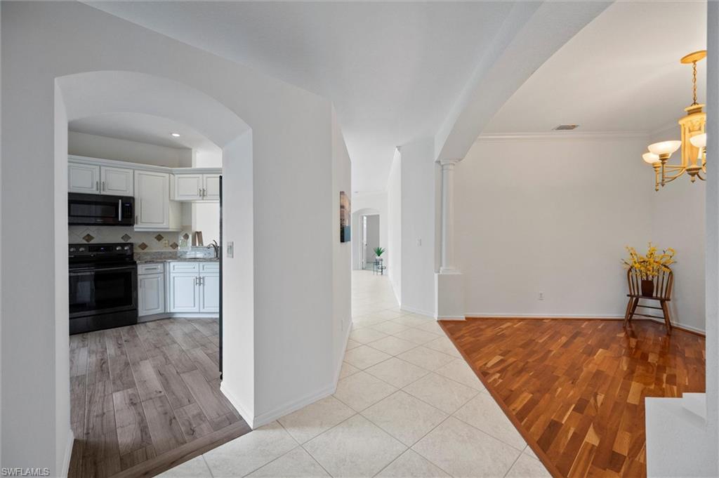 NEW NEW NEW! Enjoy countless upgrades in this home for a lasting low-maintenance lifestyle! Featuring a new tile roof, this spacious 3 bedroom home has great curb appeal with new landscaping and an oversized and expanded, freshly painted screened patio. Inside, discerning buyers will enjoy new paint throughout, a brand new, never used kitchen with white shaker cabinetry, attractive quartz countertops, and brand new stainless steel appliances. Offering a popular eat-in kitchen plan, this home has ample room for entertaining and abundant light from two oversized sliders in the great room and dining area leading out to the patio. The spacious master suite features volume ceilings and a large custom window, along with 2 walk-in closets and a spa bathroom with dual sinks, large soaker tub and separate tiled shower. The 2 guest bedrooms can easily support king beds and share a spacious guest bathroom with updated vanity. Interior laundry offers additional storage and a wash sink. The 2 car garage was also freshly painted and features a brand new AC system and newer hot water tank. This gated community offers boutique amenities including a community pool, clubhouse, playground, tennis and pickleball courts and two convenient entrances/exits. Premiere location close to Publix, shops and restaurants, and is just 6 miles to beautiful downtown Naples/5th Ave, famous beaches, and the best of what Naples has to offer.