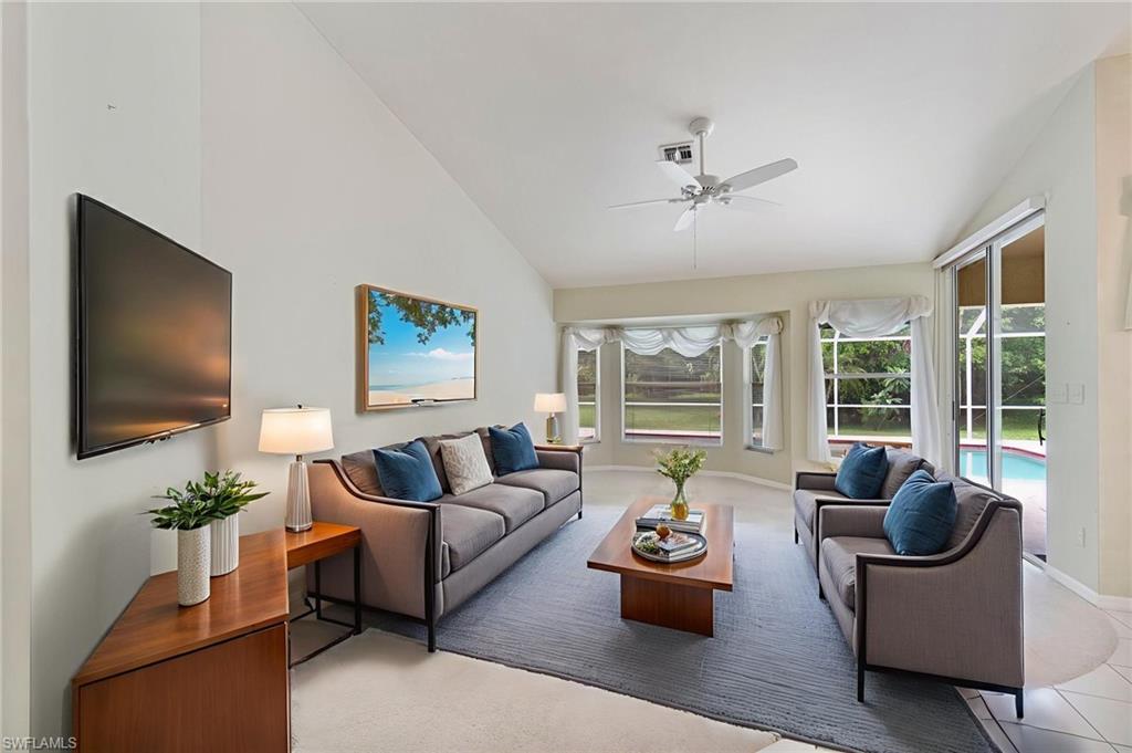 SPACIOUS POOL HOME IN BERKSHIRE LAKES - LOW HOA FEES & PRICED TO SELL! This charming 3-bedroom, 2-bath home in Berkshire Lakes offers a fantastic layout with 2,089 square feet of living space — one of the community’s larger floor plans! With just a touch of cosmetic updating and TLC, this is a fantastic opportunity to add value and own in the sought-after neighborhood of Berkshire Lakes. The kitchen features maple cabinetry and stainless steel appliances. Enjoy direct access to the screened lanai and saltwater pool from the master bedroom, formal living room, and family room—perfect for seamless indoor-outdoor living. The lanai area is generously sized, ideal for entertaining, relaxing, or enjoying the PRIVATE BACKYARD and lush landscaping. Additional highlights include manual storm shutters for peace of mind, plus the added security of being in a NO FLOOD ZONE! Located in Berkshire Lakes, a low-fee community with scenic walking paths, community pool, fishing pier, tennis courts, and a clubhouse. Just 6.5 miles to Naples' iconic 5th Avenue South and world-class beaches Walking distance to Berkshire Commons with Publix, Walgreens, dining, and more. This is a fantastic opportunity to own a well-cared-for pool home in one of Naples' most convenient and charming neighborhoods. Schedule your showing today! THIS PROPERTY QUALIFIES FOR A 1% LENDER INCENTIVE IF USING PREFERRED LENDER, INQUIRE FOR MORE DETAILS** Renderings in this listing have been virtually staged**