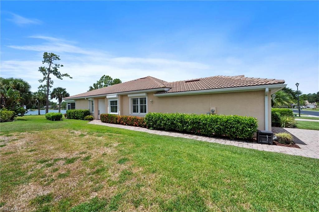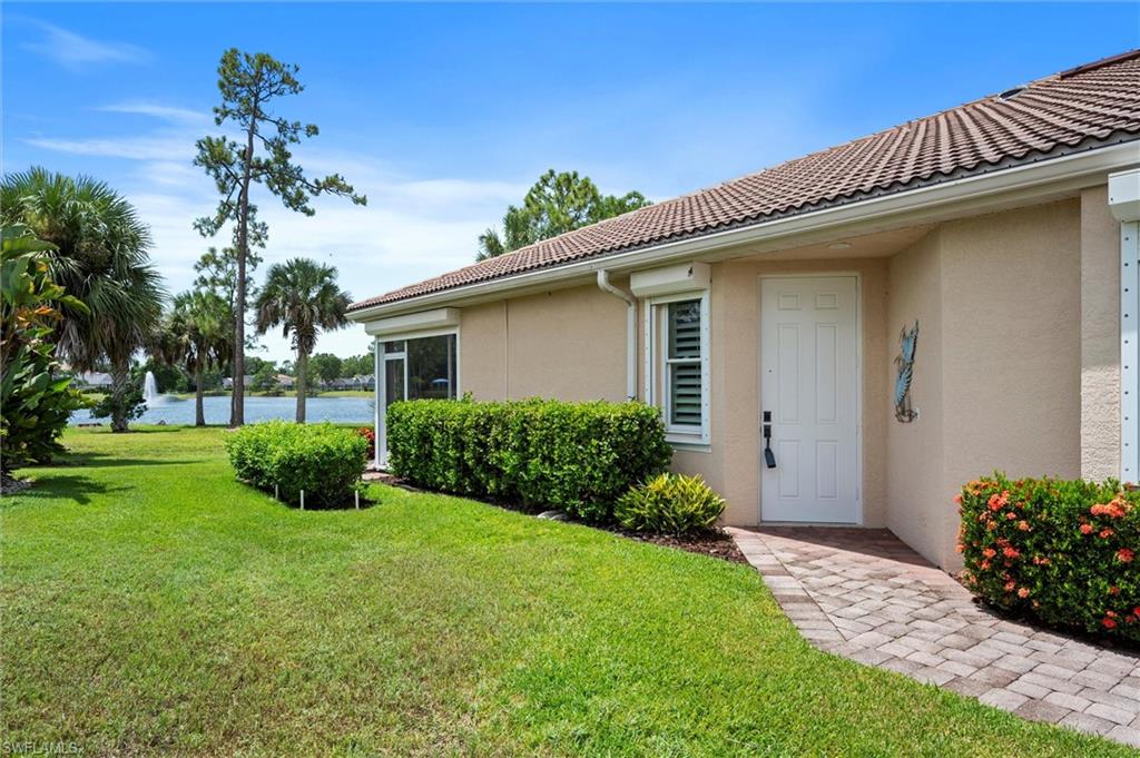 Priced to Sell! Discover This Stunning Lakefront Villa in The Shores. Nestled along a tranquil lake, the property offers serene water views that create a peaceful, inviting backdrop for everyday living. The bright, open floor plan allows natural light to flow throughout the home, enhancing its spacious and airy feel. This villa features two bedrooms plus a den that can easily be converted into a third bedroom, offering flexible space to suit your lifestyle. The updated kitchen is a true centerpiece, with crisp white cabinetry, granite countertops, white appliances, and a convenient walk-in pantry. Designed for both functionality and style, it is ideal for preparing meals, entertaining guests, or enjoying casual family dining. The adjacent living and dining areas are adorned with crown molding and chair rail accents, adding refined elegance throughout the home. The primary suite provides a private retreat with two generous walk-in closets and a spa-inspired bathroom, creating the perfect sanctuary for relaxation. Step outside to the extended lanai and enjoy peaceful lake views while entertaining, dining, or simply unwinding. In-home speakers may even be prewired for outdoor audio, enhancing the outdoor living experience. This home has been thoughtfully upgraded for comfort and peace of mind, including a nearly new AC system with a transferable ten-year warranty, a recently updated water heater, a four-year-old roof, and electric hurricane shutters. The two-car garage includes attic storage, providing practical and convenient space. The Shores is a highly sought-after community known for its beautifully maintained grounds, welcoming atmosphere, and resort-style amenities. Residents enjoy access to a clubhouse with a heated pool, as well as an HOA that includes Wi-Fi and internet service—all for approximately $320 per month. With low fees, abundant conveniences, and a prime Naples location, this home is ready to offer the perfect Florida lifestyle. Priced to sell, this villa invites you to imagine living in one of Naples’ most desirable lakefront communities. With its flexible layout, stunning lake views, and thoughtfully maintained features, it’s ready to become your dream home.