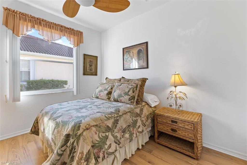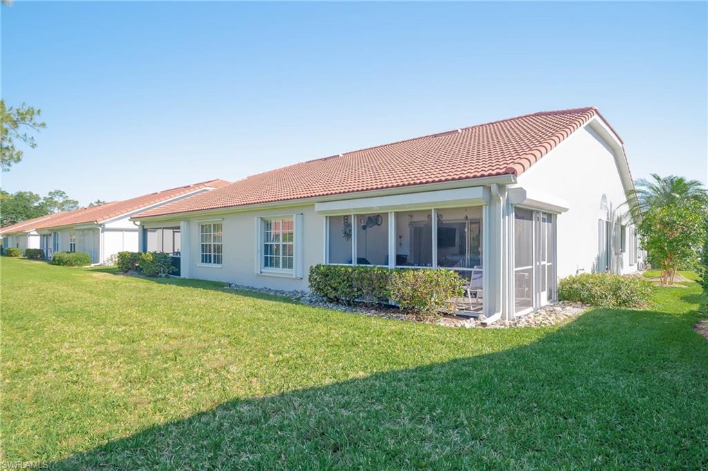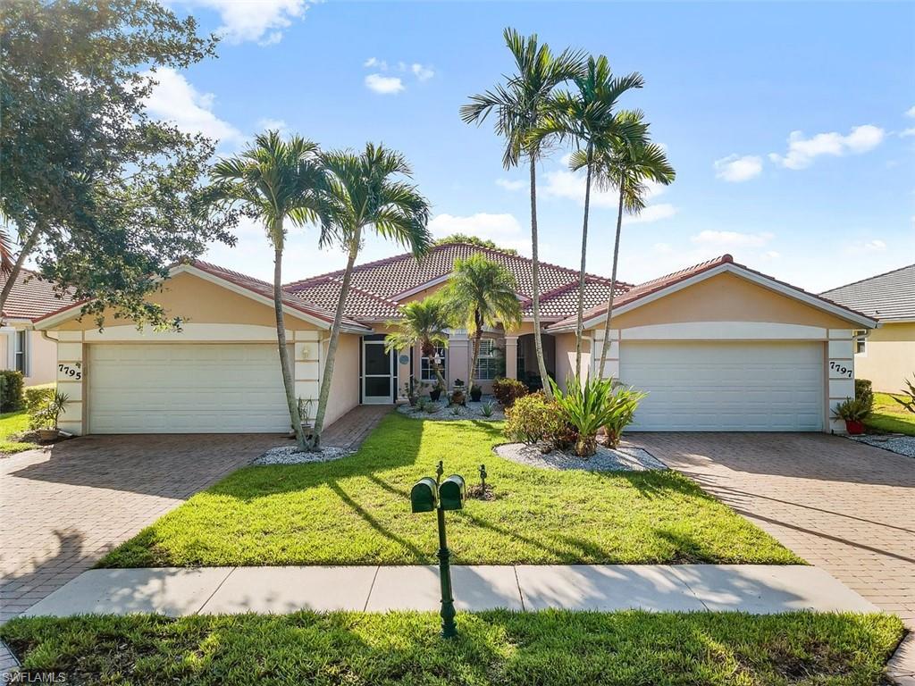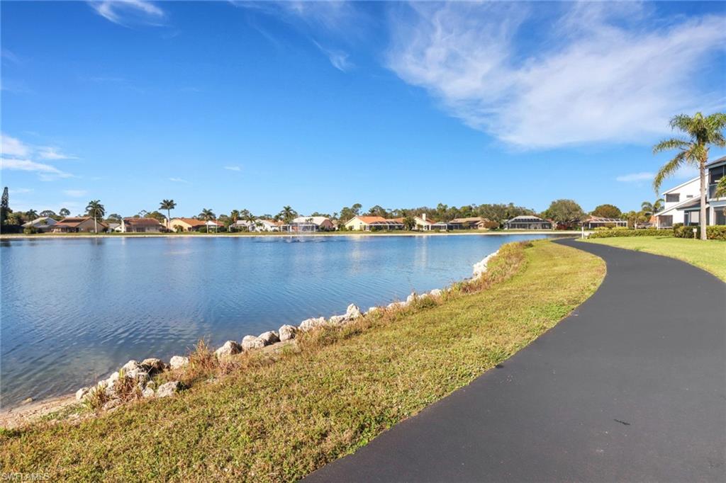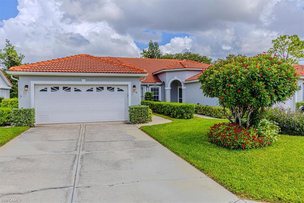 Seller motivated, bring your offer. Beautiful 3-Bedroom Villa with SPECTACULAR LAKE FRONT DREAM. Welcome to this stunning 3-bedroom, 2-bathroom villa with a 2-car garage, offering breathtaking lake views. This home has been scarcely lived in, maintaining its pristine condition. The living areas feature elegant tile flooring, while the bedrooms boast warm, laminated wood floors. Key updates include a new roof installed in November 2022. Enjoy the benefits of a low HOA fee of just $320 per month, covering lawn care, irrigation maintenance, WiFi, and exterior pest control. The community offers a gorgeous clubhouse with a plethora of amenities, including a large heated pool, exercise room with showers and lockers, tennis courts, pickleball courts, bocce court, library, game/card room, billiard room, and a children's play area. This villa comes fully furnished and is ready for you to move in. Within walking distance of this lovely home you'll find banks, restaurants, beauty salons, Walgreens, Starbucks, a carwash, gas station, Publix grocery store, and more. Naples beautiful 5th Avenue, known for its exquisite restaurants and luxury shops, is a short 15 minute drive as are the many beautiful Naples white sandy beaches, and very close to the I-75 entrance. Don't miss the opportunity to make this exceptional villa your new home!
