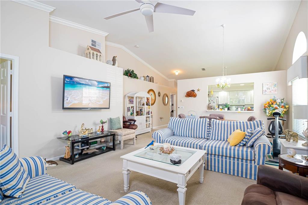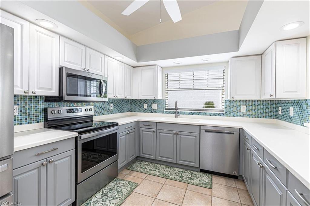 IMMACULATE first-floor condo offers a lifestyle of ease, comfort, and convenience. Whether you are sitting coffee on a bench surrounded by nature or enjoying a stroll through beautifully landscaped walkways overlooking the community lakes... serenity is just steps outside your door. Inside, you'll find a spotless, meticulously maintained home featuring vaulted ceilings that create a spacious and airy feel. The kitchen and both bathrooms have been thoughtfully upgraded, offering modern finishes and functionality. The large master suite includes a generous walk-in closet. The one-car attached covered garage offers elevated storage solutions perfect for maximizing space. Enjoy access to the clubhouse when you want to host a gathering. Enjoy the most beautiful pool in the entire community which is an oasis for relaxation. This home combines upscale comfort with an unbeatable location. It is ideal for year-round residents, seasonal visitors, or anyone looking to simplify and elevate their lifestyle in sunny Southwest Florida. Enjoy great shopping, beaches, and Publix nearby making it the perfect place to call home!