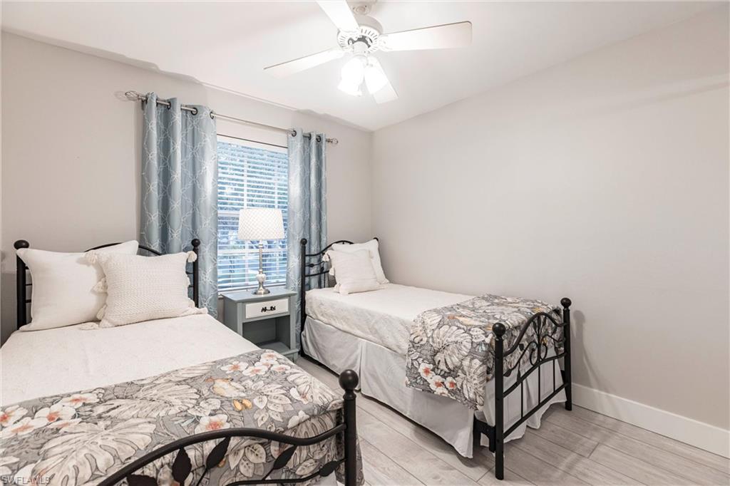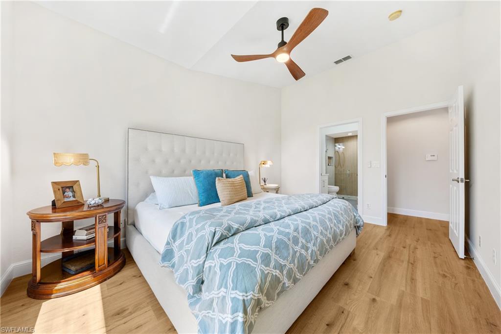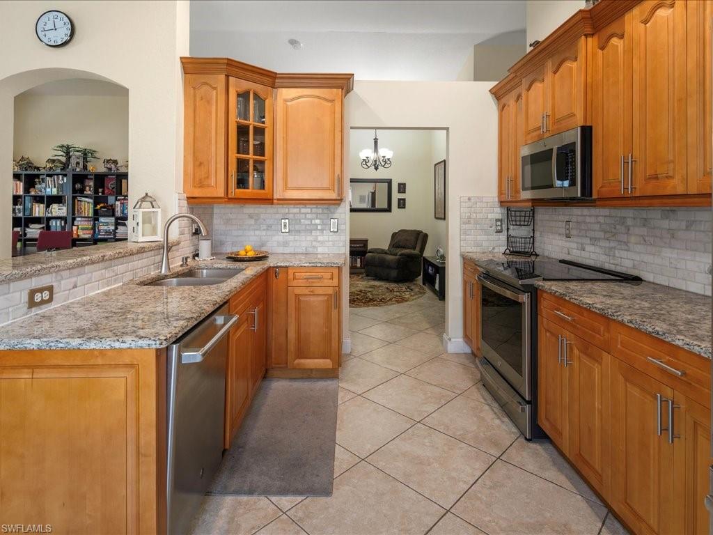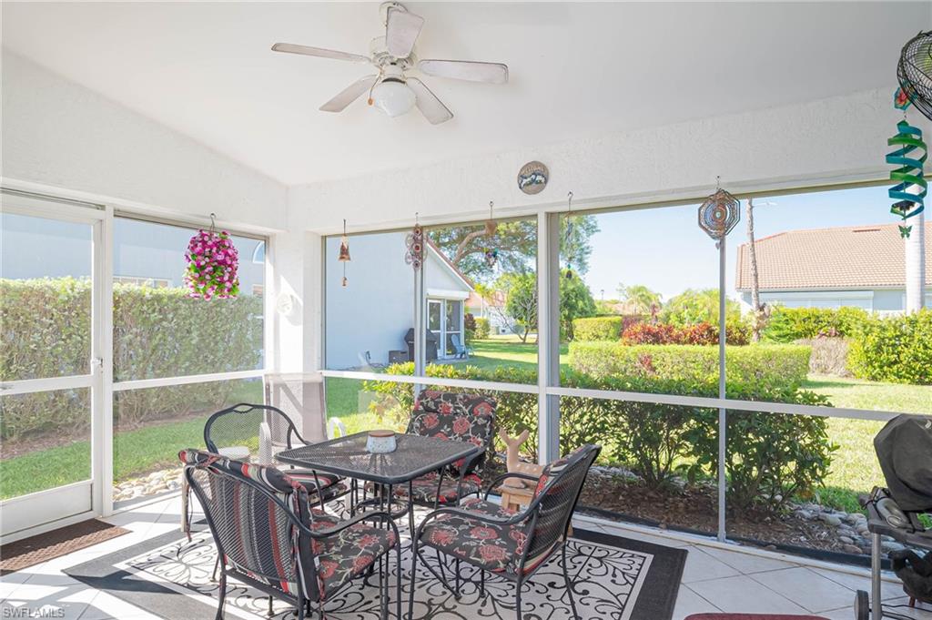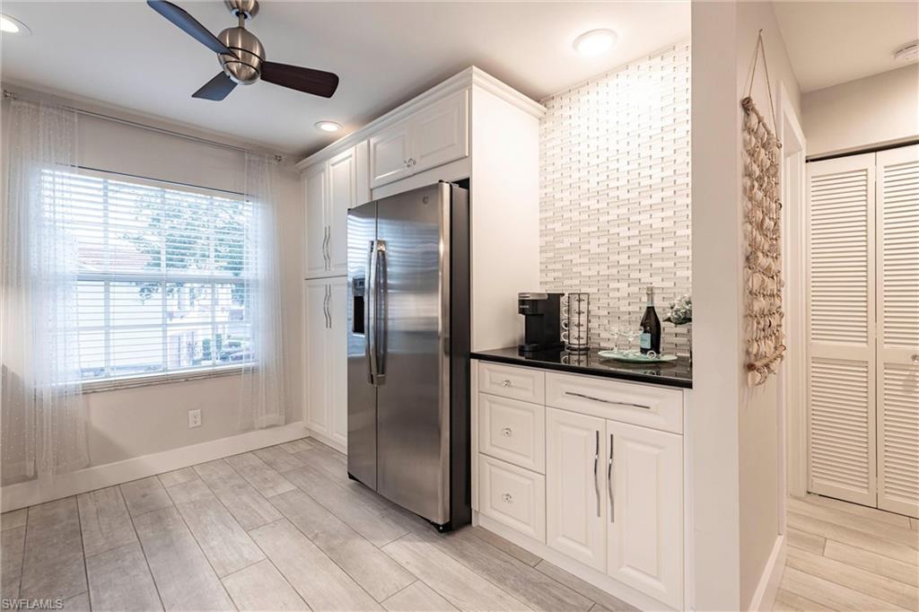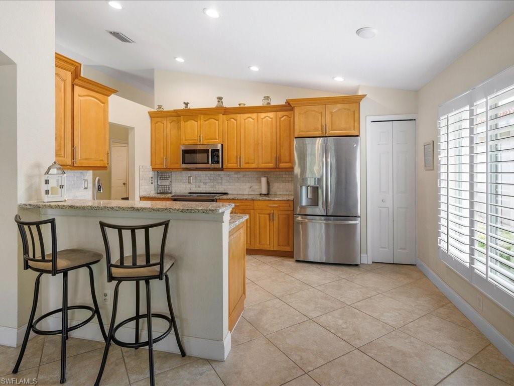 This top-floor, 3-bed, 2-bath coach home in Windsor Place at Berkshire Lakes offered turnkey furnished has been thoughtfully updated with designer touches, peaceful lake and fountain views, and the kind of quiet comfort only an upper-level unit can offer. With no neighbors above and volume ceilings throughout, this home is filled with natural light and an airy, open feel. Located at the front entry of the community with easy in-and-out access and additional guest parking just across the street, convenience is built right in. From the living room, lanai, and primary bedroom, you’ll enjoy serene western lake views and majestic sunsets—a true highlight of this special home. Inside, the home shines with a long list of upgrades, including Italian porcelain wood-style tile flooring throughout (2018), including the lanai, updated light fixtures, and fresh paint throughout. The split floor plan provides privacy for both bedrooms, and the primary suite boasts a large walk-in closet and an updated en-suite bath with dual sinks. The fully renovated kitchen (2018) boasts granite countertops, glass tile backsplash, soft-close cabinetry with pullouts, a custom pantry and garbage disposal (2020), and stainless steel GE appliances with a Bosch dishwasher. There’s also a coffee and wine bar for added convenience. The updated guest bathroom includes newer fixtures and toilets replaced in 2019. Essential improvements provide peace of mind, from the water tank (2018), washer/dryer set (2018), and new roof (2019) to the UV window film (2019) and A/C unit (2020). Other improvements include recessed lighting and a modern ceiling fan (2021). The attached 1-car extended garage includes extra cabinet storage and ample guest parking is located nearby. Beyond the home itself, Windsor Place offers a truly appealing lifestyle. You’re just steps from the community pool, yet tucked away for peaceful living, along with your choice to play tennis or pickleball. One of the most beloved features of this community is its network of walking paths around several large, picturesque lakes—perfect for morning jogs, evening strolls, or walking your dog. The location is ideal—just a short walk or bike ride to Publix, dining, a fitness center, bank, fast food, and more, with quick access to I-75, Marco Island, and downtown Naples. You’re also less than 7 miles from the world-renowned white sand Gulf beaches. Whether you're seeking a full-time residence or a seasonal escape, this move-in ready condo blends comfort and convenience in one exceptional Naples package.
