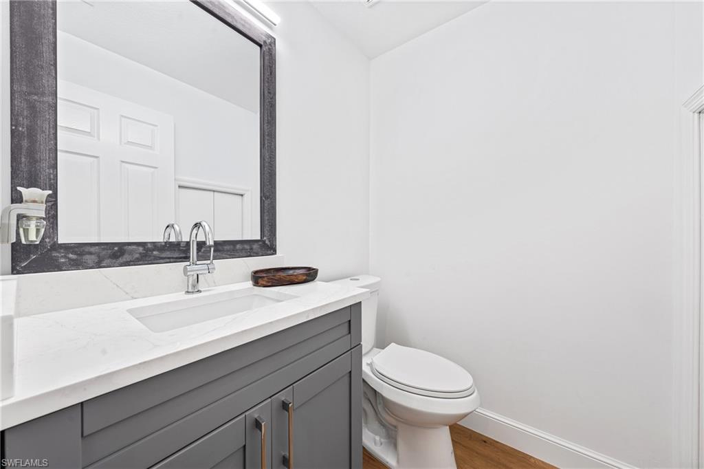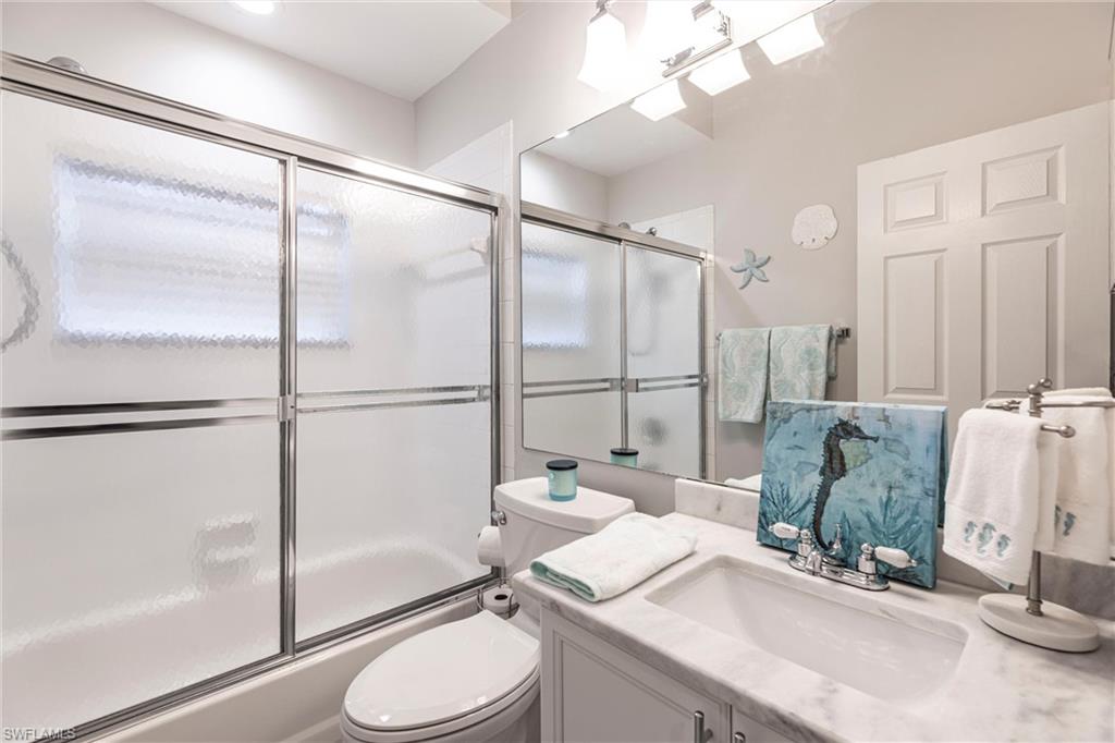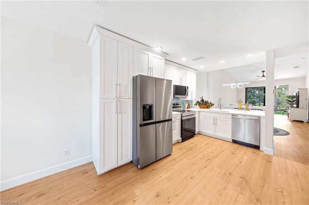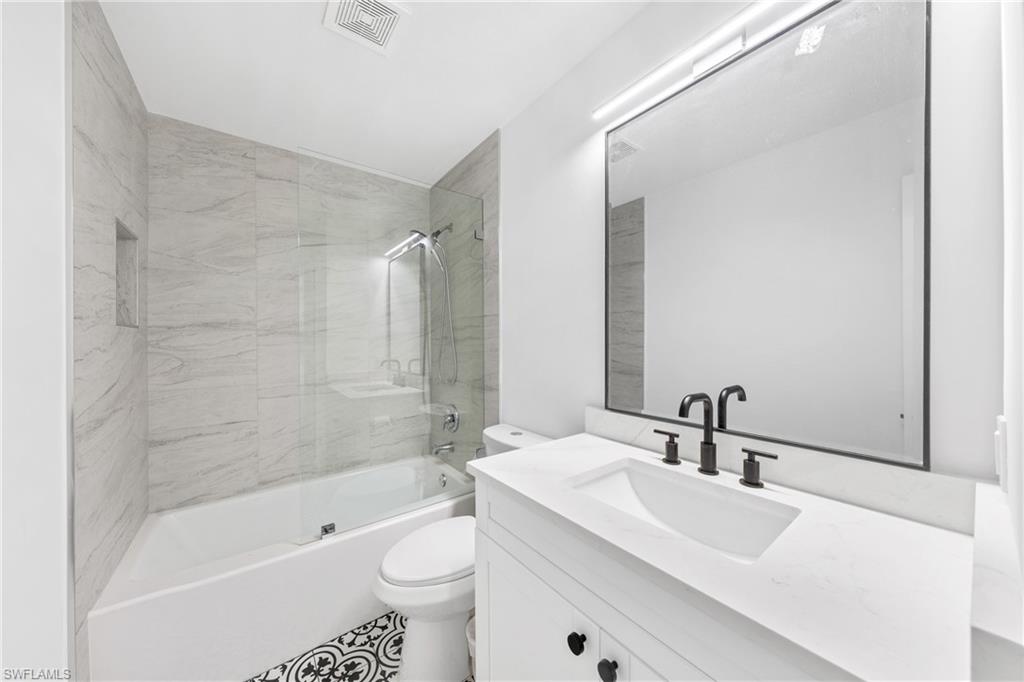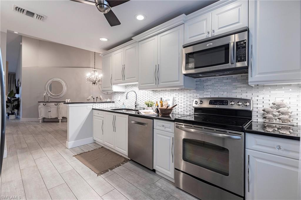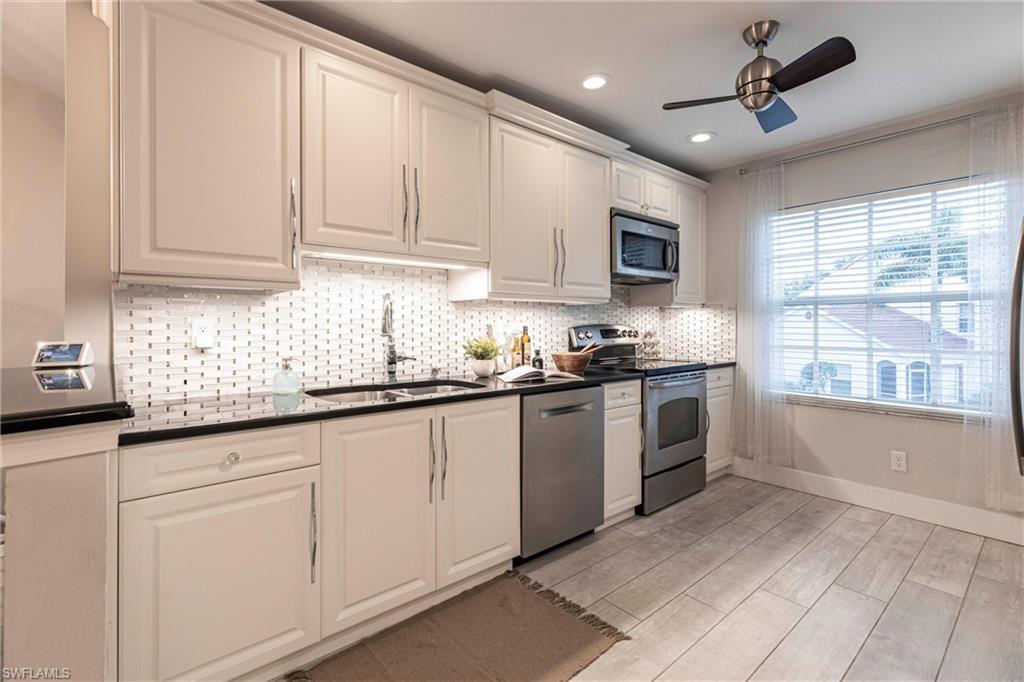 We introduce 7745 WOODBROOK CIR #3702 to you! This stunning and recently renovated 3 bedroom and 2.5 bath 2-story townhome in the Preserve at the Shores of Berkshire Lakes, a gated community in Naples! This very special unit was renovated from top to bottom and with brand new luxury engineered laminate and tile flooring (in the bathrooms) throughout, fans, and renovated bathrooms! From the enclosed entryway, leave the front and back doors open to allow that beautiful cross breeze in! From the entryway, enjoy the updated kitchen complete with quartz counters, stainless steel appliances, a contrasting and stunning backsplash, large sink, pantry, and tons of storage. Past the kitchens breakfast bar, your dining and living area open up to a vaulted ceiling allowing TONS of natural light. Your enclosed lanai is a treat with privacy and views of beautiful Florida flora and fauna. The master suite, located on the first floor, is your retreat with dual sink, walk-in closet, and luxury shower with built in shelving. Your out of town guests will feel right at home upstairs with 2 additional bedrooms and full bath. Each guest bedroom is large with plentiful closet space and natural light. Peace of mind is enhanced with your one car attached garage, laundry in residence, impact resistant windows, manual storm shutters, fresh paint job, a 2022 roof, and close proximity to fantastic A+ schools! This location at enjoys close proximity to Santa Barbara Blvd, allowing for quick and easy access to I-75, Davis, & Radio Rd with a short 15 minute drive to Lowdermilk Beach and famed downtown Naples!