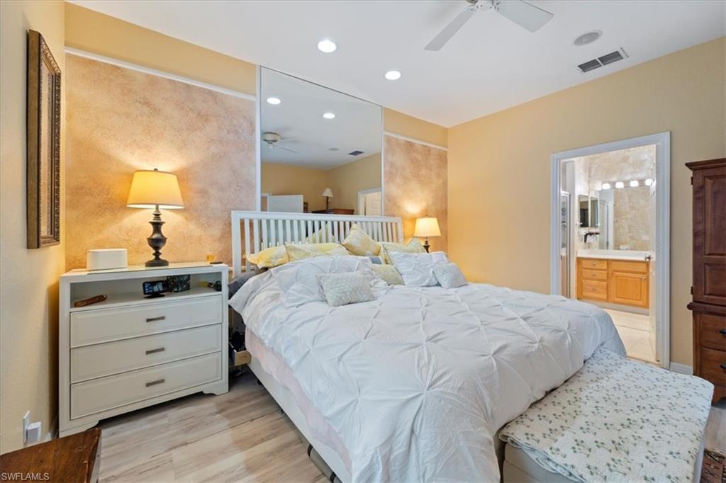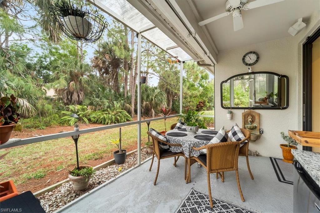 Welcome to Newcastle at the renowned Berkshire Lakes, in the heart of Naples! This inviting 2-bedroom, 2-bathroom condo offers 1300 square feet of comfortable living space, perfectly designed for modern convenience and leisure. Step inside to find a bright and spacious first-floor unit adorned with elegant tile floors in the living areas and newly added quality laminate floors in the bedrooms. The eat-in kitchen features sleek stainless steel appliances, granite countertops, and custom wood cabinetry, making meal preparation and entertaining a delight. The bathrooms have been fully renovated, featuring granite countertops and a luxurious glass shower in the master bathroom, adding a touch of elegance and modernity to your daily routine. Relax on the screened lanai with expansive green space views, providing unparalleled privacy, or take a dip in the community pool. This home is fully hurricane-proof, boasting shutters throughout and a large electric shutter on the lanai, ensuring peace of mind during stormy weather. Recently repiped with PEX piping and a new A/C unit, this condo is move-in ready and low-maintenance. Berkshire Lakes offers a wealth of amenities, including tennis, plus pickleball courts and common outdoor spaces, including a fishing pier, ideal for socializing or unwinding. With guest parking and a designated owner spot right at your doorstep, convenience is paramount. Located near pristine beaches, vibrant shopping, exquisite dining options, and more, this property is not only an idyllic seasonal home but also an attractive investment opportunity for rental income. Experience the allure of Naples living in this charming community today!