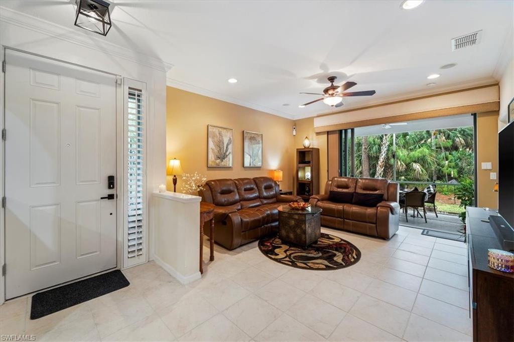 2/2+DEN! - *Location* *Lifestyle* *Convenience* *Price* *What More Can You Ask For @ $332,700* If you’re looking for that carefree Florida lifestyle at an incredible value, look no further! Amazing ranch style villa, with end unit location, nestled in The Preserves, at The Shores of Berkshire Lakes. This exceptionally well maintained villa features two spacious bedrooms and large guest room/den, which can be easily converted to a legal third bedroom, building immediate value to the property. From the moment you walk in, you’ll get a calming feeling from the coastal color pallet, volume 9ft. plus ceilings and beautiful 6” crown molding thru-out all the main areas. Great open floor plan with lots of sunlight and serene views of a private wooded area that offers plenty of privacy. Step through the large, impact glass pocket doors, and enjoy the spacious, 13 x 9 screened-in lanai where you can enjoy your morning coffee while bird watching. Patio doors feature full size, sliding Bahama shutters and additional roll down shade. Nice size, separate dining area large enough for the whole family and special guests, that opens to a spacious living room area and easy access to a user friendly kitchen. Within the last year, kitchen was equipped with ALL NEW Stainless Steel Appliances. Bay style kitchen window allows loads of sunlight and a custom bench area to sit or grow your favorite herbs. Master Suite has lovely wooded views, porcelain plank flooring, Walk-in closet. Large master bath with two separate vanities, large soaker tub and glass entry shower, that is spacious, with plenty of elbow room. Nice size second bedroom with large closet space, big enough to absorb that other needed closet to the den, so you can convert it to a true third bedroom. Convenient second full bath located in bedroom hallway, along with handy linen closet. Laundry room has wall mounted upper cabinetry, washer and dryer and easy access to the attached one car garage. Garage has a lot of wall mounted cabinets and shelving for extra storage with a nice utility closet. Within the last 3 years, the unit was fitted with all new hurricane windows, doors, new tile roof, fresh exterior paint and lighting, New complete HVAC system in 2019 and new kitchen appliances less than a year old. The Shores features a resort-style pool with large pool deck and seating. Nicely equipped fitness center, bocce, playground, clubhouse, library, billiards, tennis and did I mention “Pet-Friendly”. All within walking distance, you'll find Publix, Aldi, Athletica Gym, Walgreens, restaurants, bus stop and many other amenities. Easy commute to any location in Naples with easy access to I-75. *Note: Some furnishings in pictures have been removed by Seller. . . Don’t Delay! Move-In Condition & Ready for Offers! Agent Related