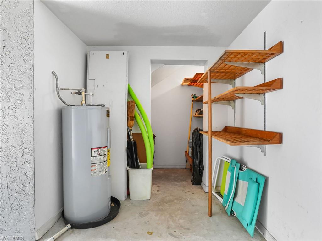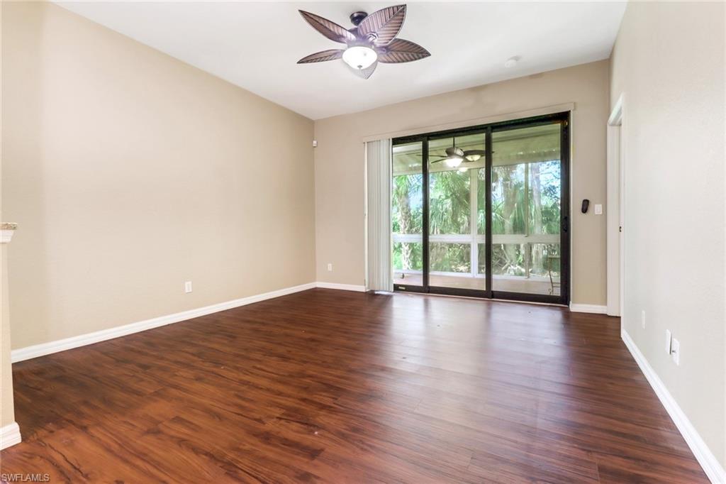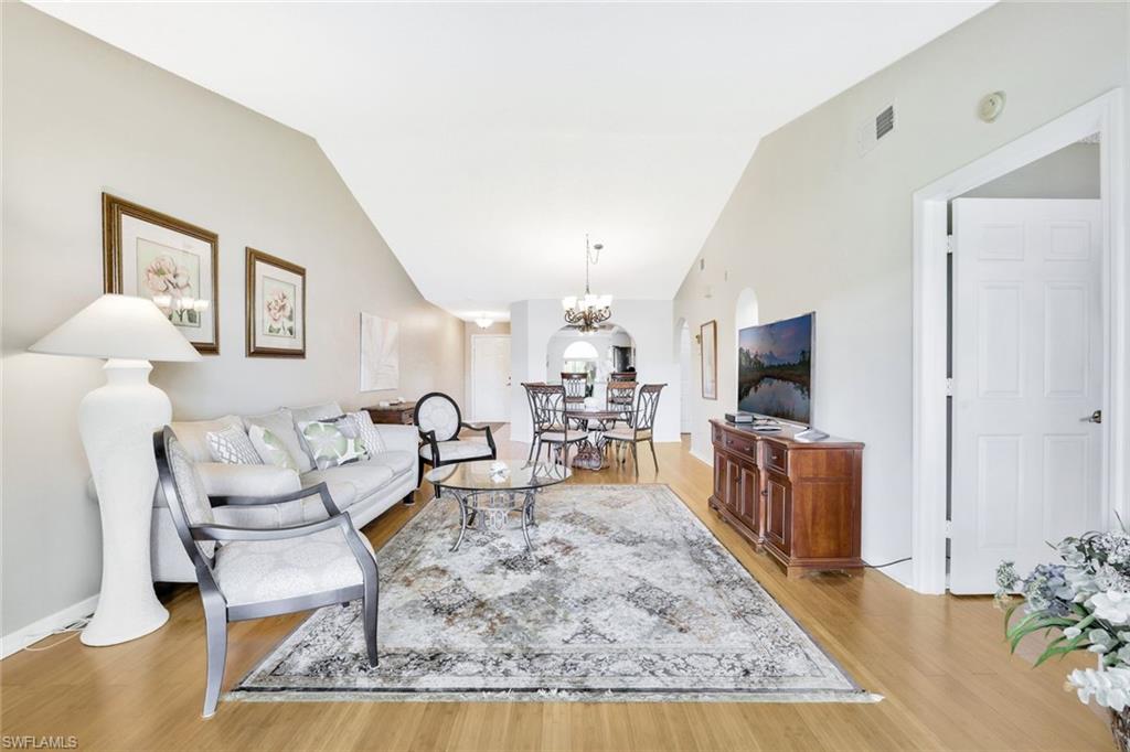 Discover the perfect blend of comfort and convenience in this meticulously maintained second-story coach home, offering the expansive space you've been searching for. Boasting 3 full bedrooms and 2 baths, this bright and airy open floor plan immediately impresses with soaring cathedral ceilings that create an inviting atmosphere. Freshly painted throughout and featuring brand new luxury vinyl plank wood flooring, this home offers immediate move-in readiness. The generous owner's retreat provides a private oasis, complete with a large walk-in closet and an en-suite bathroom featuring new flooring and a coastal-inspired 60" vanity. The kitchen boosts stainless appliances and opens to a charming breakfast dining area. A more formal dining space awaits those special occasions or converts to a cozy sitting area or functional workspace. A thoughtful split-floor plan ensures privacy for bedrooms 2 and 3, both offering ample storage. The second bathroom has also been updated with a new vanity, mirror and lighting. Step outside to your private screened lanai and enjoy quiet moments overlooking lush, park-like landscaping. This fantastic condo also includes in-unit laundry, an extra-deep, attached one-car garage and boasts a prime location with close proximity to the Coach Homes clubhouse and sun-filled pool. The sought-after community of Berkshire Lakes offers an exceptional lifestyle with superb amenities including multiple pools, clubhouses, tennis courts, pickleball, a fishing pier, and picturesque lakefront walking/jogging paths. Enjoy the convenience of being just a half mile to the Berkshire Commons Shopping Center and less than 20 minutes to the spectacular beaches of Naples. Don't miss this incredible opportunity to embrace the best of Southwest Florida living! Some photos in this listing have been virtually rendered.