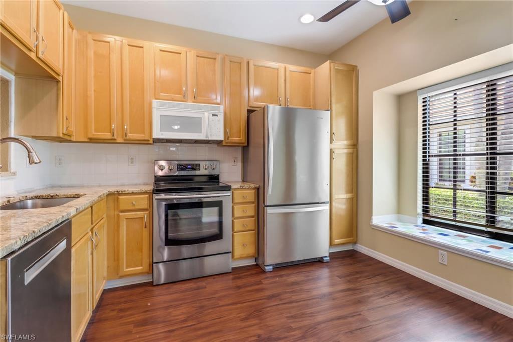 Step into a condo that feels instantly like home — airy, modern, and beautifully updated. This spacious, light-filled two-bedroom, two-bath retreat in the highly desirable Colonies at Berkshire Lakes strikes that perfect balance between comfort and style, all just steps from the swimming pool. Inside, you’re welcomed by an open living space, with fresh LVT flooring flowing seamlessly throughout. The split-bedroom design gives everyone the privacy they want, while the primary suite features a generous walk-in closet. The completely renovated kitchen is a showstopper — sleek quartz countertops, stainless appliances, recessed lighting, and a breakfast bar that makes mornings feel effortless. Slide open the doors to your screened lanai and relax in total tranquility enjoying a direct view of the pool and surrounded by the quiet beauty of this beautifully maintained community. Living in The Colonies means tapping into a lifestyle people move to Naples for: two sparkling pools, tennis and pickleball courts, a community pool and a lakeside walking trail where you can catch the sunset night after night. There’s even a scenic pier overlooking the lake — the perfect spot to unwind or take in the view. And the location? Truly unbeatable. You’re just minutes from Naples’ famous dining and shopping, pristine white-sand beaches, Publix, gyms, medical offices, and the best of everyday conveniences. This is where easy living meets true Naples charm. Don’t miss this great opportunity today!!