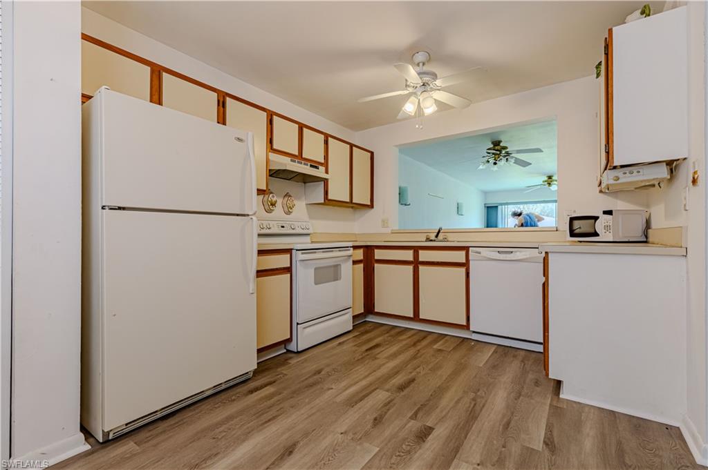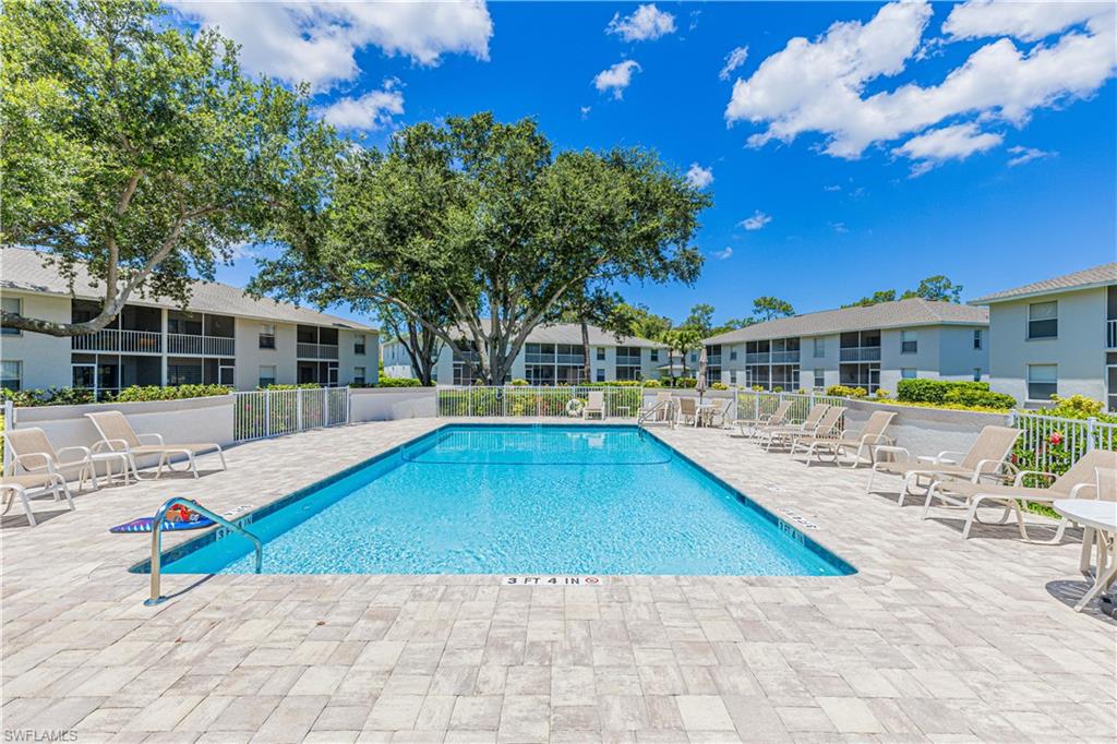 Unlock the door to your dream home with the power of a potential mortgage rate buy down. Nestled amidst the serene beauty of Naples, just minutes away from our white sandy beaches and world-class shopping, Canterbury Village offers a tranquil oasis for those seeking the perfect blend of luxury and convenience. With new floors and vanities, this 2-bedroom, 2-bathroom condo is an ideal retreat for discerning residents. As you step inside, you're greeted by an inviting atmosphere accentuated by an abundance of natural light. The spacious living area provides ample room for relaxation and entertainment. The adjoining kitchen hosts a breakfast area making this an ideal space for culinary enthusiasts and casual diners alike. The master suite is a sanctuary of comfort, featuring a generously sized bedroom, a walk-in closet, and an en-suite bathroom. The second bedroom offers versatility and can serve as a guest room, home office, or cozy den, adapting effortlessly to your lifestyle needs. Outside, a private patio beckons you to unwind amidst the lush surroundings, providing the perfect spot to savor your morning coffee or bask in the gentle Florida breeze. Canterbury Village presents an array of amenities designed to enhance your living experience, including a sparkling swimming pool and meticulously landscaped grounds. This prime location affords easy access to the vibrant cultural scene, upscale shopping destinations, and pristine beaches that define Naples living.