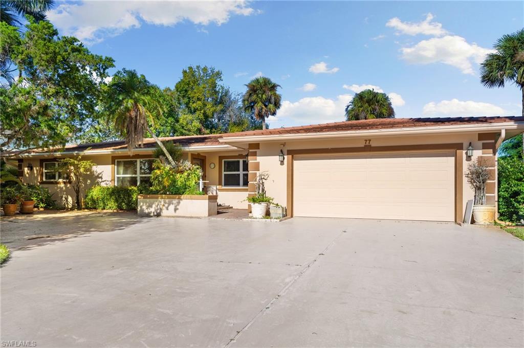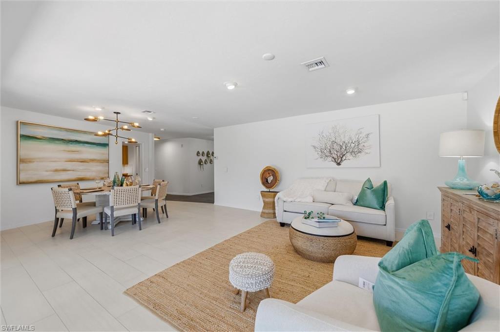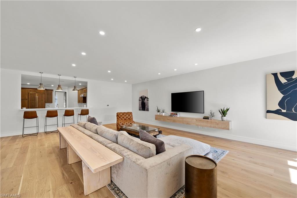 Positioned on one of the most desirable oversized corner lots in Big Cypress Golf and Country Club Community, this updated 3-bedroom, 2-bath pool home offers an exceptional combination of privacy, location, and value in the heart of Naples. Set back from the street with its own private driveway—one of only a few homes in the community with this distinction—the property enjoys a quiet setting, mature landscape design, and open golf course views rarely available in this neighborhood. The interior layout includes formal living and dining areas overlooking the screened pool and lanai, a redesigned kitchen with quartz countertops, custom cabinetry, and high-end stainless steel appliances, plus a comfortable family room. One bedroom functions perfectly as a home office or flex space, ideal for today’s lifestyle. Recent improvements include remodeled bathrooms, upgraded lighting and electrical, impact-resistant windows, a newer roof, and a spacious laundry and pantry area. The large screened lanai—partially covered for outdoor dining and relaxation—creates a private retreat surrounded by lush greenery and long golf course views. Located just around the corner from The Country Club of Naples, Vanderbilt Beach and minutes to downtown. Surrounded by high-end new construction, this property stands out for its privacy, quality, and central Naples address with an optional HOA. Homes with this combination of lot position, design, and condition are rarely available—schedule your private showing today. Professionally staged by K & A Coastal Design—furnishings are available for purchase for a truly turnkey experience.