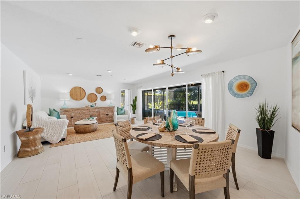 This charming home is centrally located in the much sought after neighborhood of Big Cypress. Nestled between the Country Club of Naples and Royal Poinciana Golf Club, this beautifully maintained and updated 3-bedroom home welcomes your viewing. The large great room opens onto a sizeable, light and bright Florida room overlooking a lushly landscaped, fully fenced private backyard with large, heated pool and expansive decking. This inviting setting allows for easy entertaining or simply for your own personal enjoyment. The primary suite is separate from the guest bedroom and 3rd bedroom/ den for ultimate privacy. Newly designed and updated, the kitchen is spacious and centrally located for an easy lifestyle. Old Naples charm abounds as you enter this newly furnished residence with many fine finished details. With its prime location just minutes from Naples' renowned beaches, the Waterside Shops, and Venetian Village, this residence presents an exceptional opportunity to enjoy both a serene lifestyle and convenient access to all the best Naples has to offer.