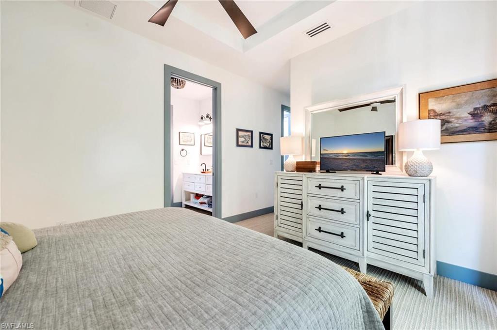 Experience luxury living in this brand-new, fully furnished home in the desirable Big Cypress Golf & Country Club — a centrally located, rapidly growing neighborhood in the heart of Naples. Built by Borelli Construction of Naples, a respected third-generation family builder, and designed and furnished by Studio Sea Bee, this residence offers timeless style and modern comfort with sweeping western golf course views and sunsets that fill the home with golden light. The thoughtful floor plan features four private en-suite bedrooms, each positioned for comfort and privacy, plus a three-car garage. The open great room design is ideal for entertaining, with a wet bar, large walk-in pantry, and dining area that flows seamlessly to the expansive covered lanai equipped with electric screens and hurricane shutters. Outside, enjoy a 45-foot heated pool with sun shelf and spa, perfectly oriented for afternoon sun and glowing evening skies. The primary suite showcases serene golf course views, dual custom closets, and a luxurious spa-like bath. Throughout the home, every detail has been meticulously crafted — white oak flooring, LED recessed lighting, designer fixtures, Wolf and Sub-Zero appliances, custom trim and millwork, and built-in Sonos speakers for whole-home sound. Additional features include a whole-house generator with a 1,000-gallon underground propane tank, hardwired automated window shades, and custom closet systems throughout. Enjoy modern luxury and relaxed golf course living in one of Naples’ most convenient locations — just minutes from beaches, dining, and shopping.