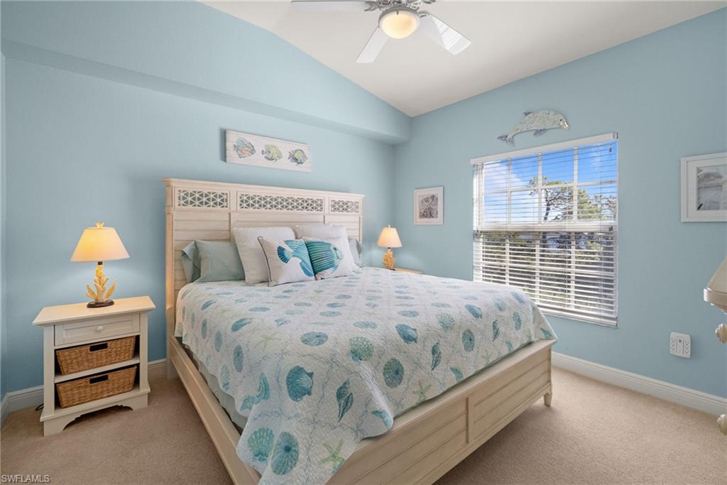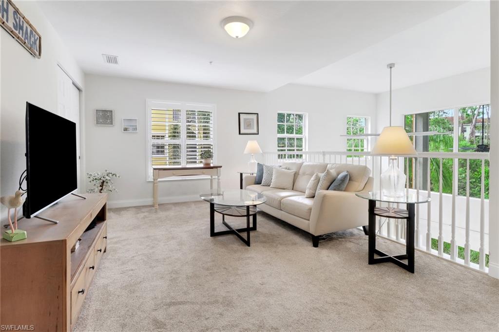 Immaculate, fully remodeled, and ready for immediate occupancy — this stunning end-unit two-story condo combines privacy, elegance, and an unbeatable Naples location. Step inside to soaring ceilings that fill the family and dining rooms with natural light through a dramatic picture window. The open layout is enhanced by attractive neutral tile, fresh paint, and plantation shutters throughout. The kitchen is beautifully updated with newer stainless steel appliances and granite counters that continue into both bathrooms for a seamless, designer look. The spacious primary suite is conveniently located on the first floor, while upstairs you’ll find a large loft that’s ideal as a media room, office, gym, or play area. Every bedroom is generously sized and can accommodate a king-size bed. Enjoy peaceful preserve views from the screened lanai, perfect for outdoor dining or relaxing, with a convenient door for pet walks. Additional features include a laundry room with built-in cabinetry and a detached one-car garage. The community offers a clubhouse with fitness center and social room, plus a beautiful pool and hot tub located right next to the building. You’ll love the location — just a short walk to the Naples Botanical Garden and the USOP National Pickleball Center, and only minutes to Tin City, 5th Avenue South, and Naples’ gorgeous beaches. This immaculate condo truly has it all — space, style, and a prime Naples lifestyle.