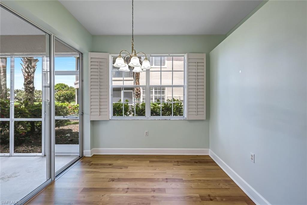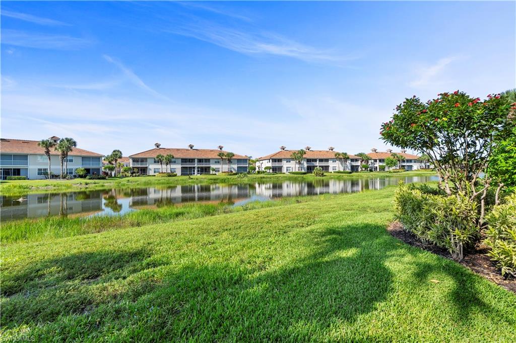 WELCOME TO RARELY AVAILABLE!!!!!!! AND NOW REDUCED!!!!!!With an outstanding lake view, and only steps to the massive Bridgewater Bay clubhouse, this first floor unit is waiting for the most discriminating of buyers. Spacious and free flowing, this 3 bedroom 2 ½ bath retreat is light and bright and has a huge 33-foot wrap around lanai. The eat in kitchen features not only a pantry, but many spacious pecan color cabinets accented by the Corian countertops, with white and stainless-steel appliances. Stunning plank flooring throughout, bathrooms are tile and the bedrooms are carpeted. The very private Master Suite has 2 large closets, and an ensuite bath with tub, shower, and double sinks. The bedroom area itself features plantation shutters, as does the rest of this home, creating cozy privacy to relax at the end of your day. Mango Bay is located on a cul-de-sac street with very little traffic. Bridgewater Bay is located just off Orange Blossom in North Naples, with convenient access to Mercato and Naples world class beaches. Bridgewater Bay offers pickleball, tennis, bocce ball, and many social events. A lively community you will not want to skip! This is a Spectacular Condo, and it can be yours for the asking!!!