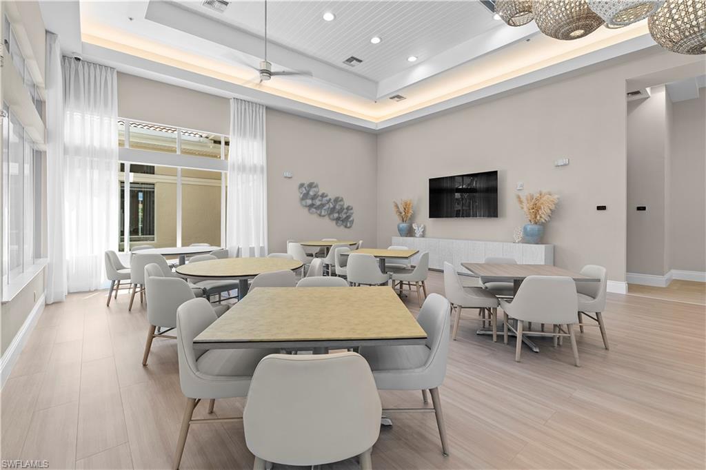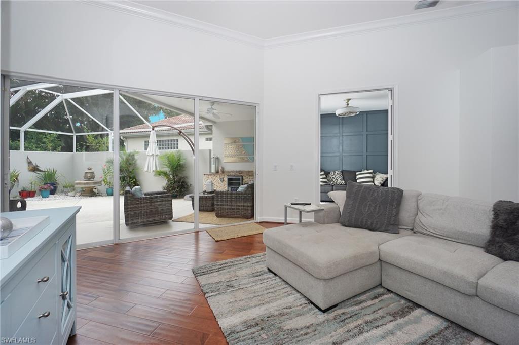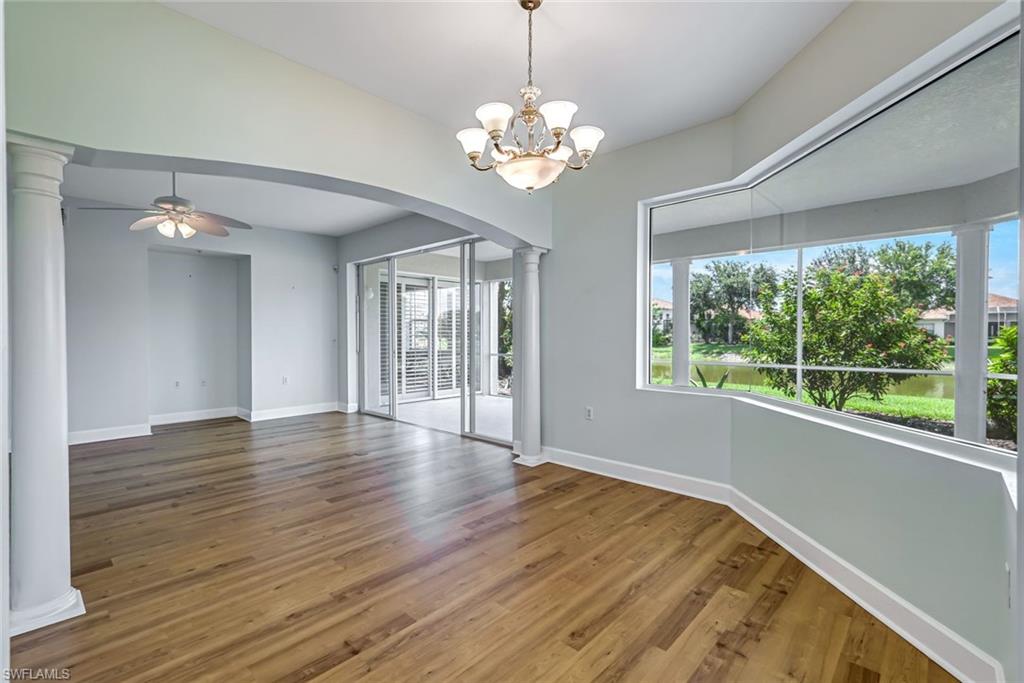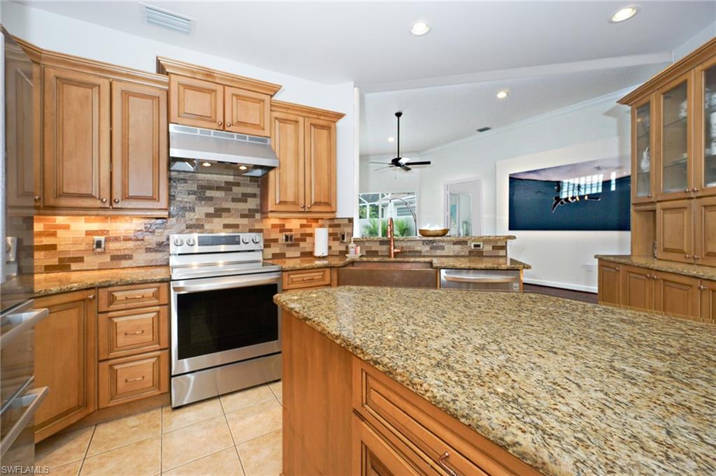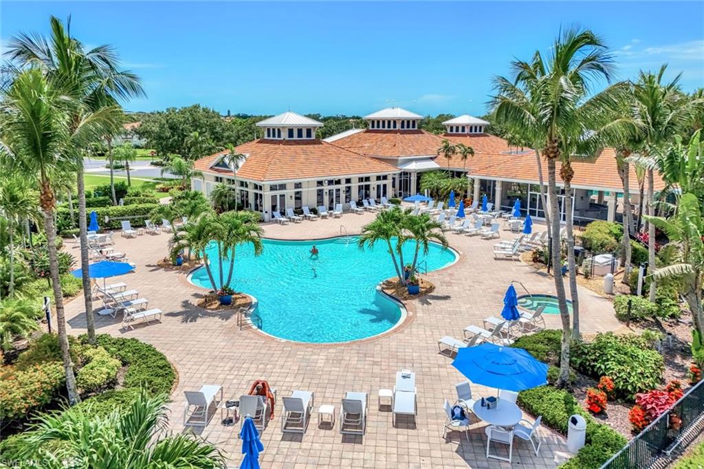 This impeccably updated and rarely available single-family pool home on a private corner lot awaits in the heart of North Naples’ highly sought-after Bridgewater Bay. Showcasing soaring 14 ft. tray ceilings, this light-filled residence impresses with plantation shutters throughout and an open-concept layout that flows effortlessly from the spacious living area—accented by an oversized designer fan—to the dining room and kitchen. The chef-inspired kitchen gleams with 2022 stainless KitchenAid appliances, white cabinetry, granite countertops, and a glass-tile backsplash. With thoughtful upgrades such as a tile roof (2021), luxury vinyl plank flooring in living areas (2022), modern lighting throughout (2022), a full exterior repaint (2022), and a new A/C system (2022), this home offers style and substance in equal measure. The laundry room is equipped with built-in cabinetry, a utility sink, and LG front-load washer/dryer for convenience. Unwind in your heated pool and spa, surrounded by mature tropical landscaping—towering palms, lush oaks, and vibrant greenery. The 2.5-car side-loading garage with an extended paver driveway adds curb appeal and ample space for vehicles or storage. Additional peace of mind includes a security system and hardwired Ring floodlight cameras and doorbell (2022). Located in Flood Zone X so no flood insurance is required, this home never lost power or sustained damage during Hurricane Ian. Bridgewater Bay is a resort-style gated community offering unmatched amenities, featuring two pools (resort-style and lap), tennis, pickleball, bocce, and basketball courts, a clubhouse with fitness center and social calendar, a playground, and tranquil lakes. Two convenient access points on Orange Blossom Drive and Livingston Road provide effortless connectivity. Perfectly positioned just 3 miles to Naples beaches, 2 miles to Mercato, and close to I-75, this home combines location, lifestyle, and luxury in one perfect package.