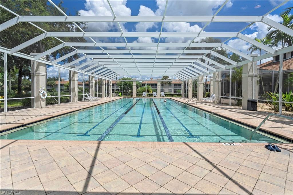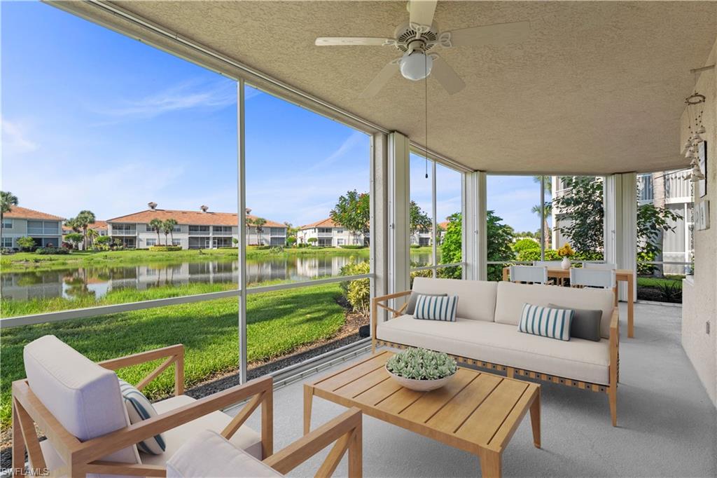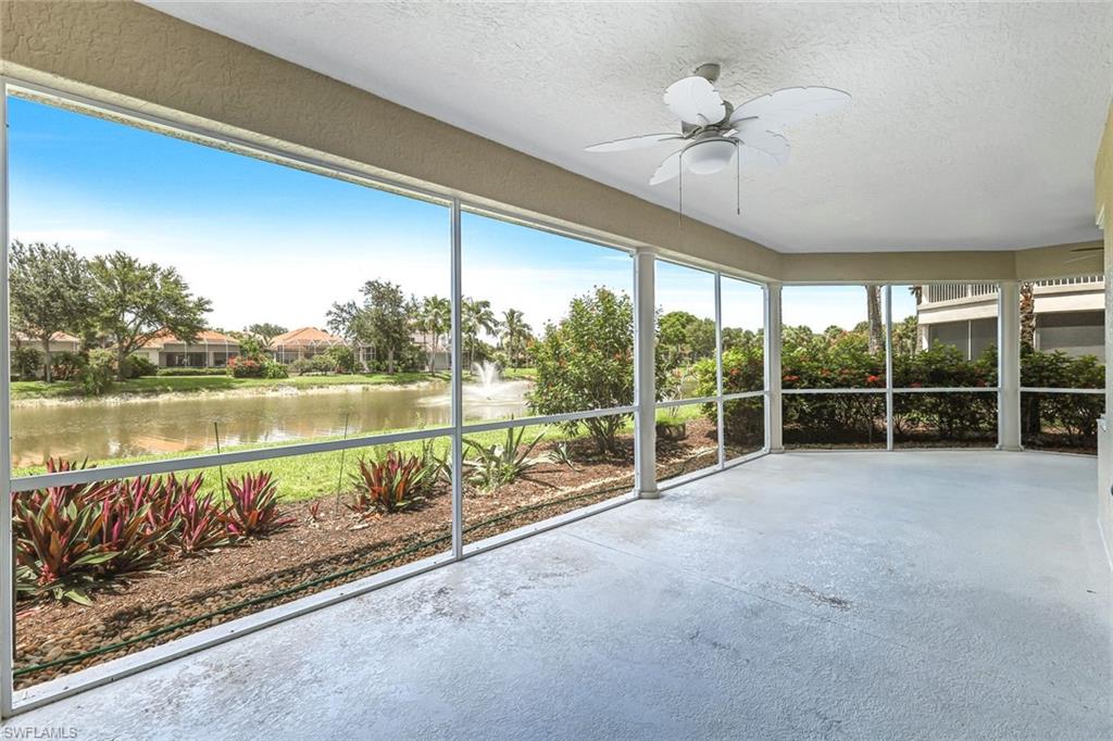 Forget all those run-of-the-mill, cookie cutter condos! This bright and spacious home features a unique 33 foot, screened-in, wrap-around lanai! Enjoy your morning coffee with a peaceful lake and fountain view, and in the warmth of the southeast sun! With 1767 sq. ft. under air, this rarely available 1st floor coach unit features 3 bedrooms, 2 ½ bathrooms, and a 2-car garage. The kitchen is nicely updated with quartz counter tops, large sink, attractive backsplash and newer appliances. Bridgewater Bay is an amenity-rich community with a beautiful clubhouse, resort-style pool, spa, separate lap pool, tennis, pickleball, bocce, fitness room, sauna and more! Neighbors will easily become lifetime friends as they share a full calendar of social events each season. The North Naples location, well west of I-75, is ideal for easy access to a multitude of restaurants, world-class shopping and the beautiful Naples beaches! Schedule your private tour today and experience the unique charm of this exceptional condo!