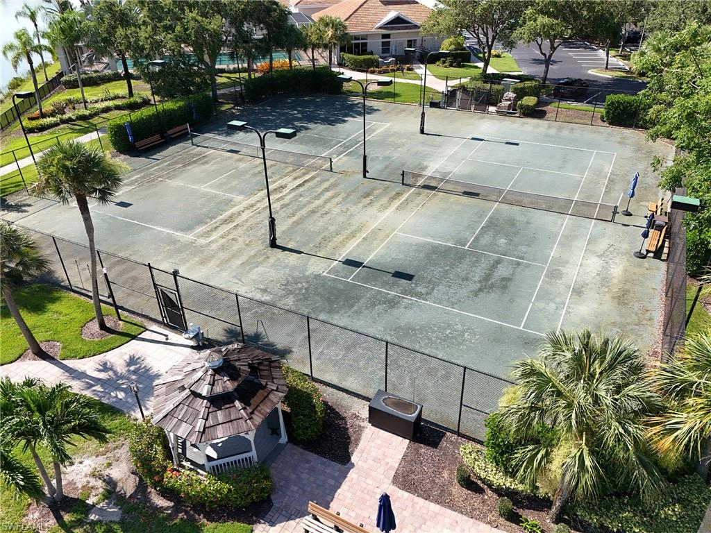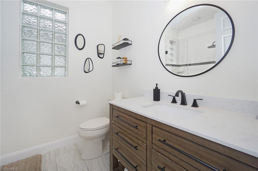 Welcome to this beautifully renovated courtyard-style home in the highly sought-after community of Bridgwater Bay. Located in North Naples, this spacious residence offers 3 bedrooms, 3 bathrooms in the main house, plus a 1-bedroom, 1-bathroom casita – perfect for guests, a home office, or extra privacy. Step outside into the inviting courtyard, complete with a solar heated pool, offering the perfect space for relaxing or entertaining. The rear patio that extends the length of the home, where you can unwind while enjoying tranquil views of the serene lake. Inside, the home has been thoughtfully updated with a renovated kitchen and new tile floors throughout, creating a modern and stylish living space. The large, pie-shaped lot offers plenty of outdoor space for privacy and enjoyment. Bridgwater Bay offers an abundance of amenities, including tennis, pickleball, bocce, two community pools, a fitness center, and more! NEW hot water heater, 5 year old kitchen and tile floors throughout, new fans, interior painted, home was refreshed prior to going on the market. Seller also completed a pre home inspection! Nice for peace of mind when touring this home. NO FLOOD INSURANCE required. X Flood zone